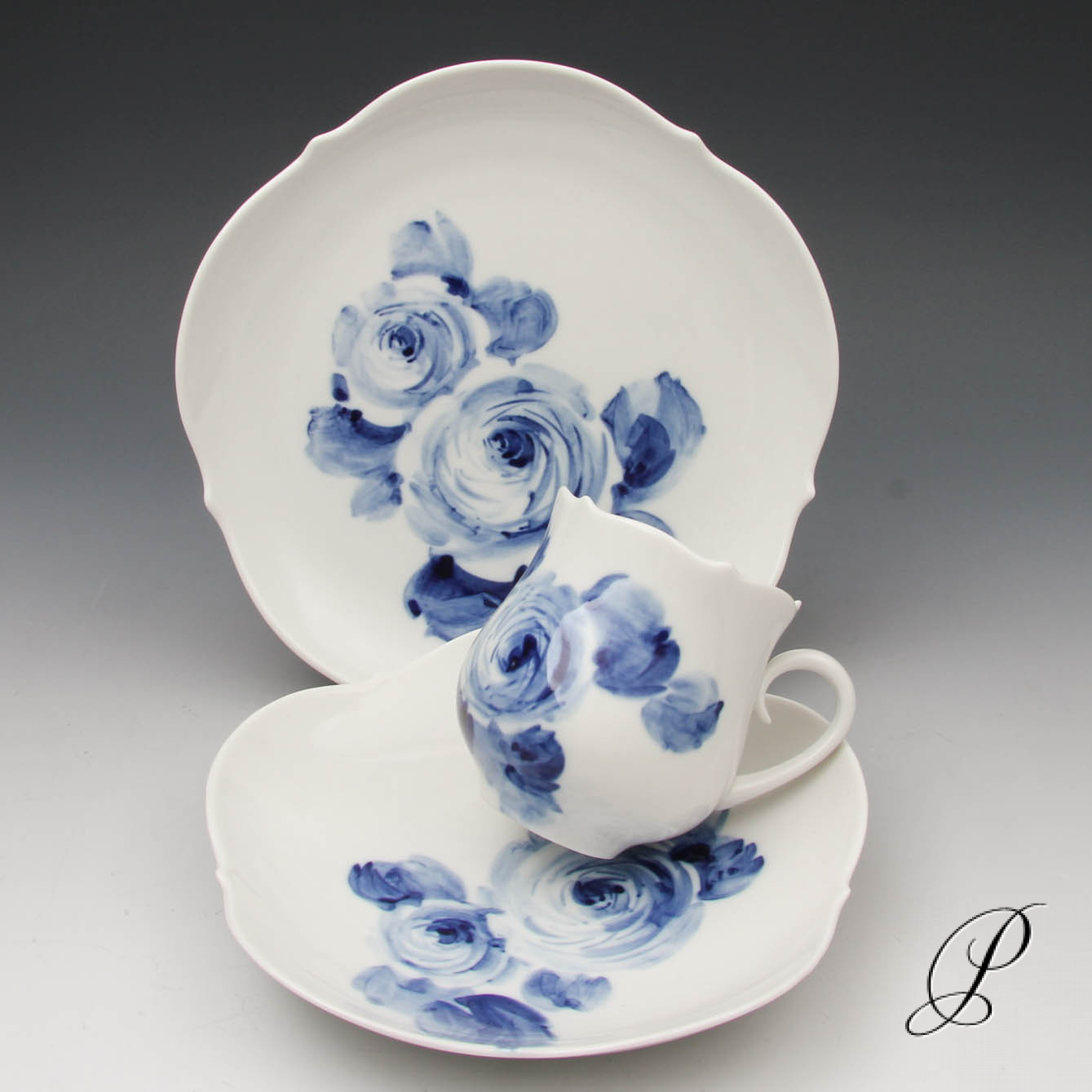 Maße: Kuchenteller Durchmesser ca.18,5cm. Untertasse Durchmesser ca.16cm. Tasse Höhe 7,5cm und Durchmesser 6,5cm.