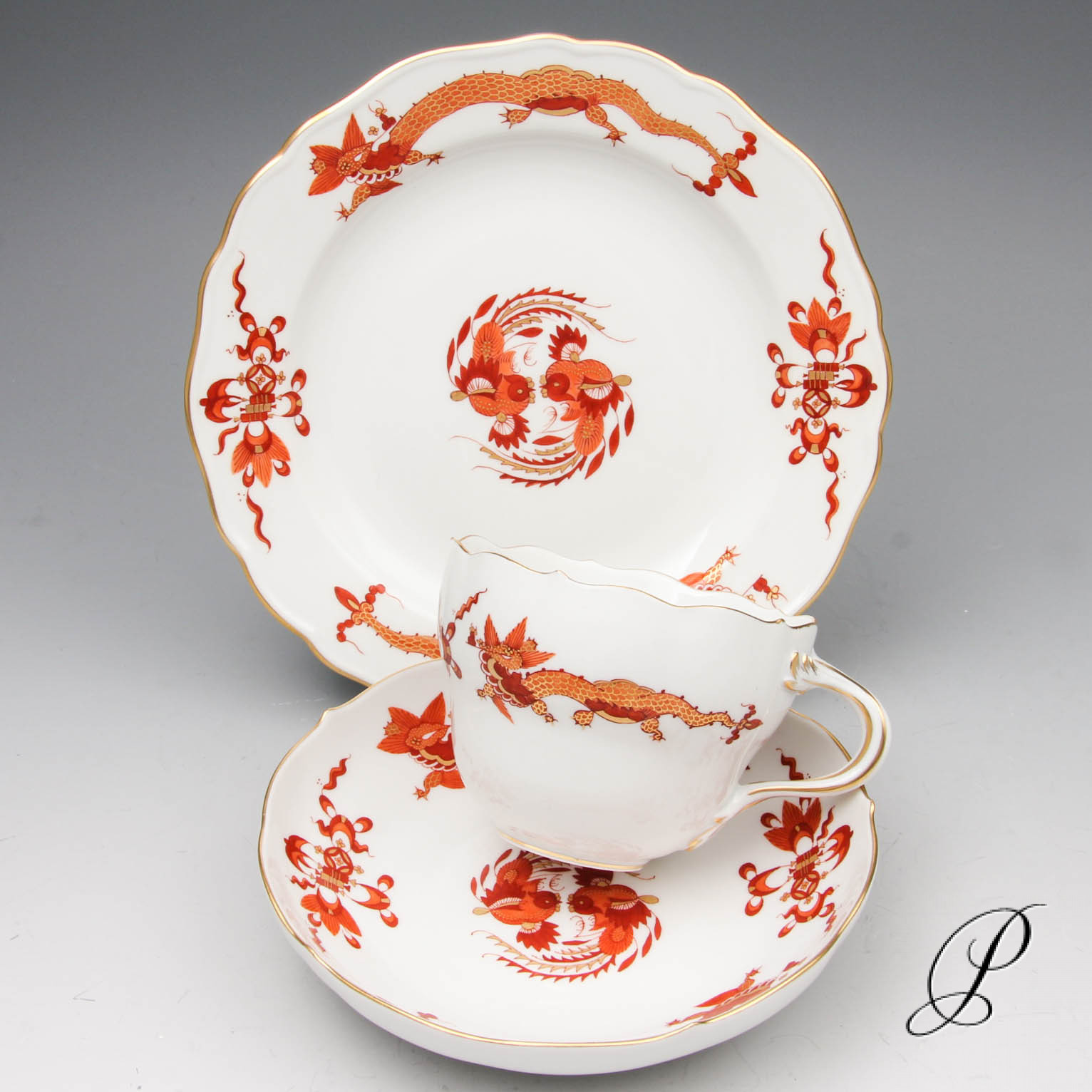 Dekor: Reicher Drache rot, goldschattiert mit Goldrand.