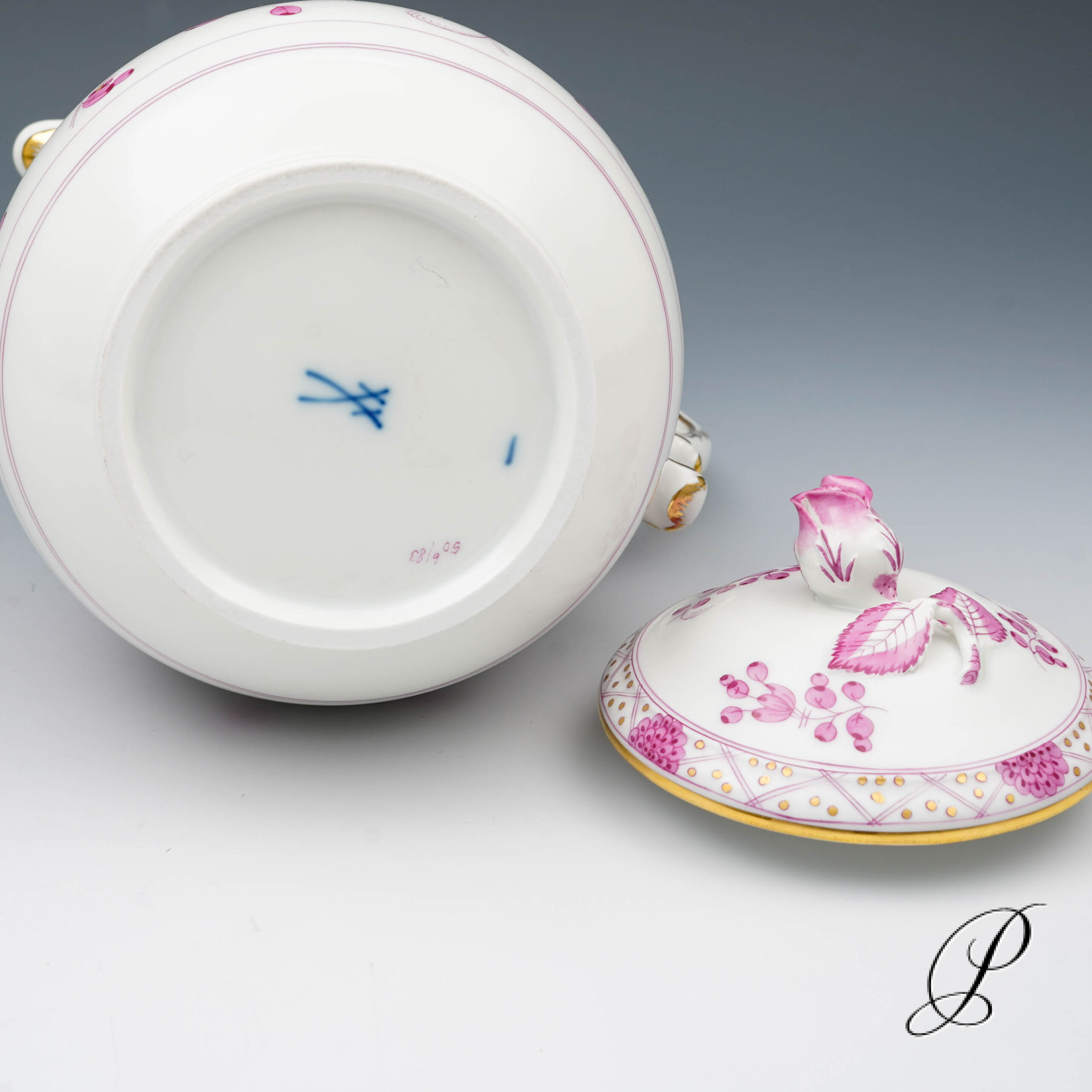 Dekor: Indische Malerei, purpur, Goldpunkte und Goldrand. Dekornummer 343410.