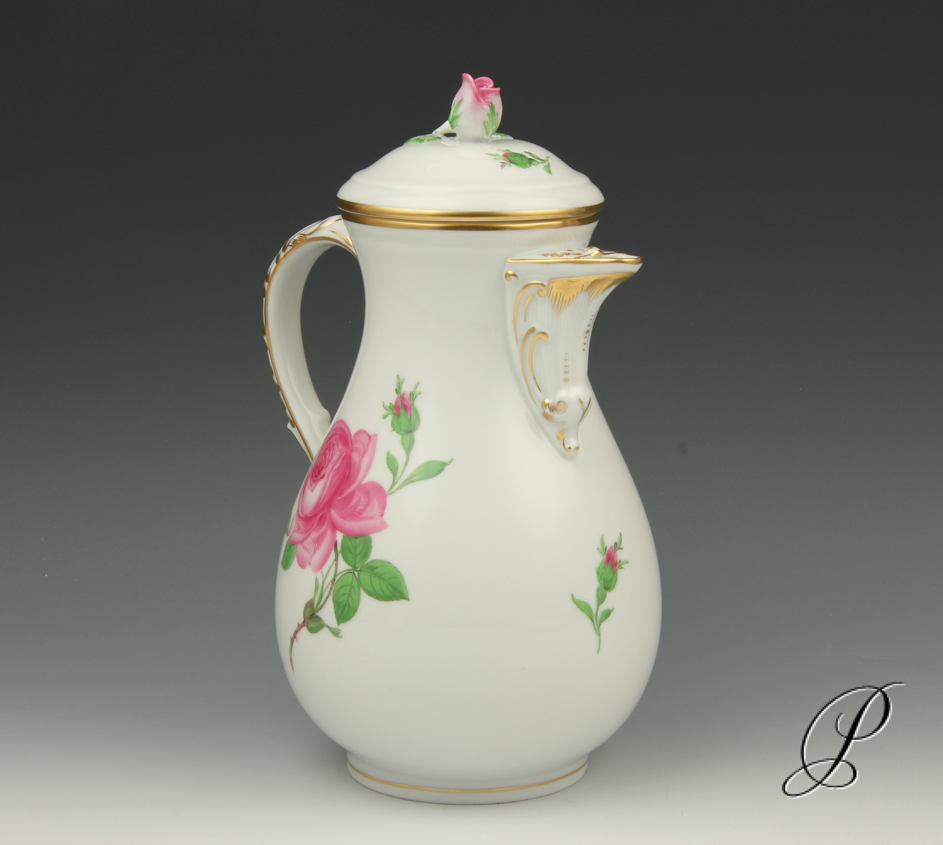 Kaffeekanne Meissen im Dekor Rote Rose