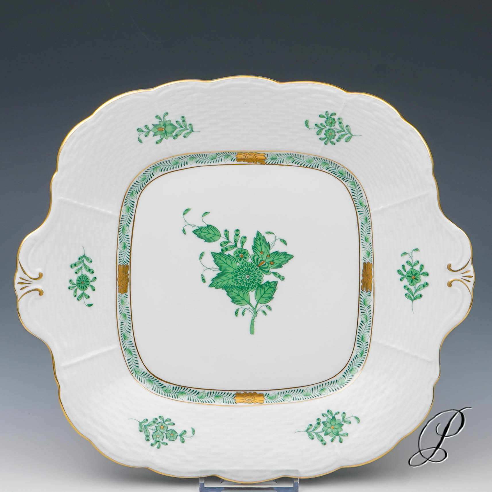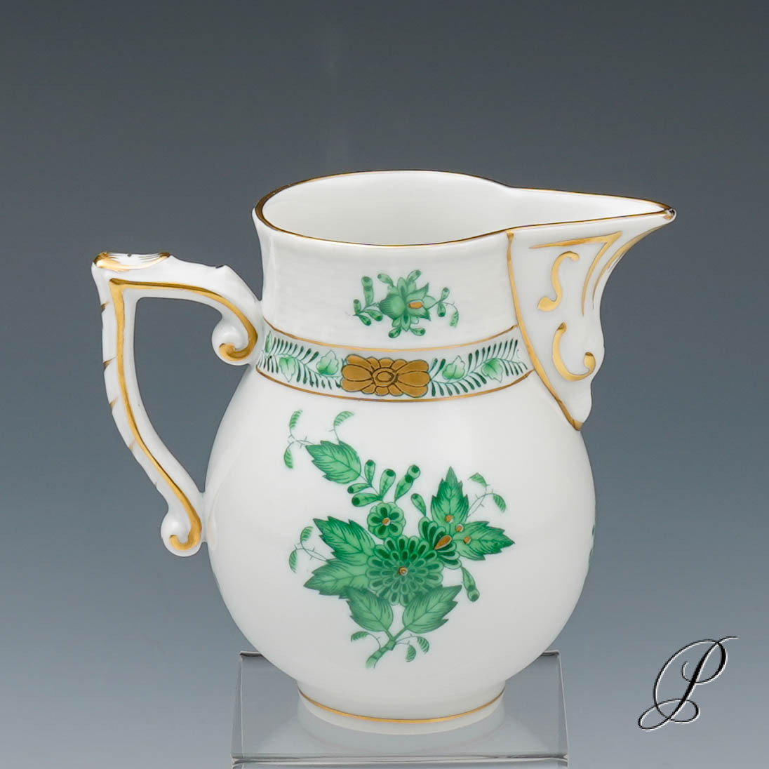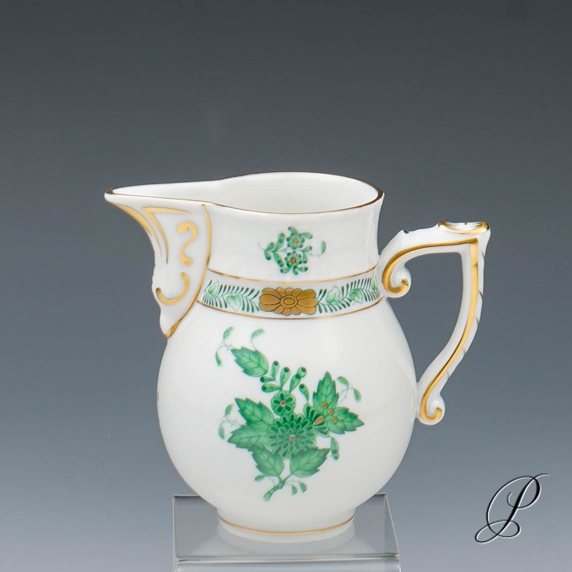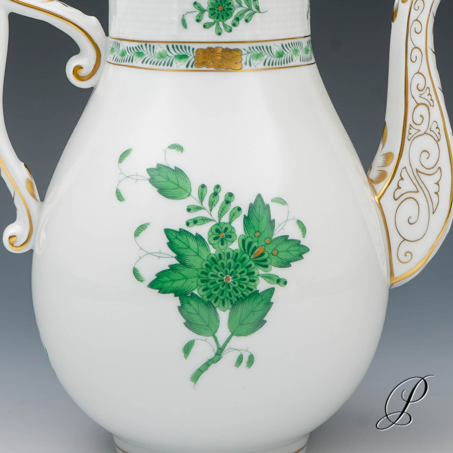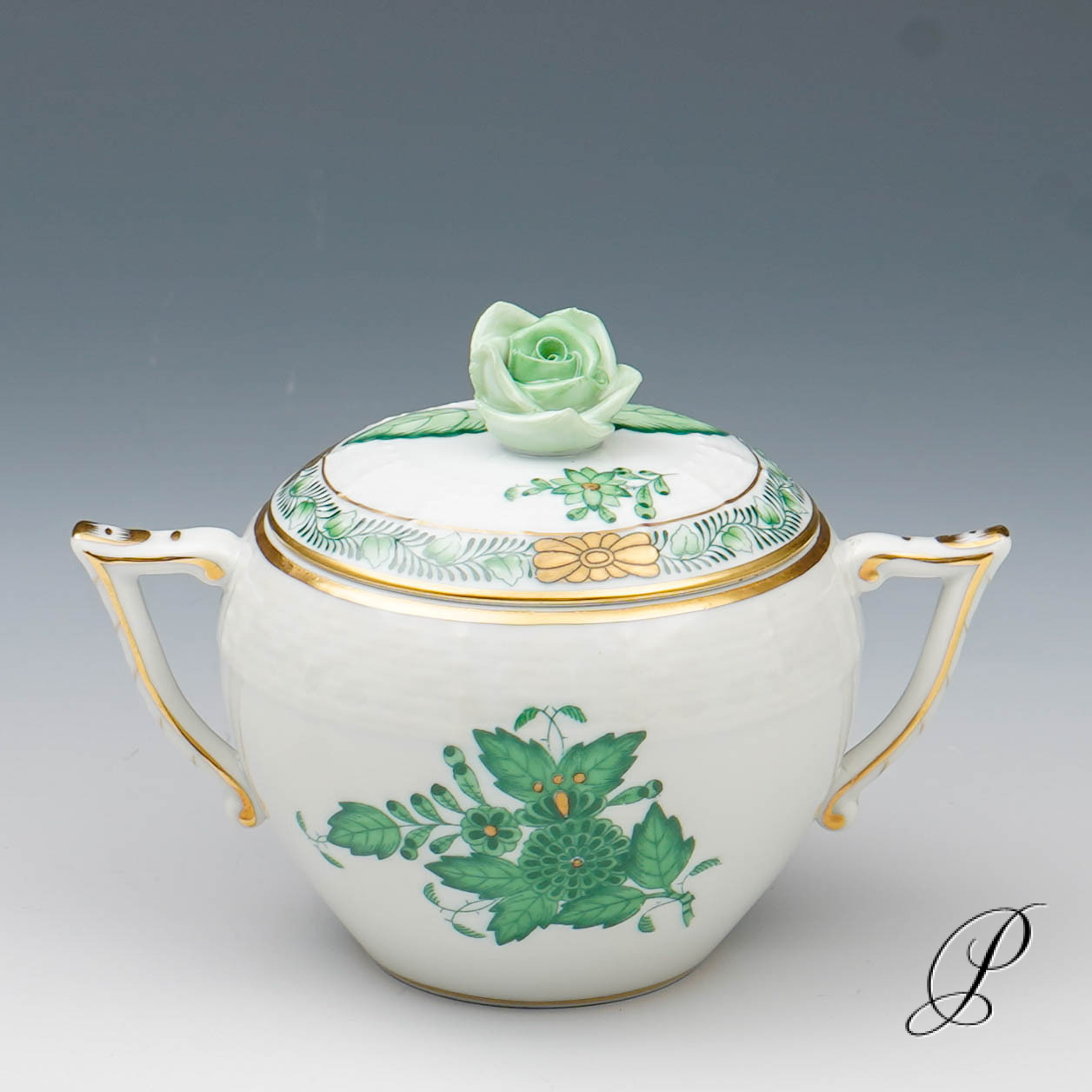 Das Dekor Apponyi gibt es in verschiedenen Farbvarianten. Der Name verbindet sich mit dem Grafen Albert Apponyi, der dieses Motiv in der Herend Manufaktur bestellte. Das Dekor wurde in Anlehnung an das fernöstliche Motiv „Indischer Blumenkorb“ entworfen. Eine stilisierte Pfingstrose in Konturmalerei welche von 6 Streumotiven und einer Girlande aus stilisierten Blättern umgeben ist.