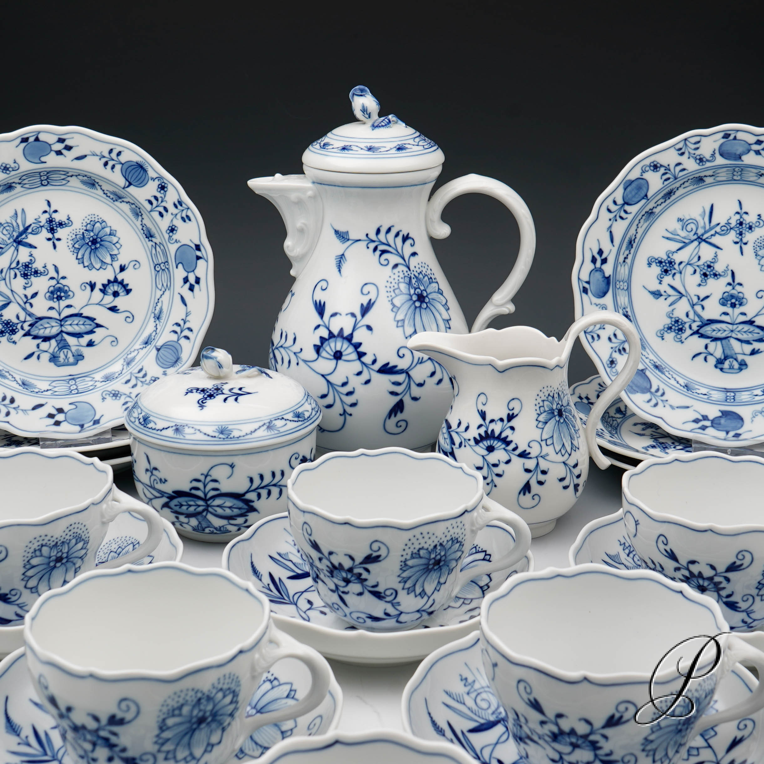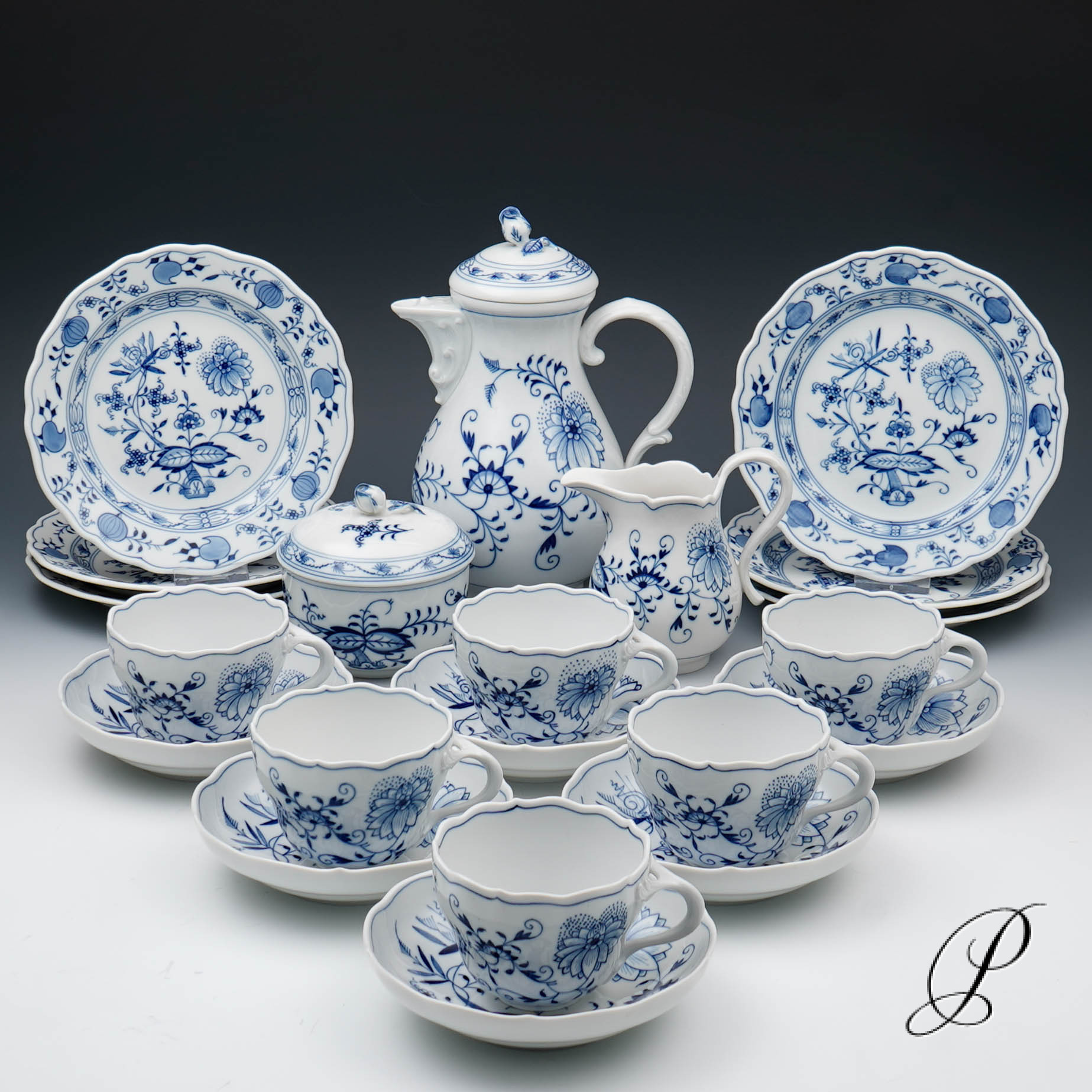 Das Service ist komplett für 6 Personen. Insgesamt 21 Teile. Dekor: Zwiebelmuster.