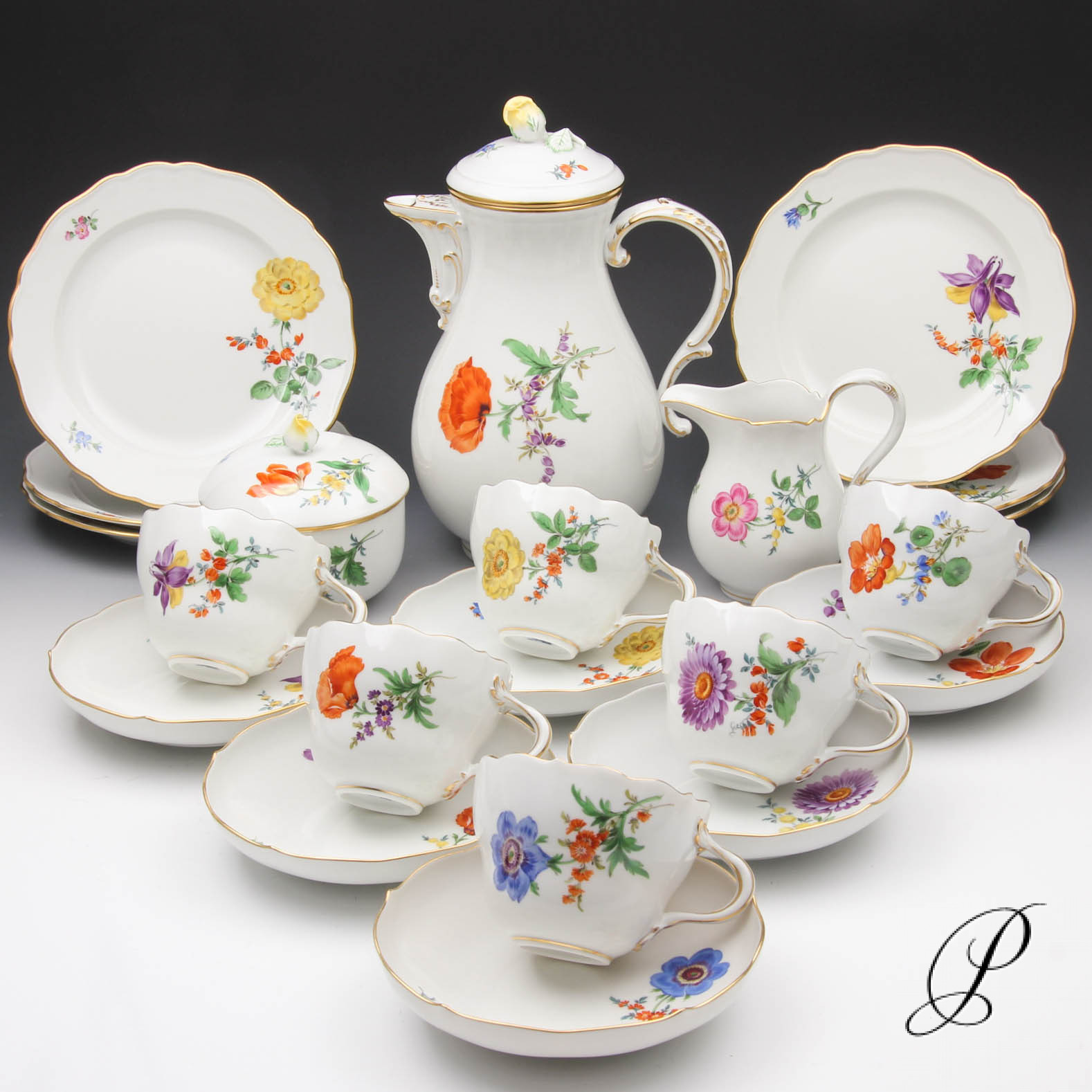 Jedes Gedeck mit anderen Blumen bemalt.
