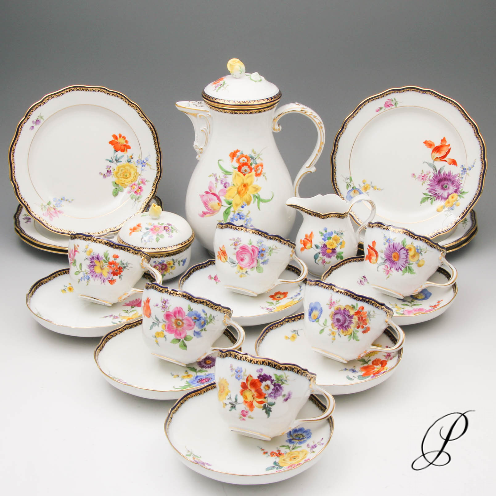 Angeboten wird ein wunderschönes Kaffeeservice aus Meissen.