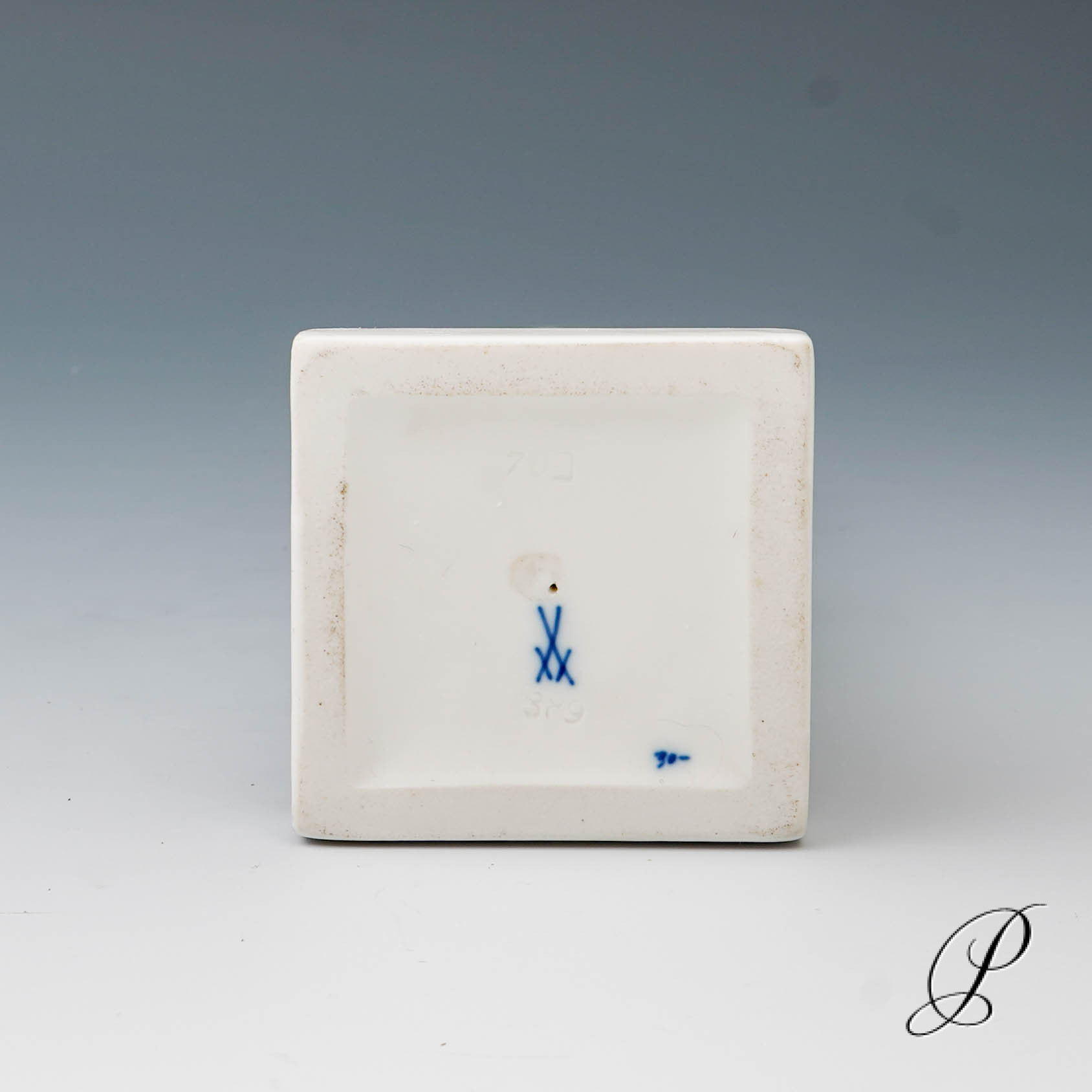 Unterglasurblaue Schwertmarke Meissen ohne Schleifstriche.