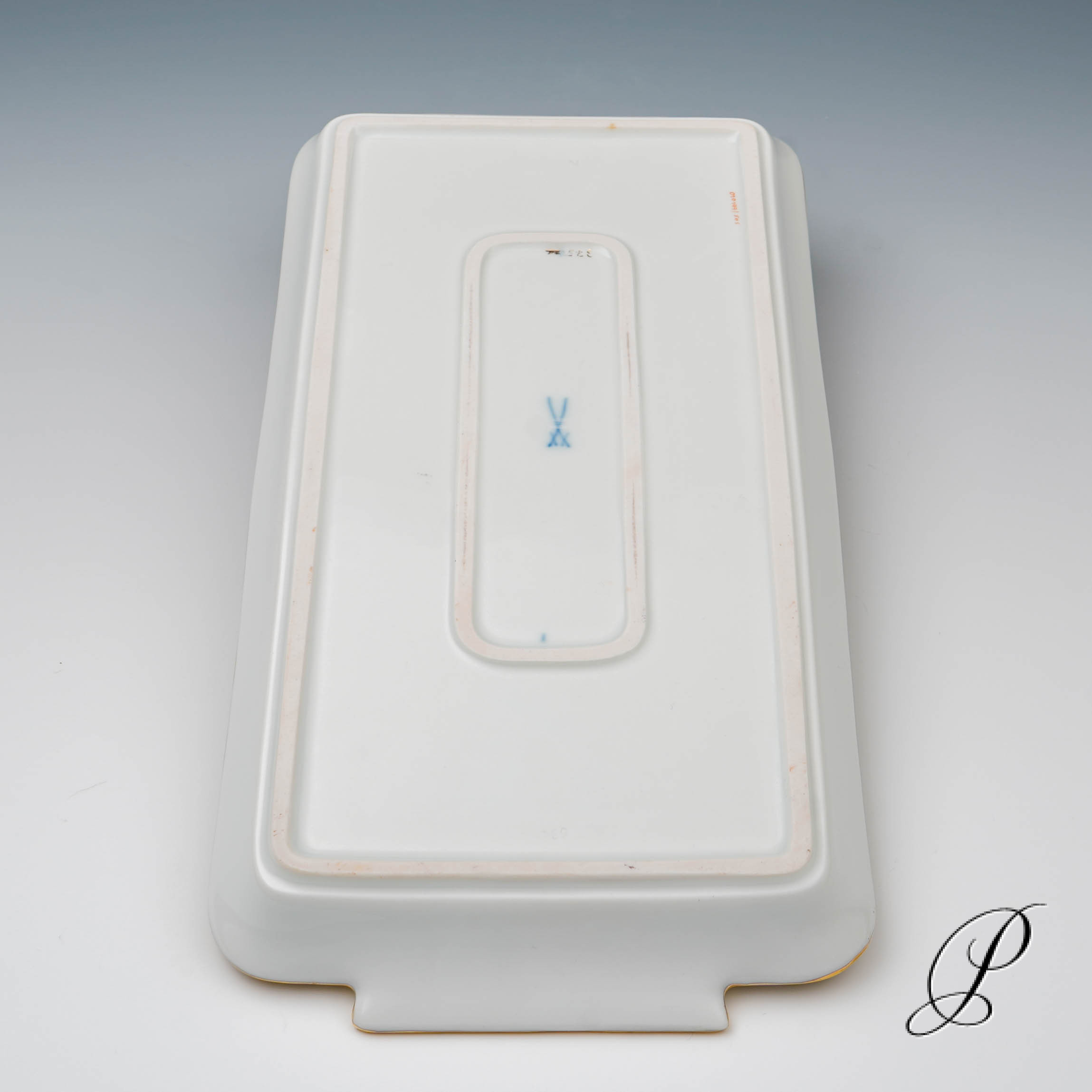 Unterglasurblaue Schwertmarke von Meissen mit zwei Schleifstrichen.