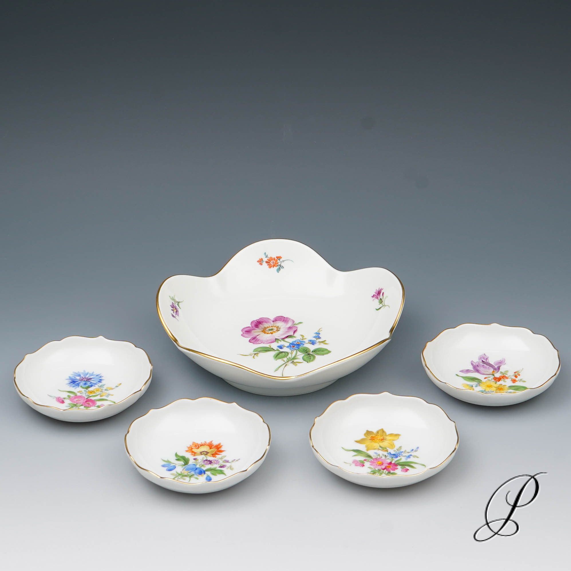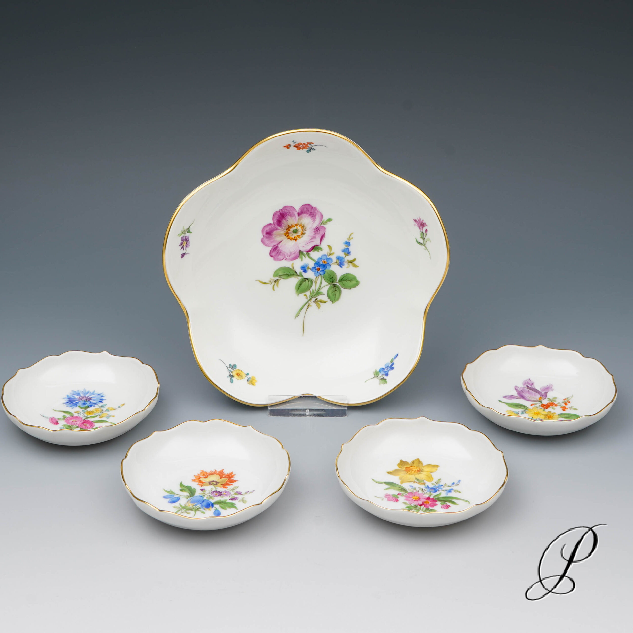 Ins Angebot kommt ein Konfektset aus Meissner Porzellan.