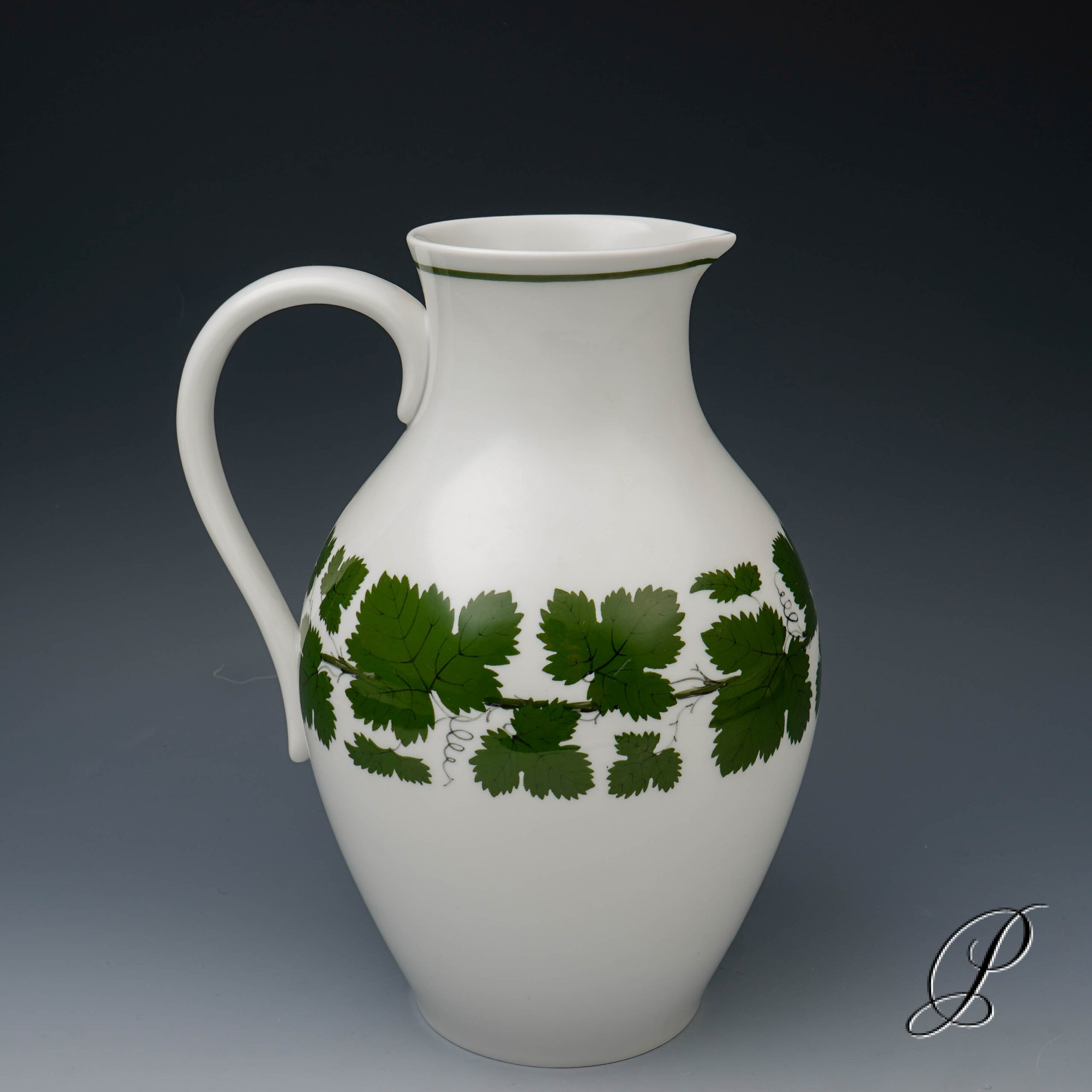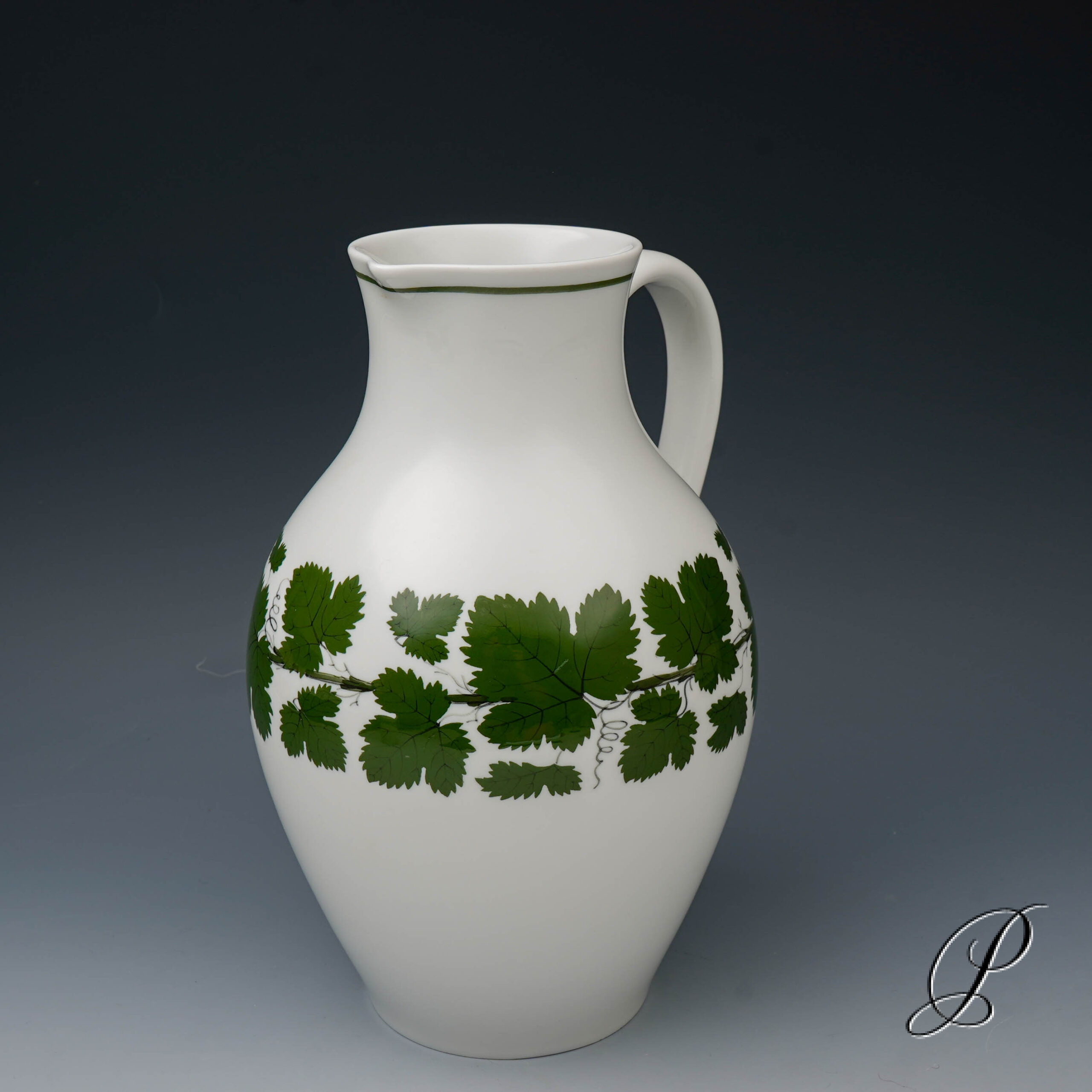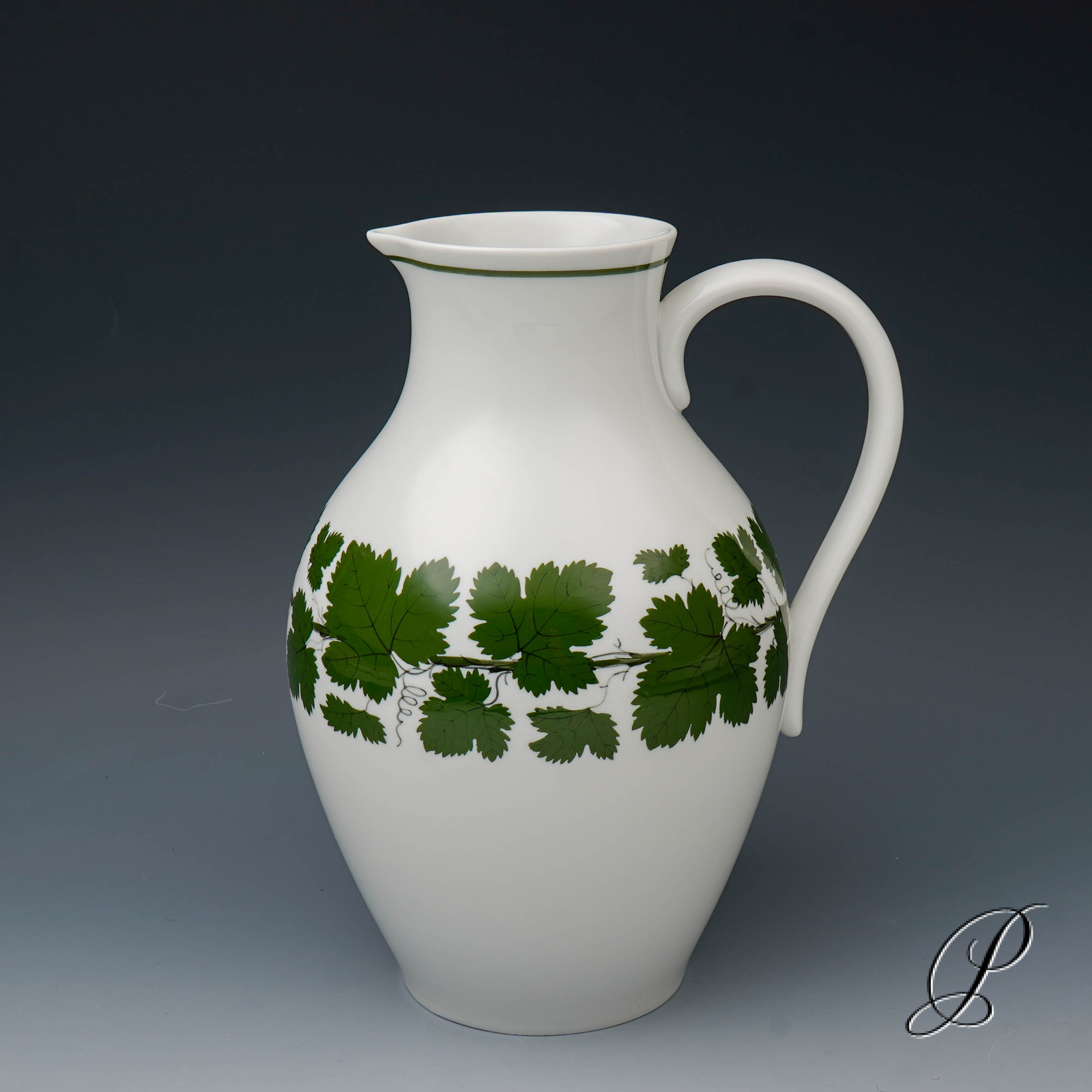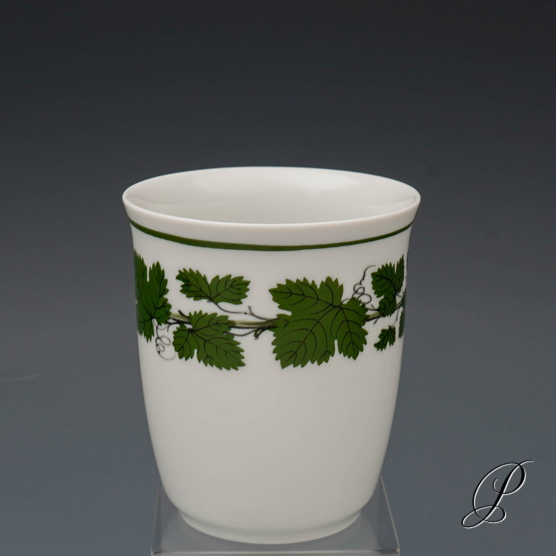 Dekor Weinlaub. Die Weinlaubranken im tiefen grün sind ein wundervoller Kontrast zum edlen weiß. Das satte kräftige Grün des Weinlaubes symbolisiert das Leben. Der Wein steht für die Kraft des Geistes und der Kranz für die Verehrung und die Dauerhaftigkeit.