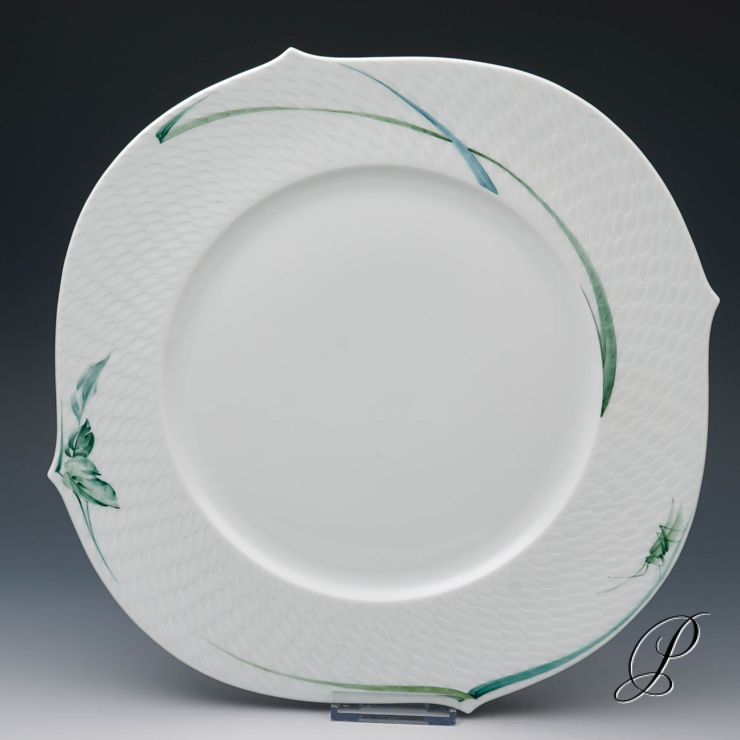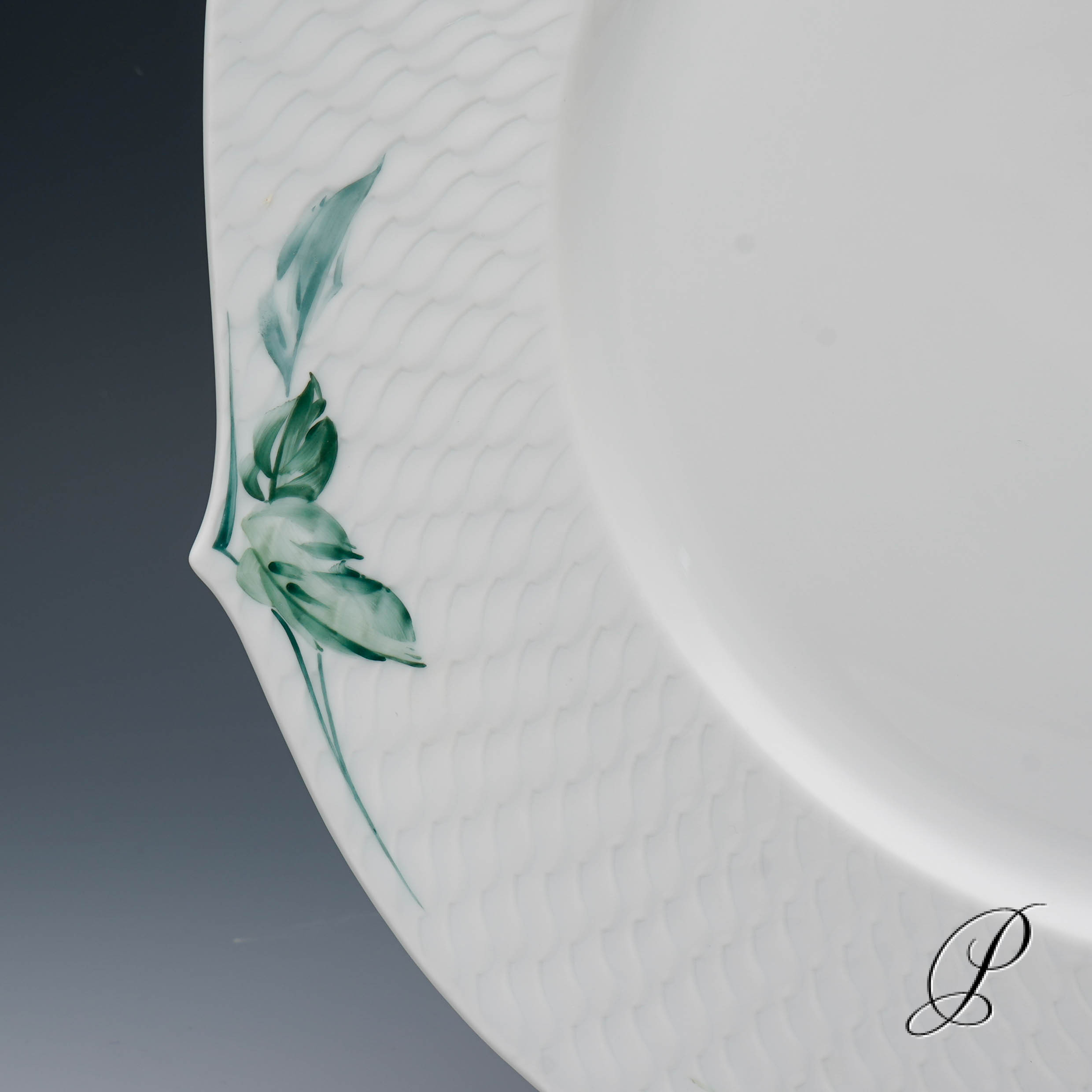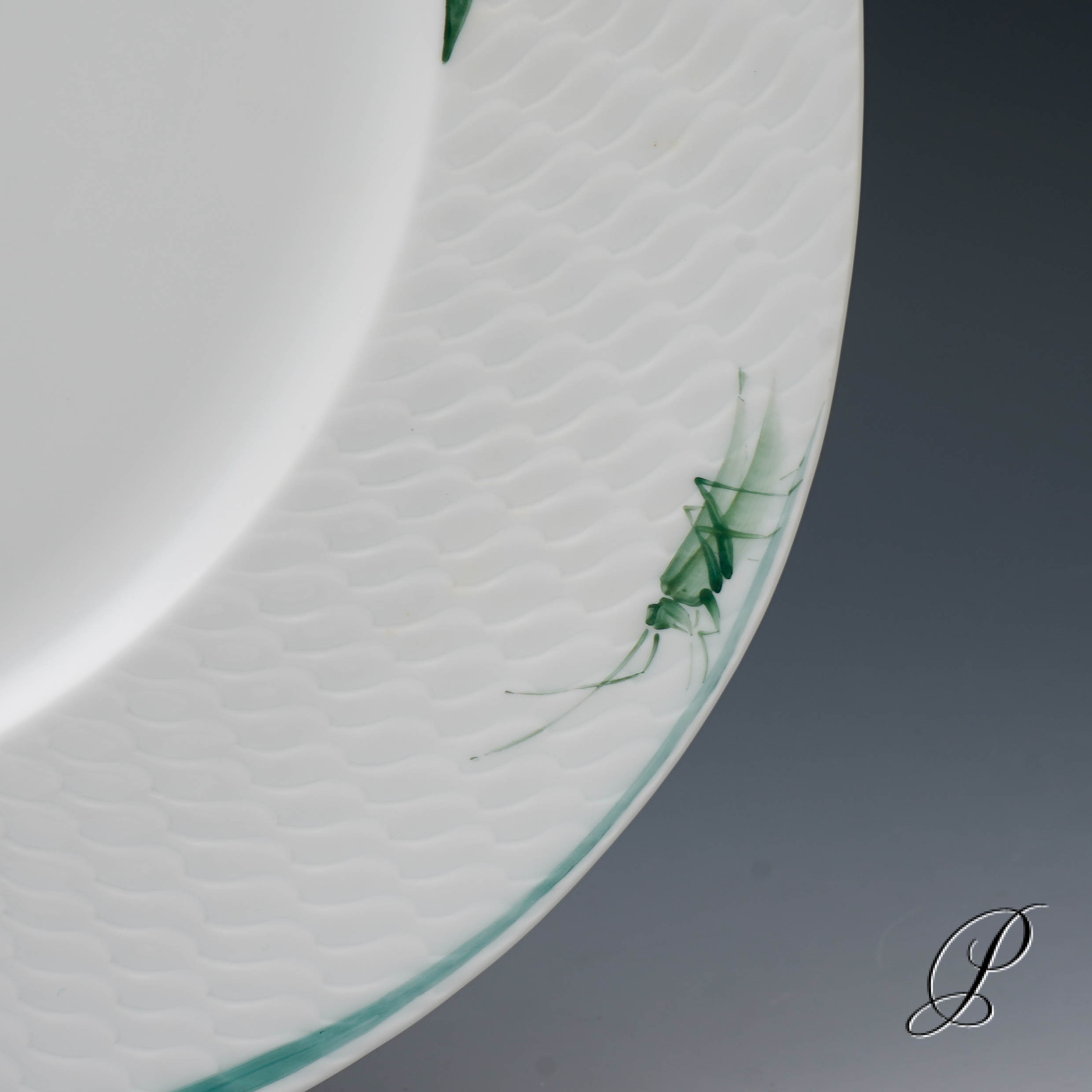Form: Wellenspiel. Dekor: Waldflora mit Insekten.