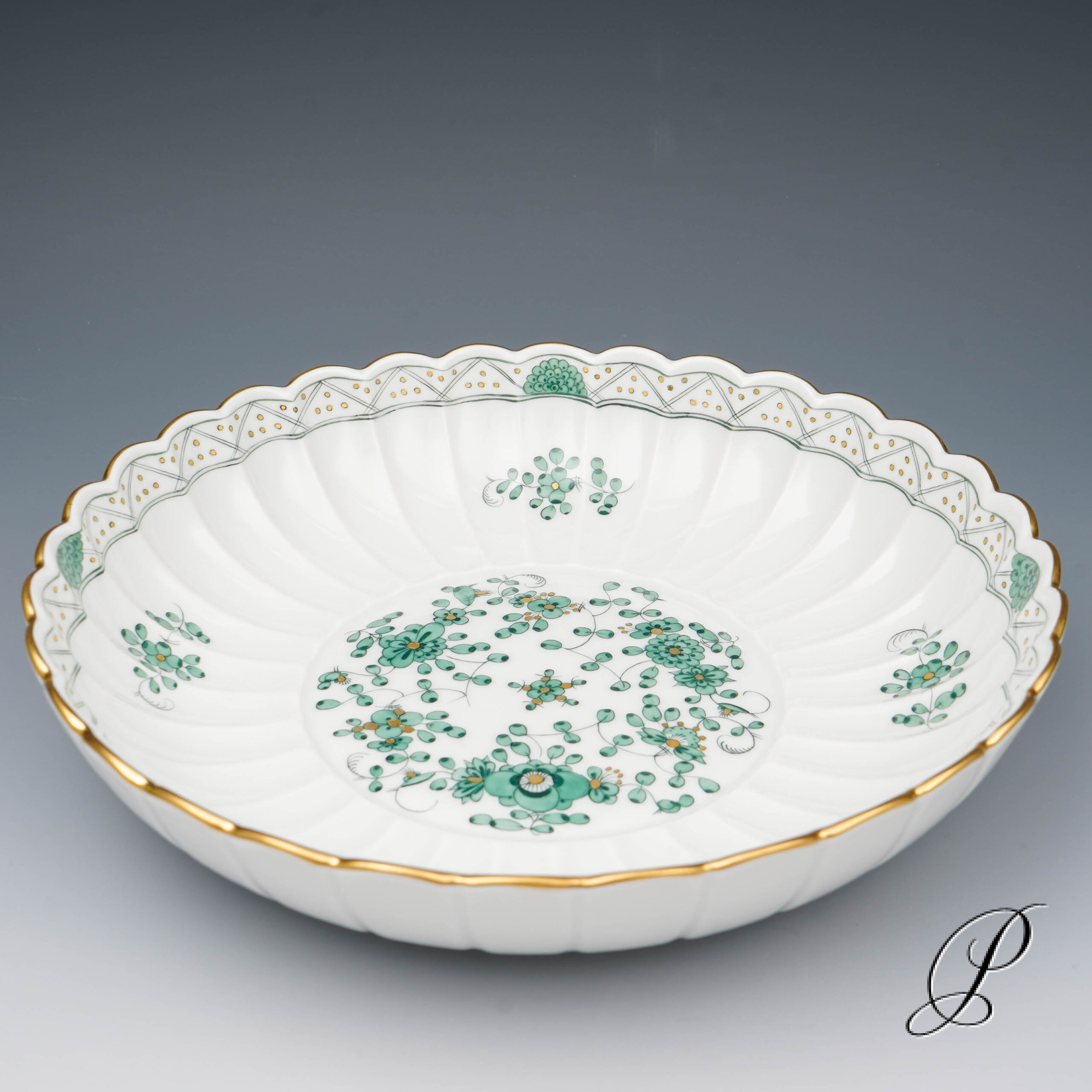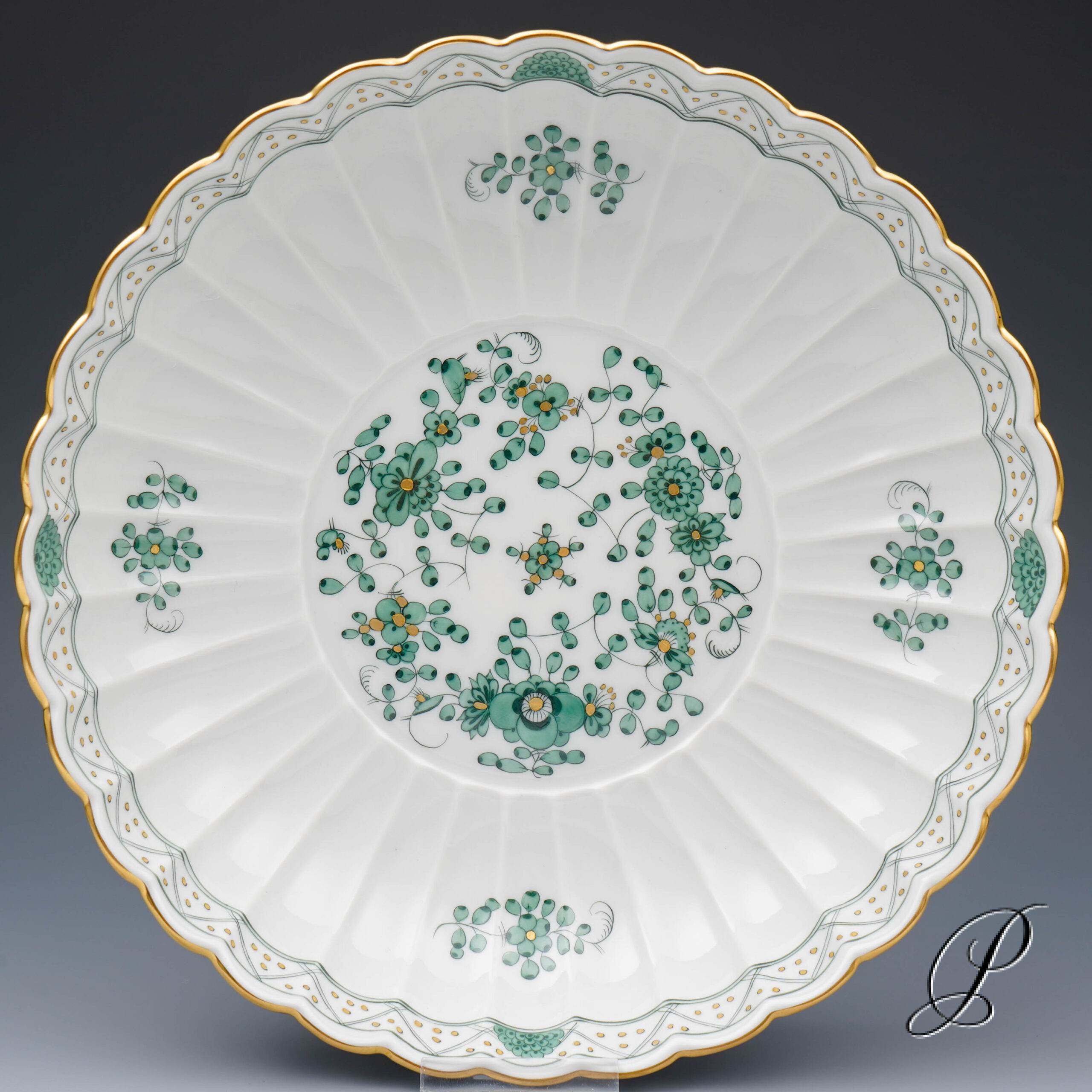 Dekor: Indische Malerei grün mit Goldpunkten und Goldrand.