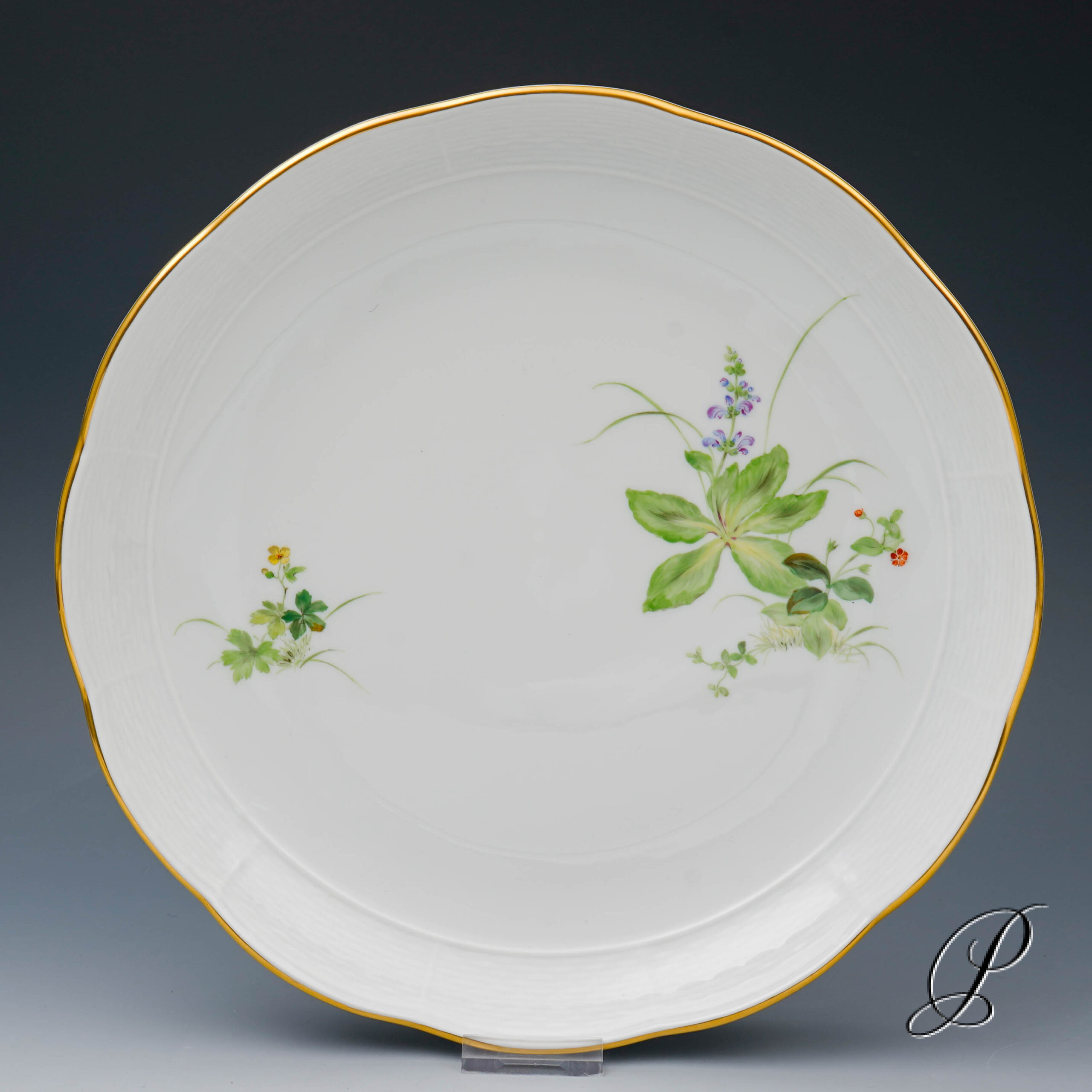 Eine Kuchenschale Meissen im Dekor Wiesenblumen nach Findeisen.