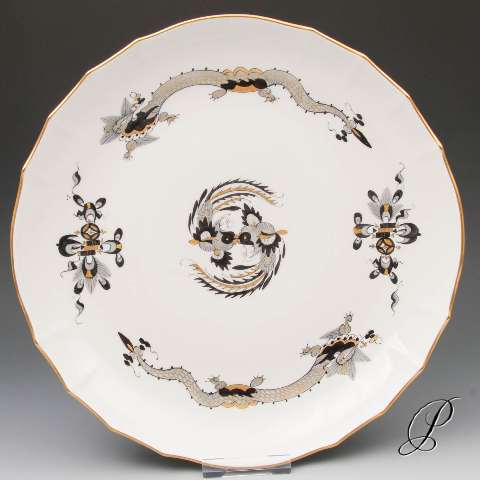 Eine Kuchenschale Meissen im Dekor reicher Drache schwarz.