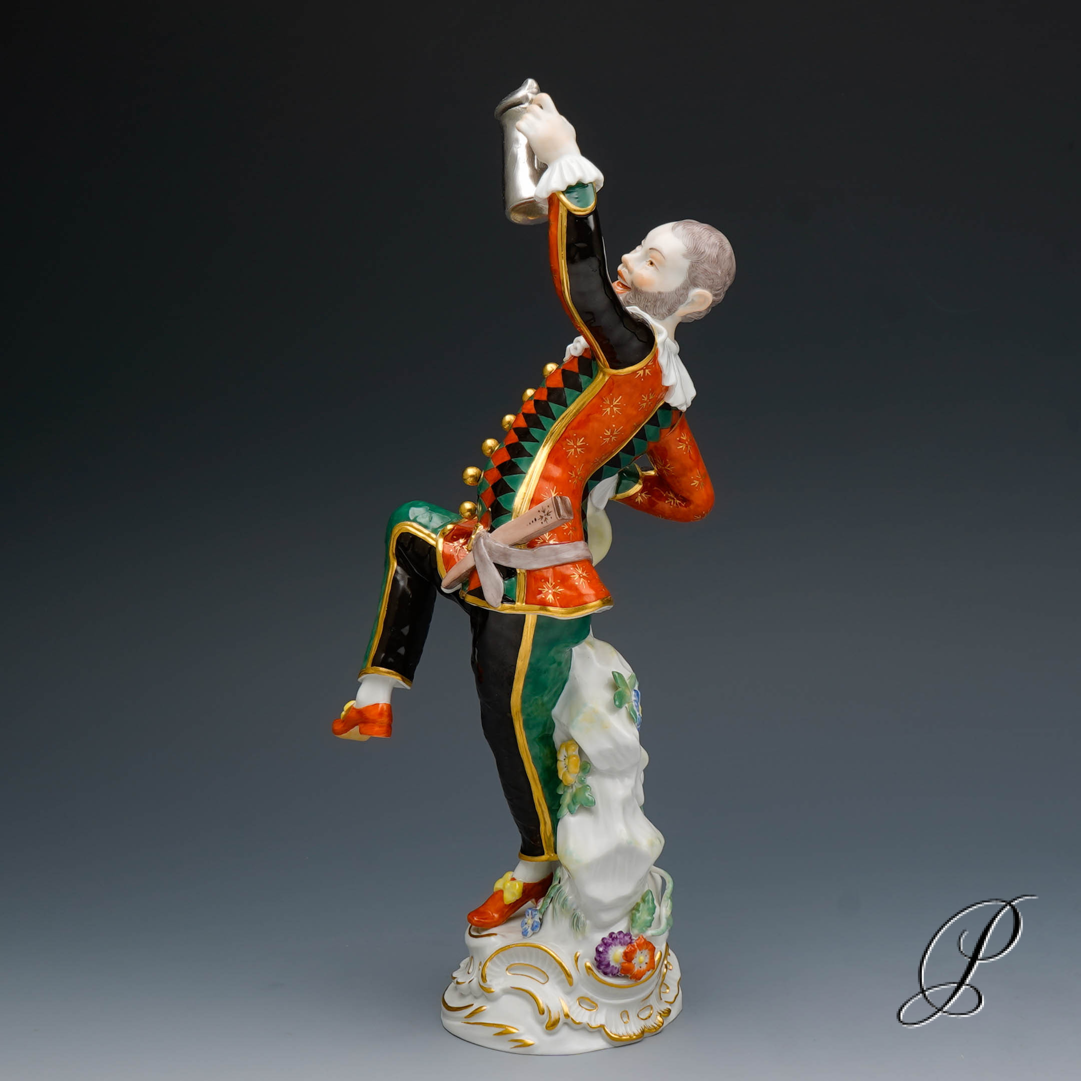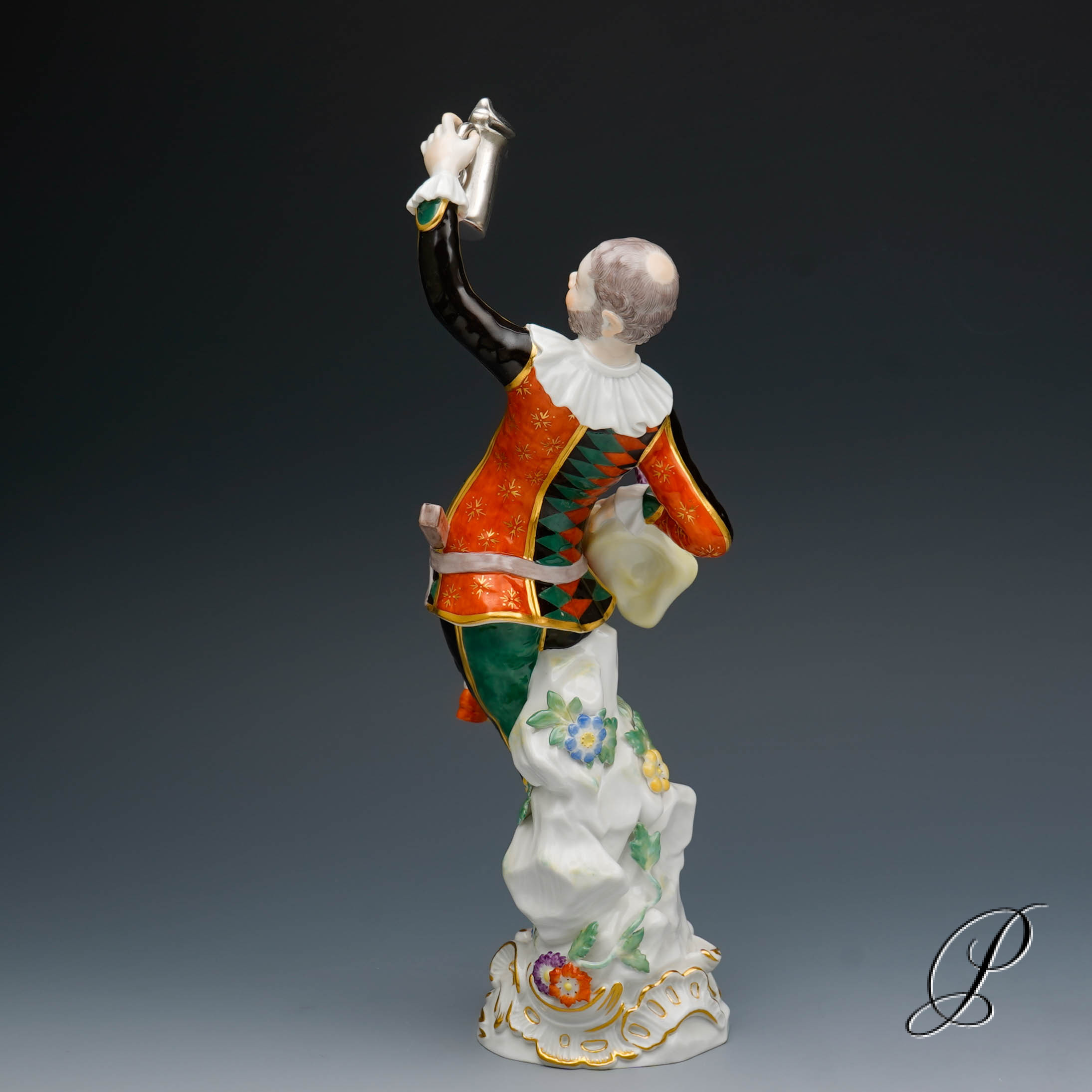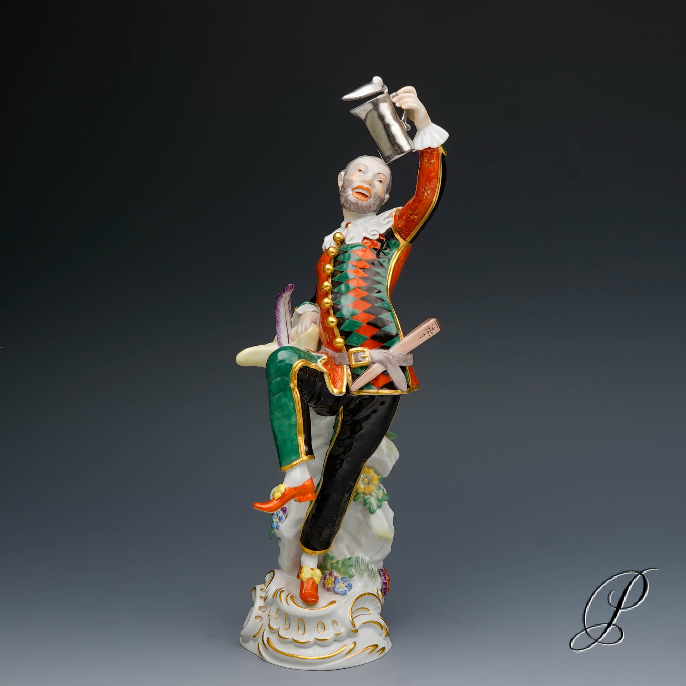 Darstellung: Harlekin mit Deckelkanne aus der Commedia dell`arte.
