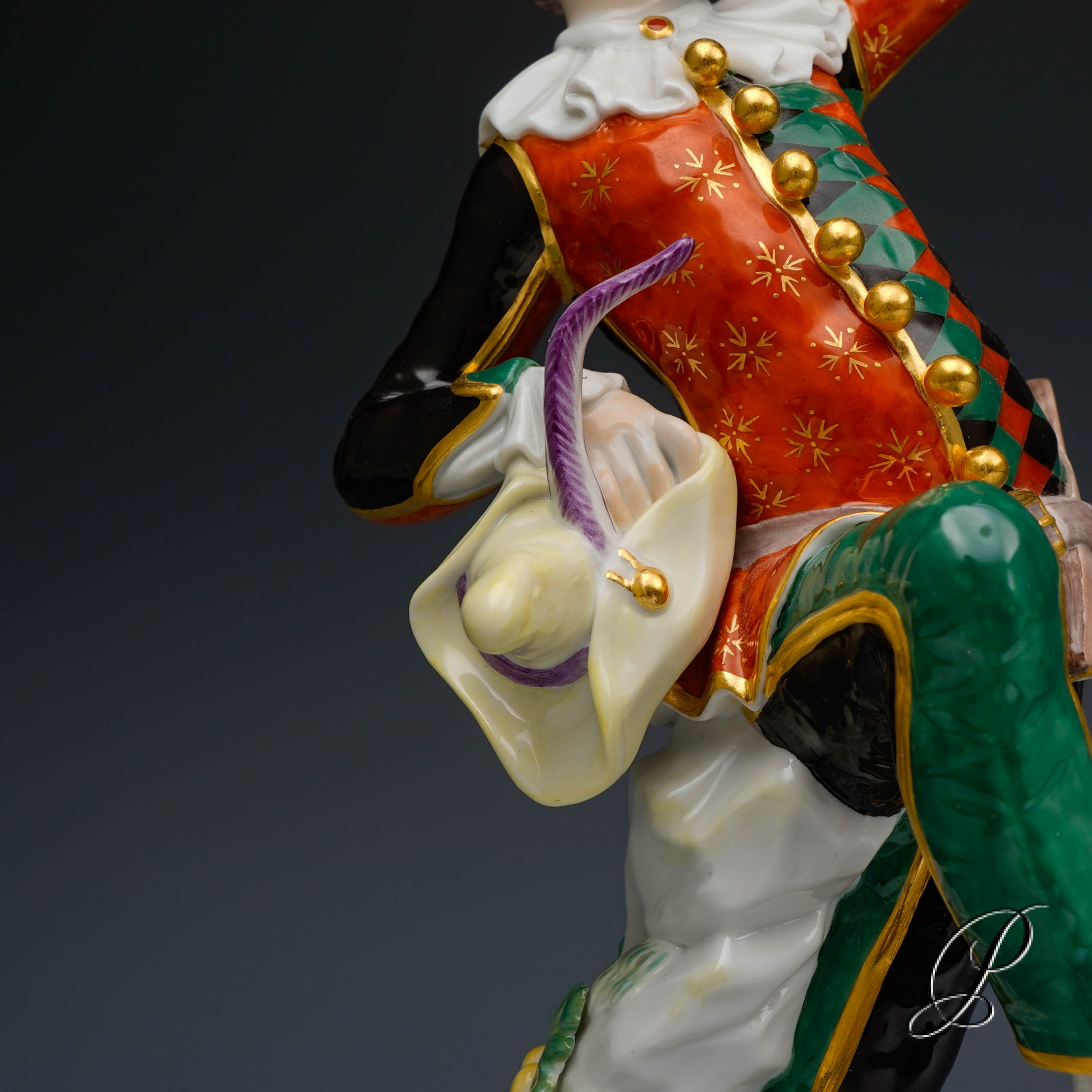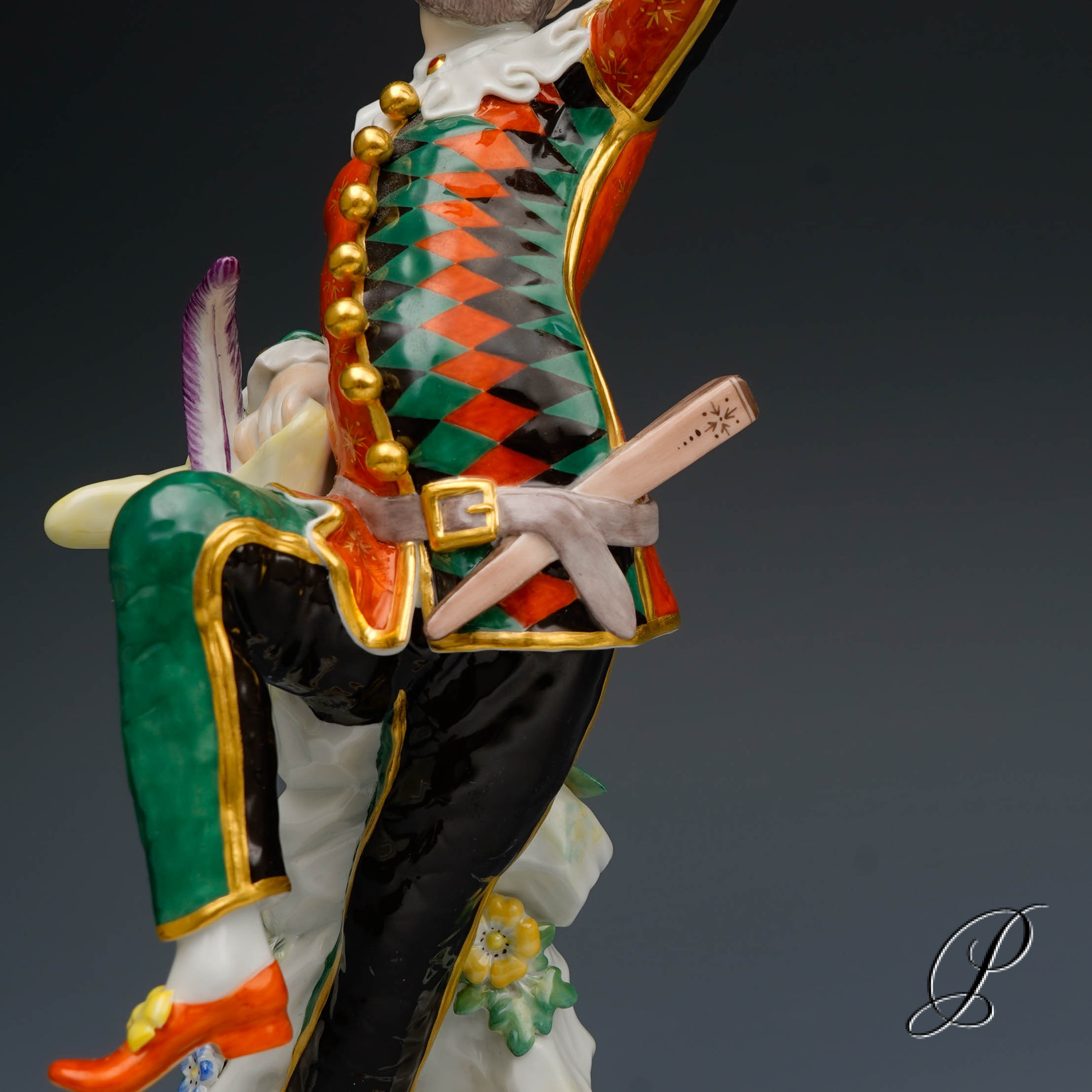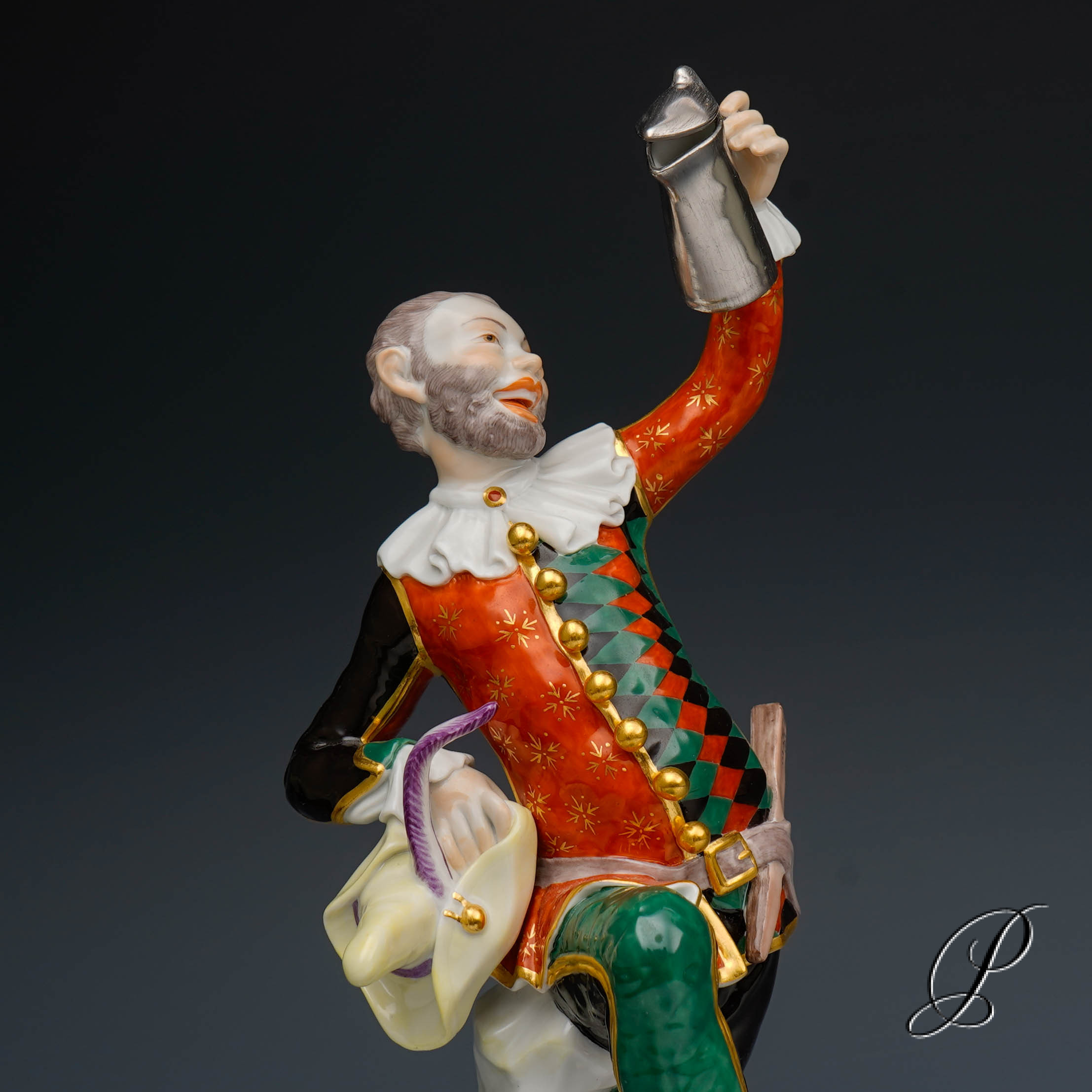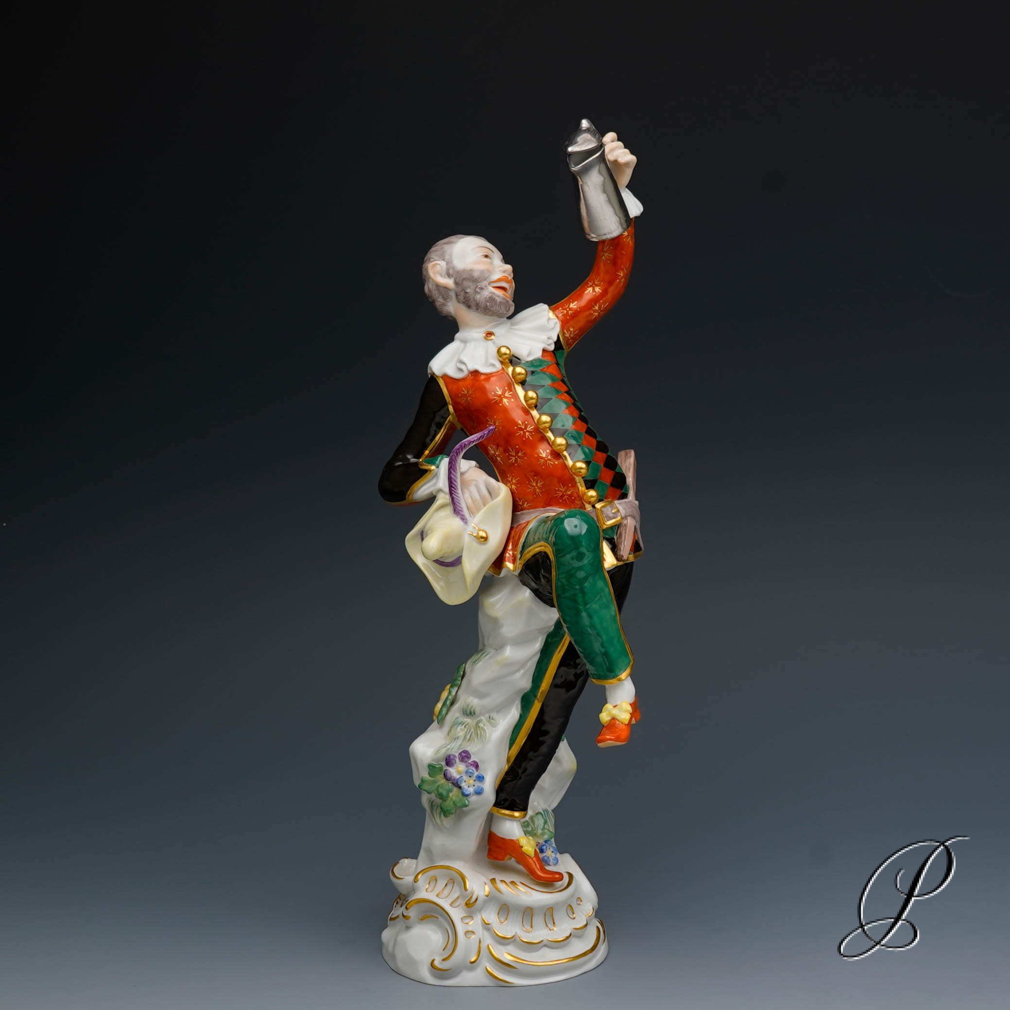 Darstellung: Harlekin mit Deckelkanne aus der Commedia dell`arte.
