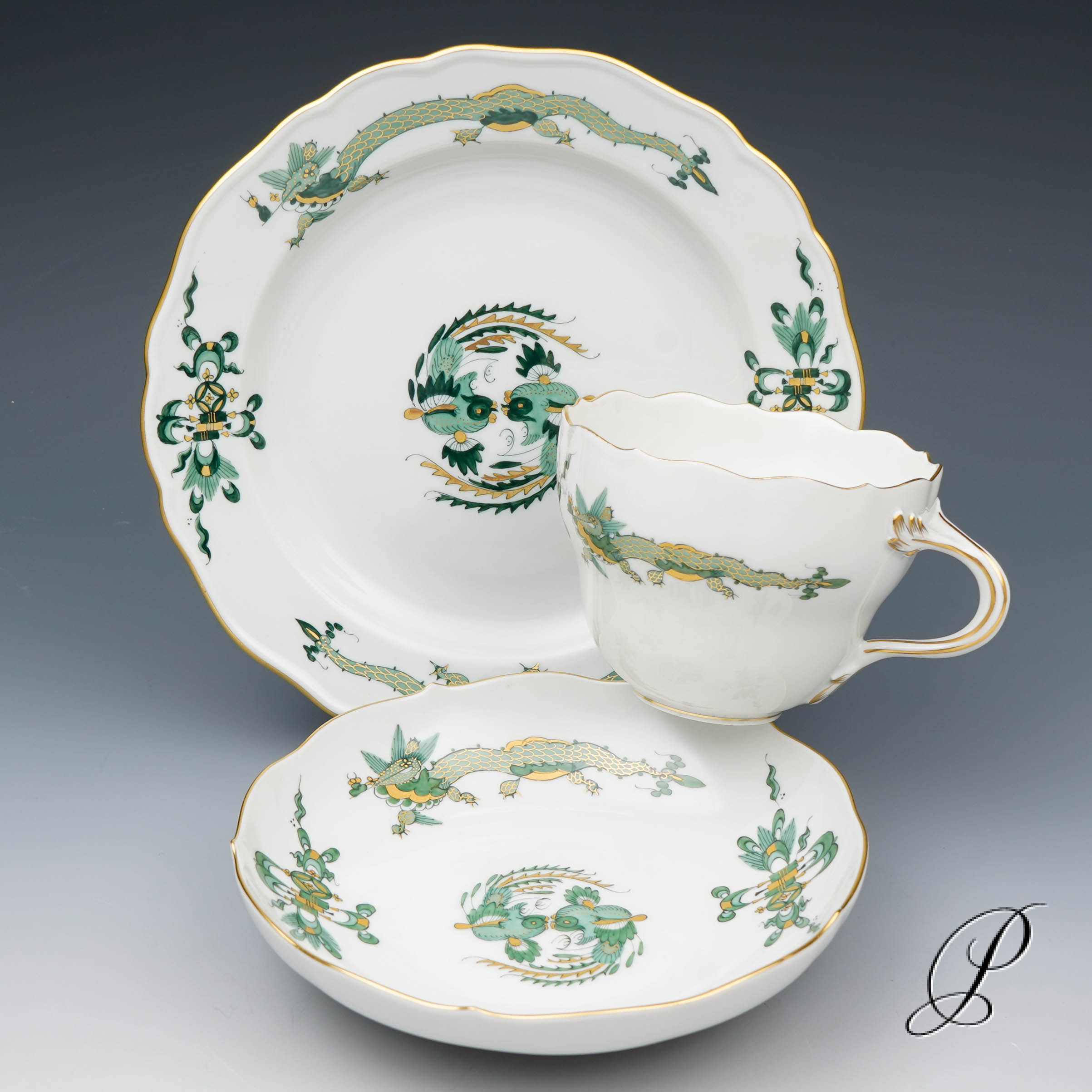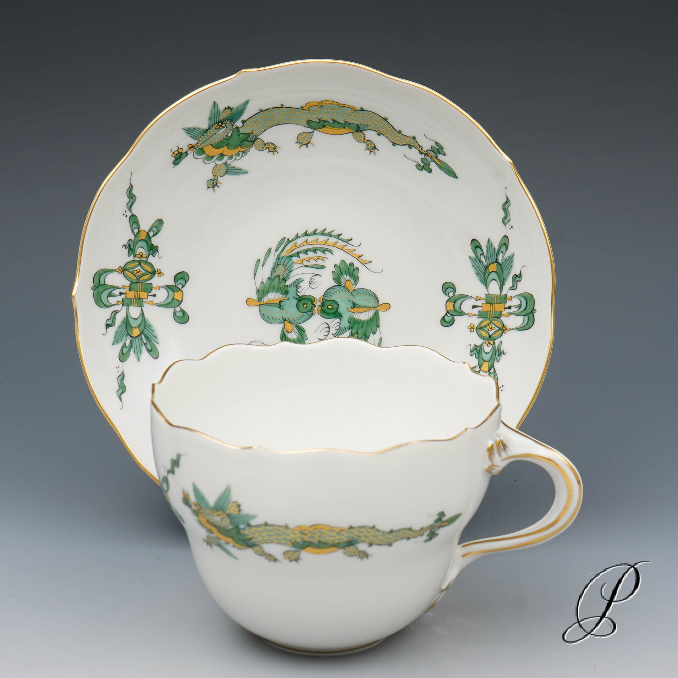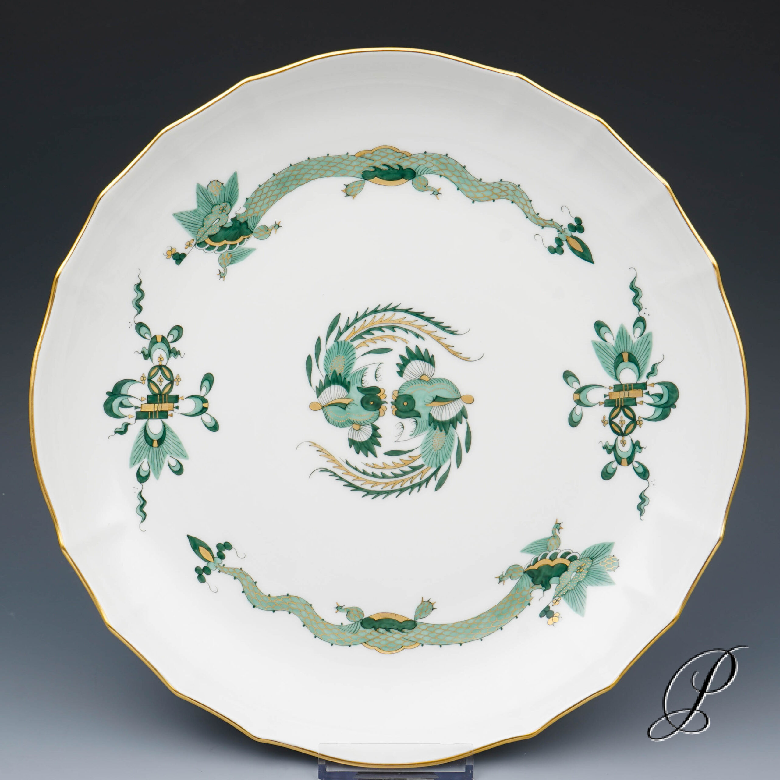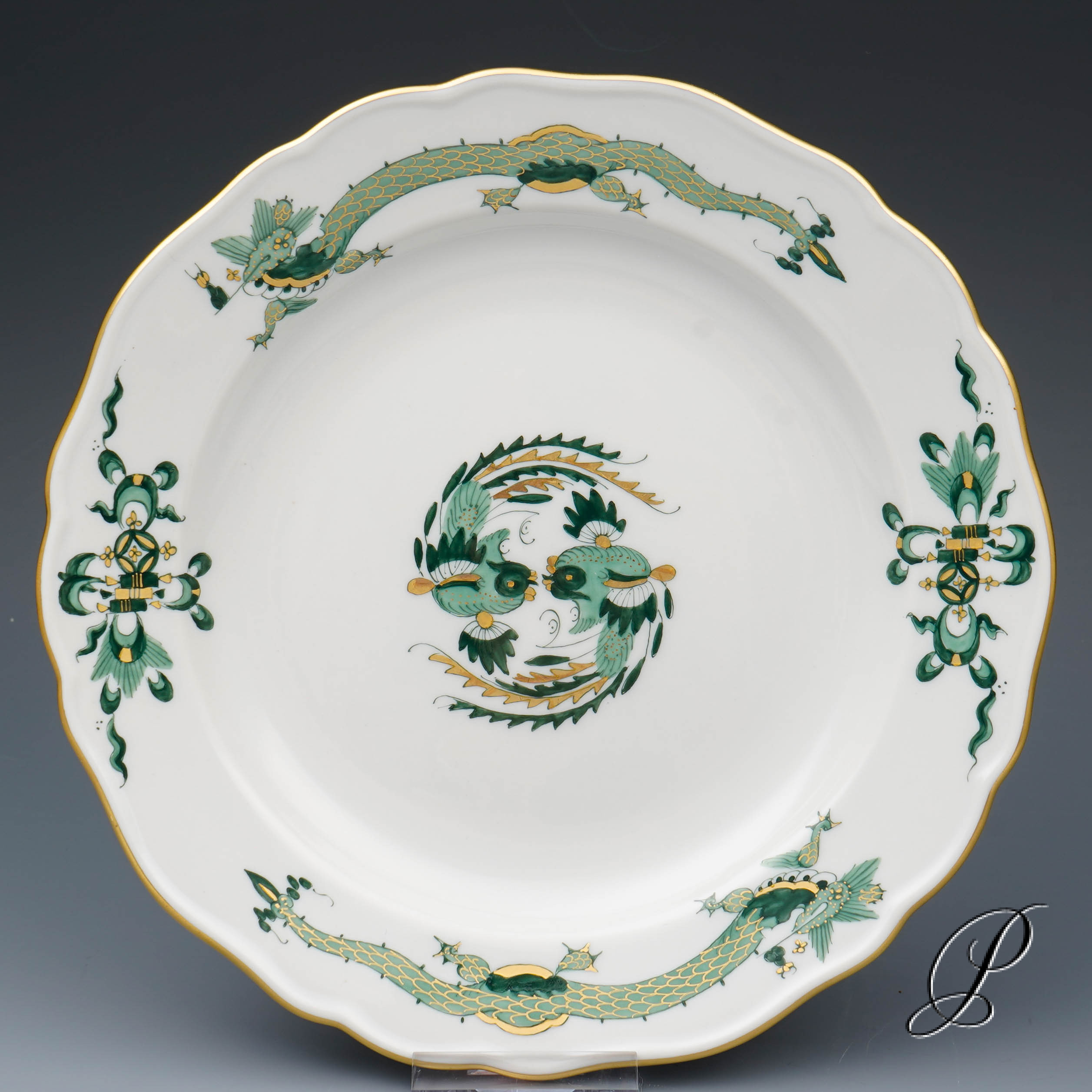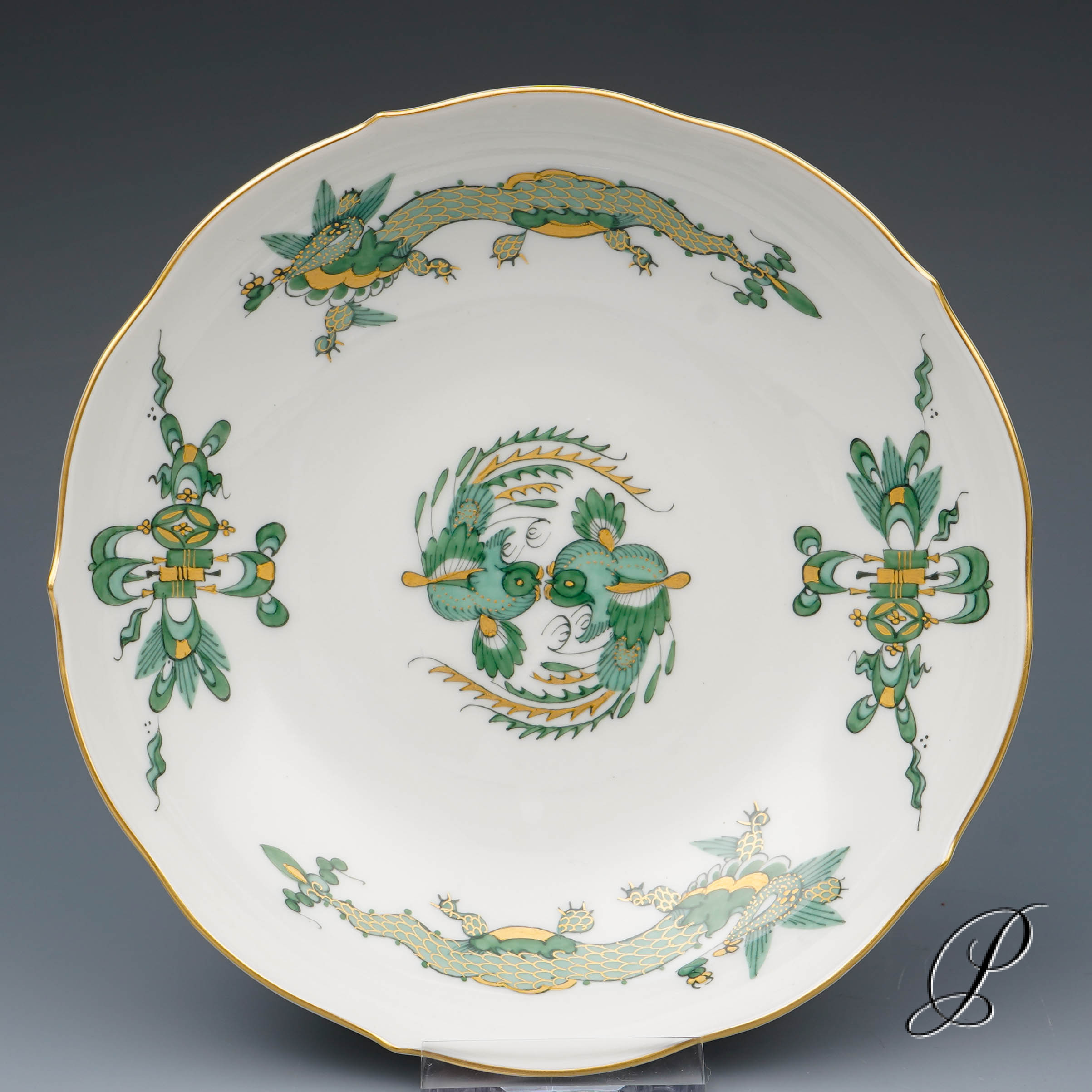 Dekor: reicher Drache grün und gold schattiert. Form: neuer Ausschnitt.