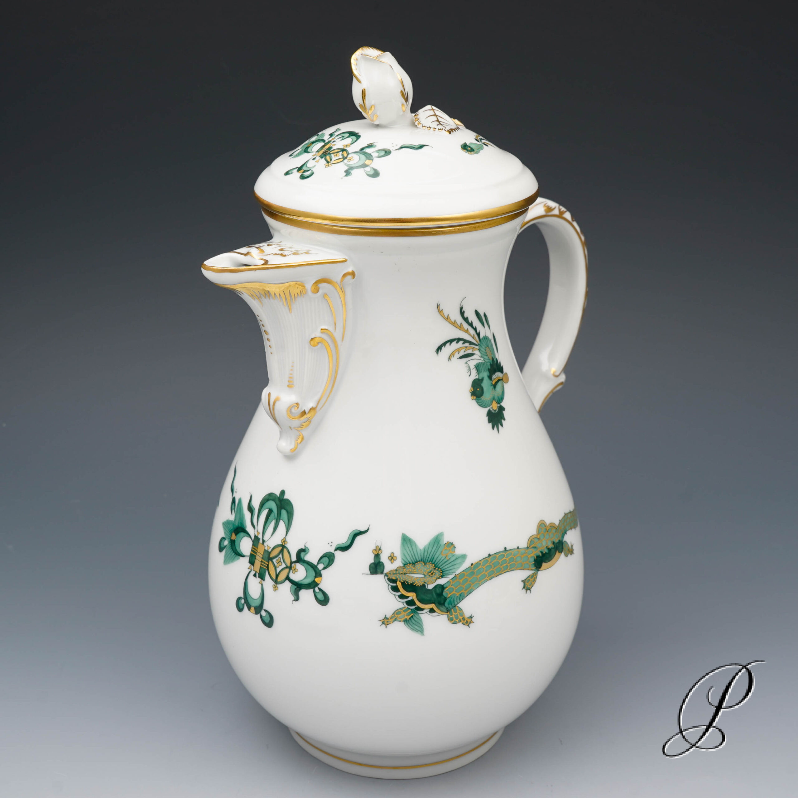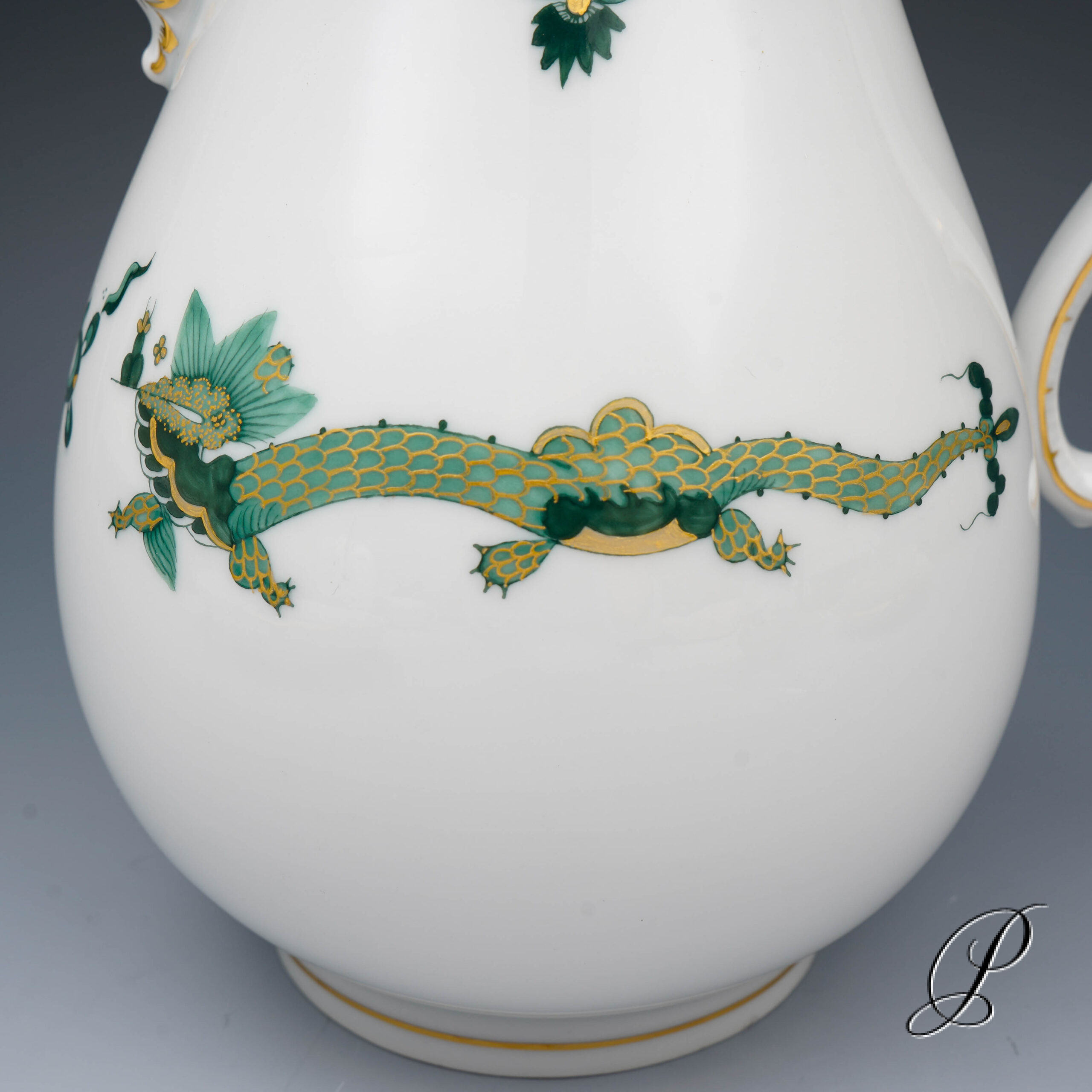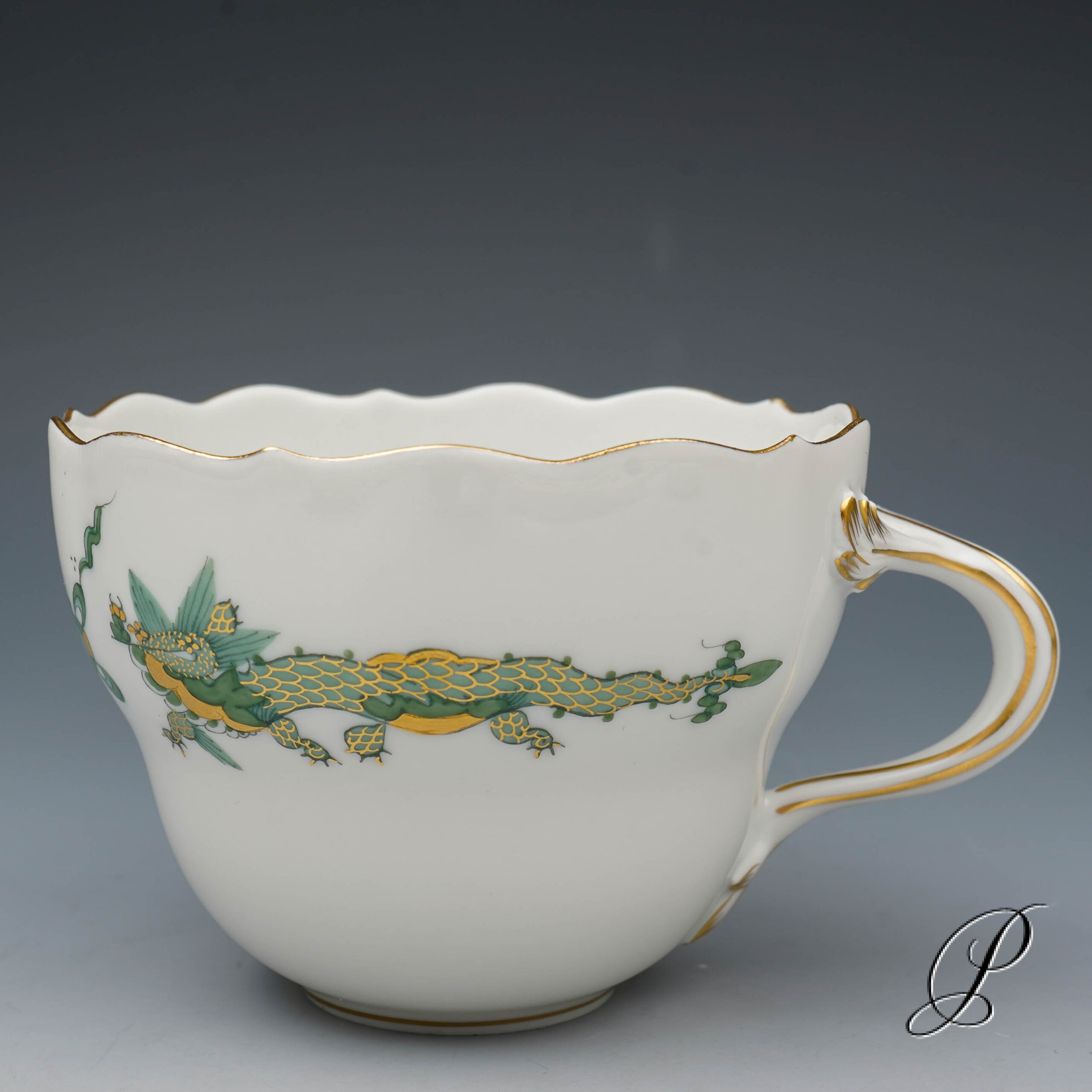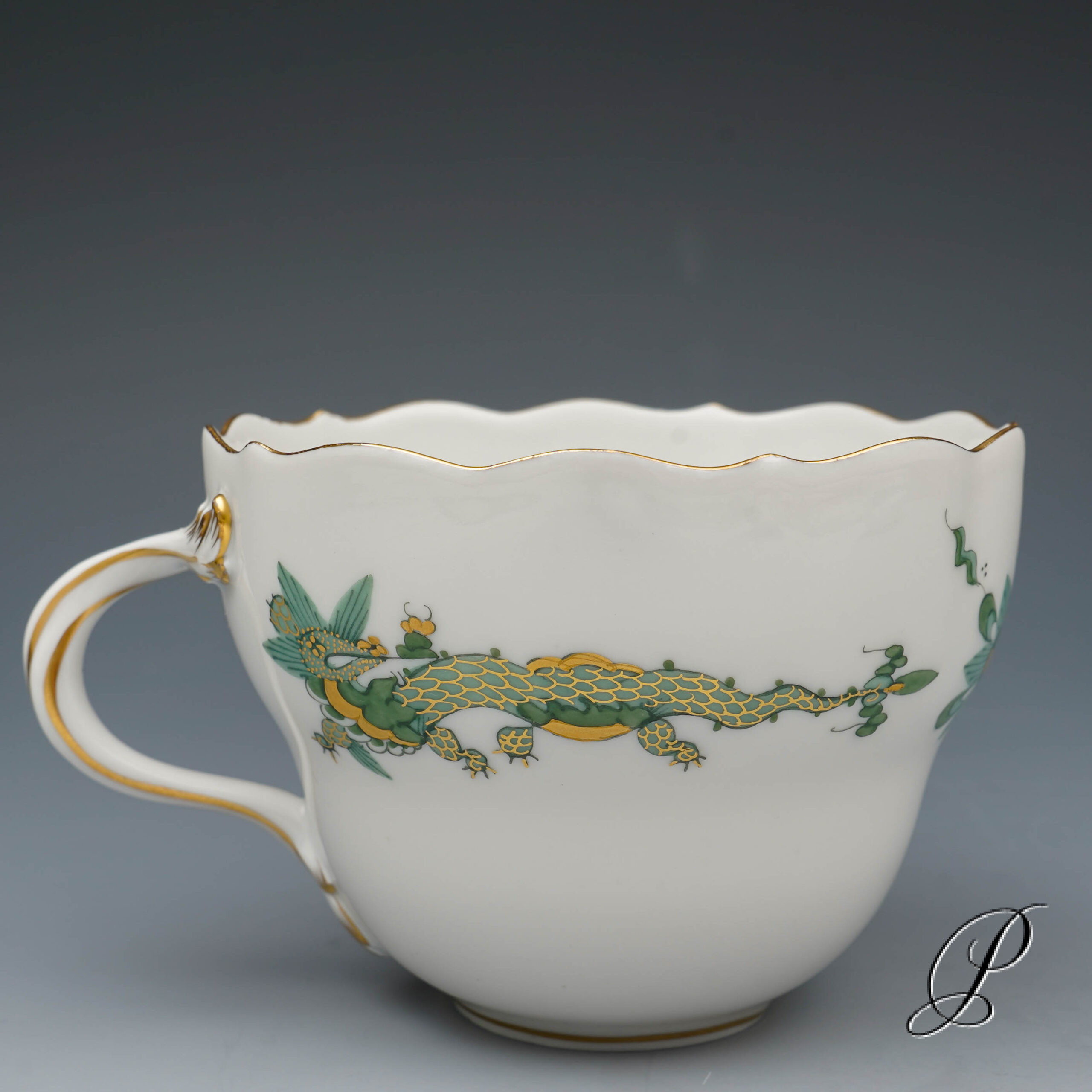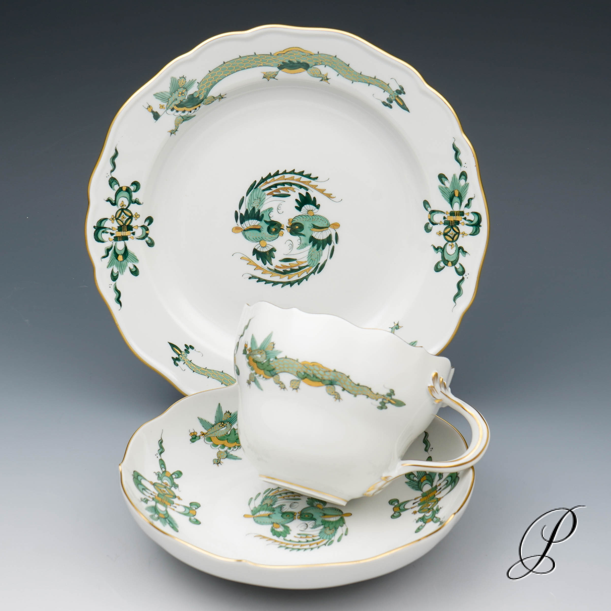 Dekor: reicher Drache grün und gold schattiert. Form: neuer Ausschnitt.