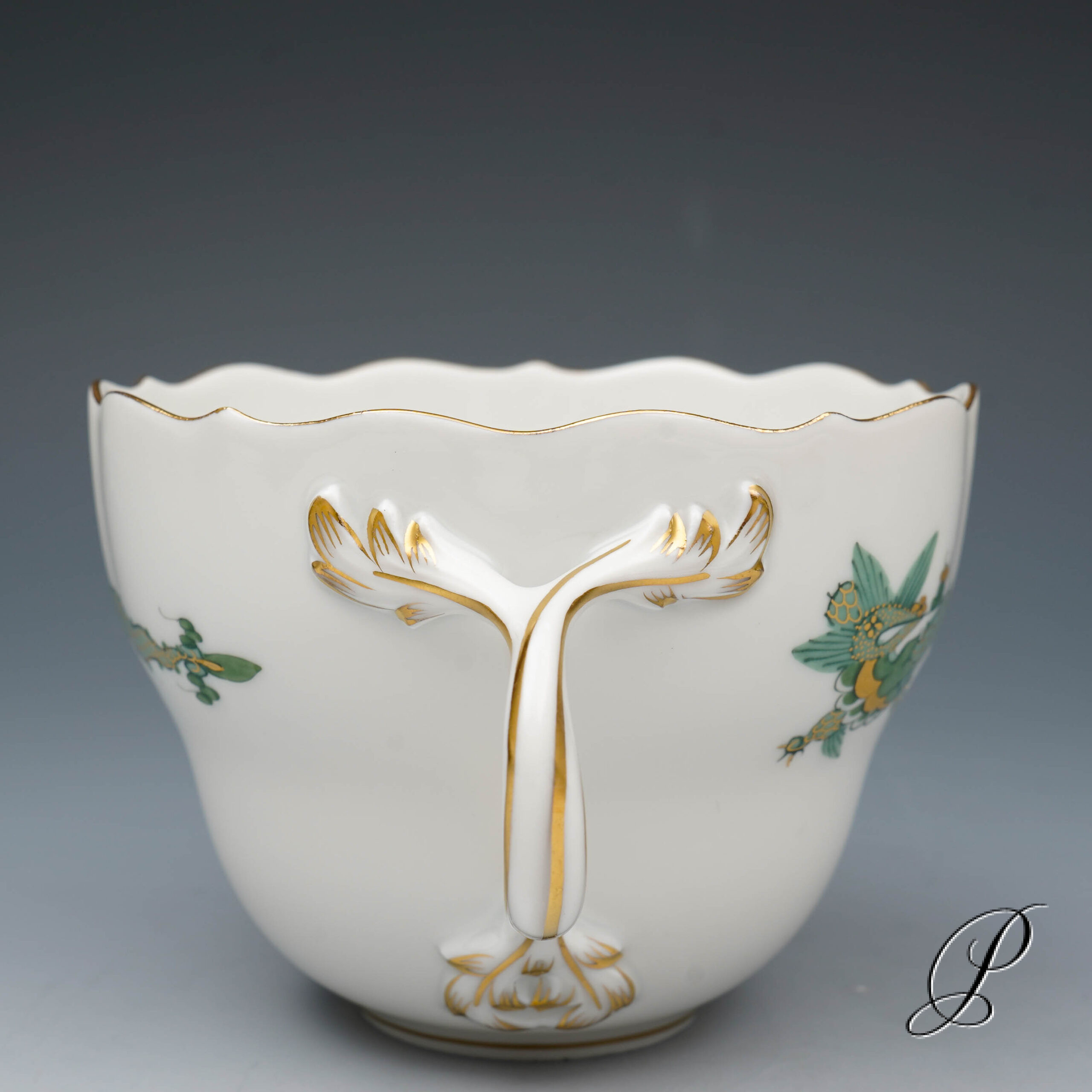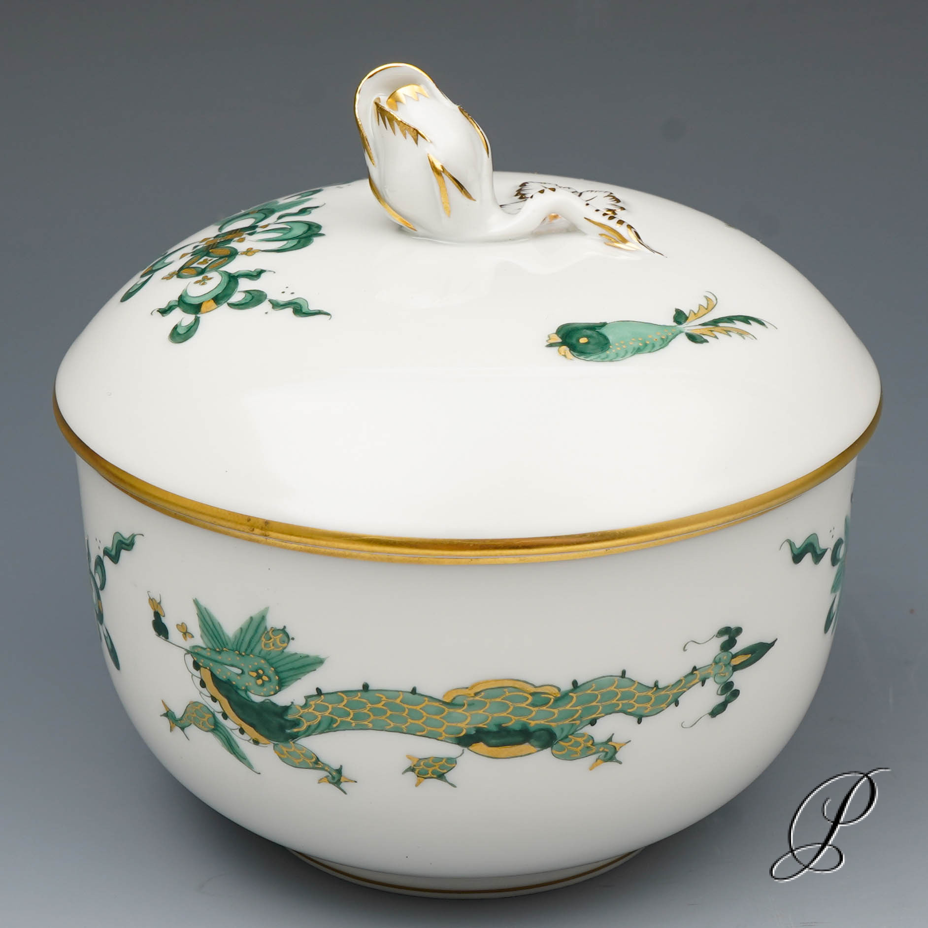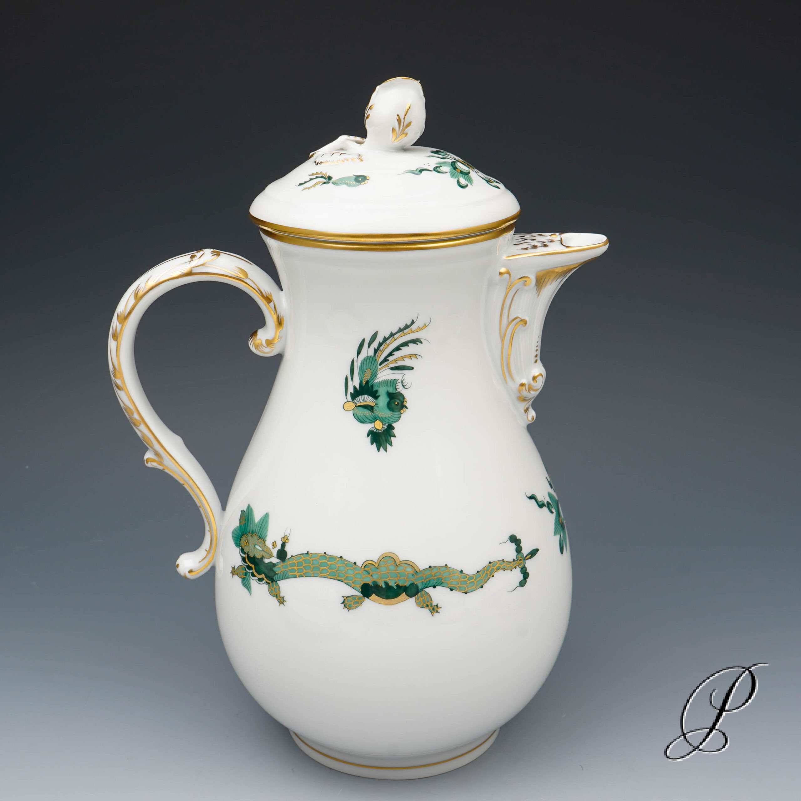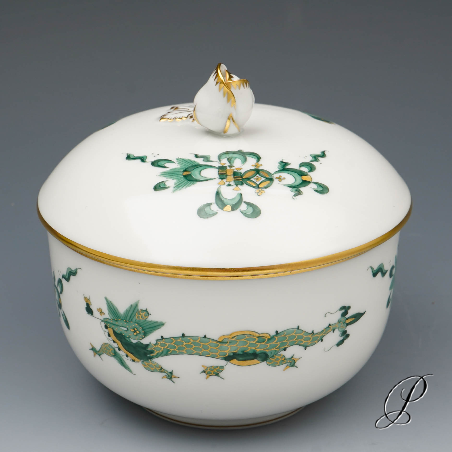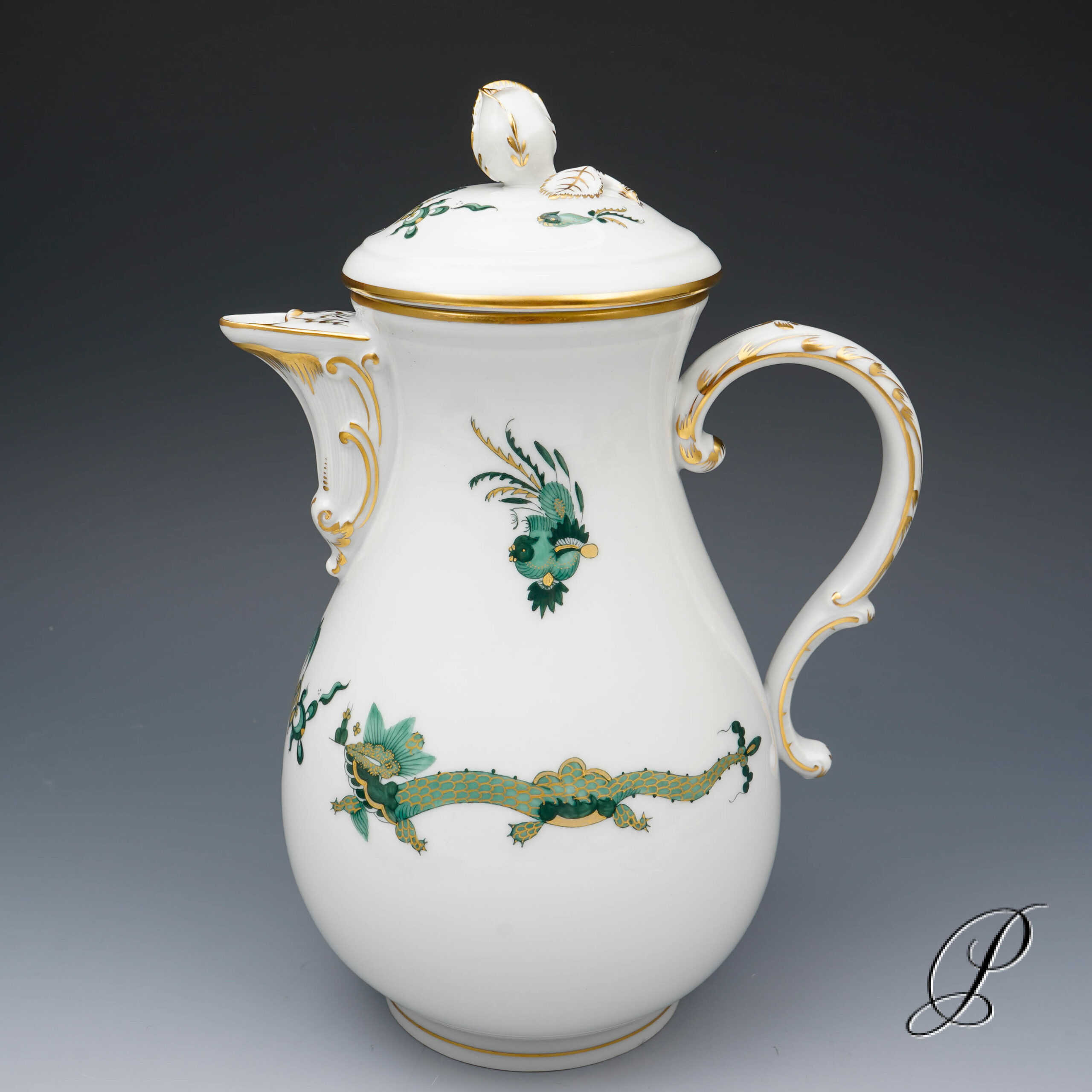 Dekor: reicher Drache grün und gold schattiert. Form: neuer Ausschnitt.
