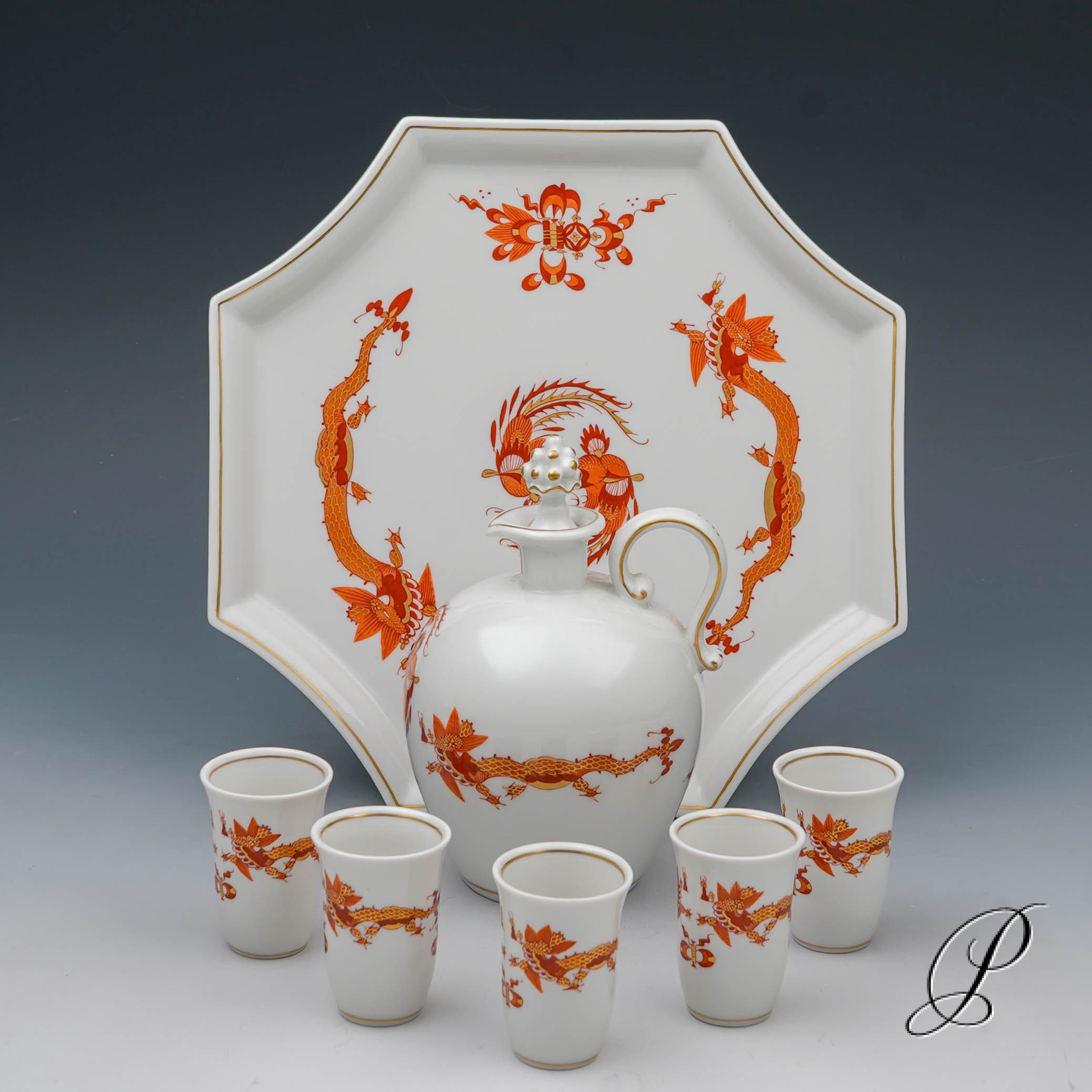 Dekor: Reicher Drache Rot, Goldschattiert und Goldrand. Dekornummer 320510.