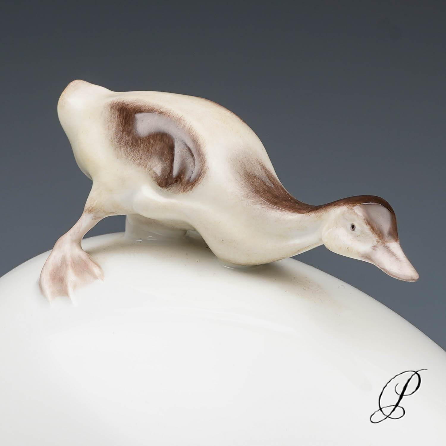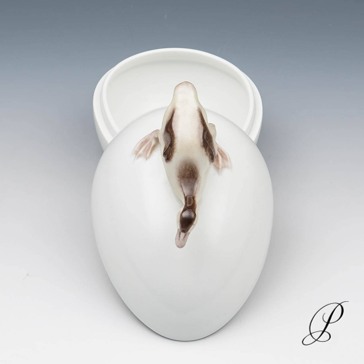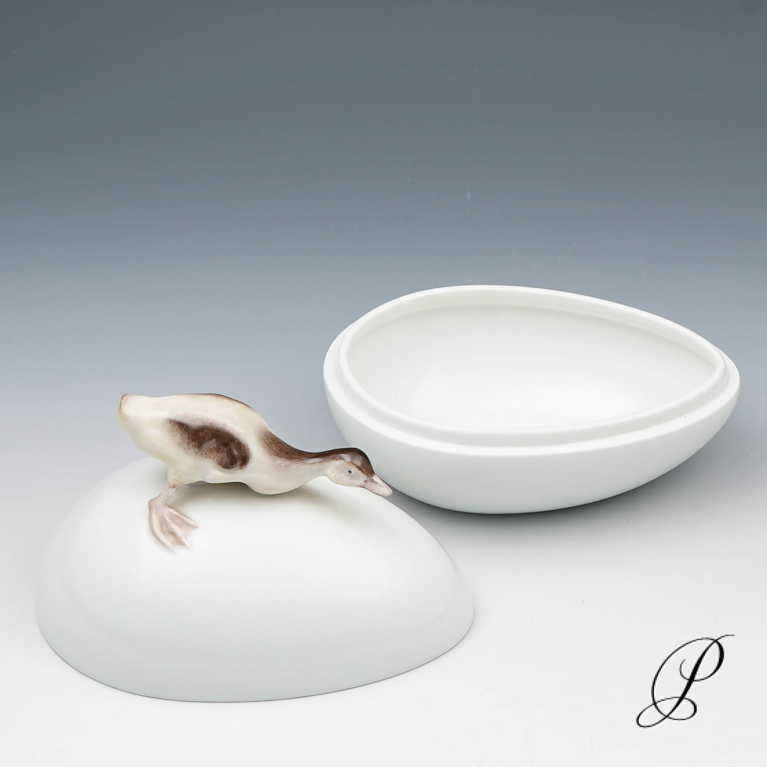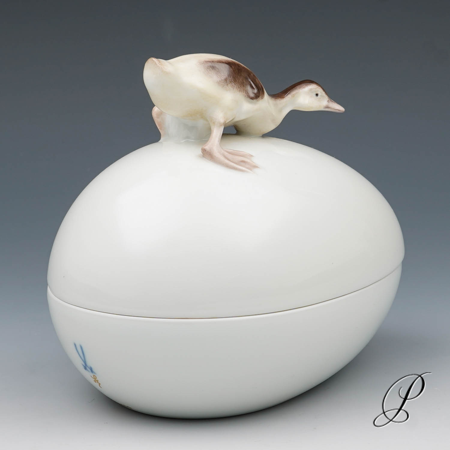 Deckeldose in Ei-Form, Deckel mit Knauf in Form mit plastischem Entenküken.