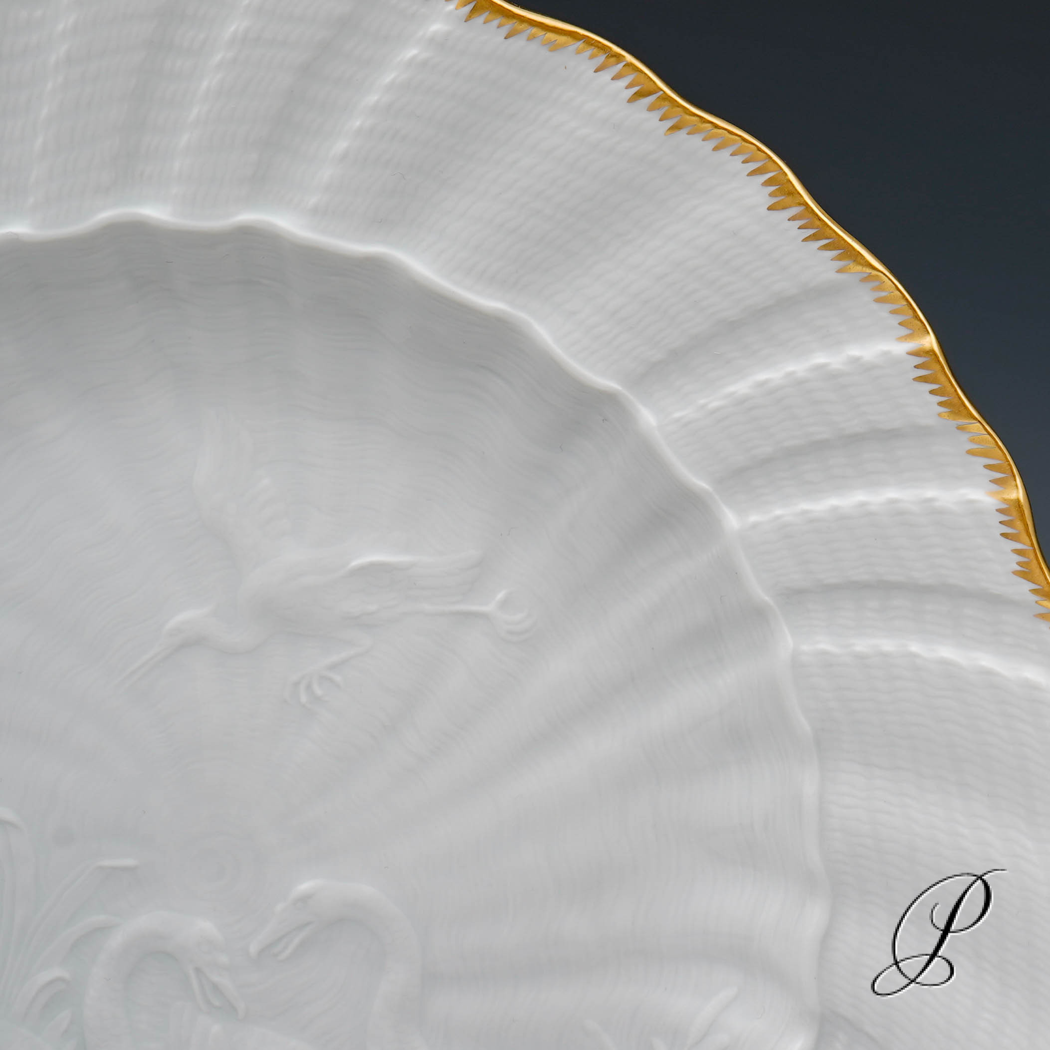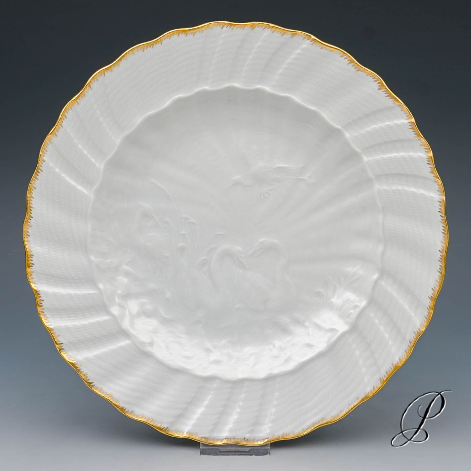 Form und Dekor: Schwanendessin mit Goldkante.