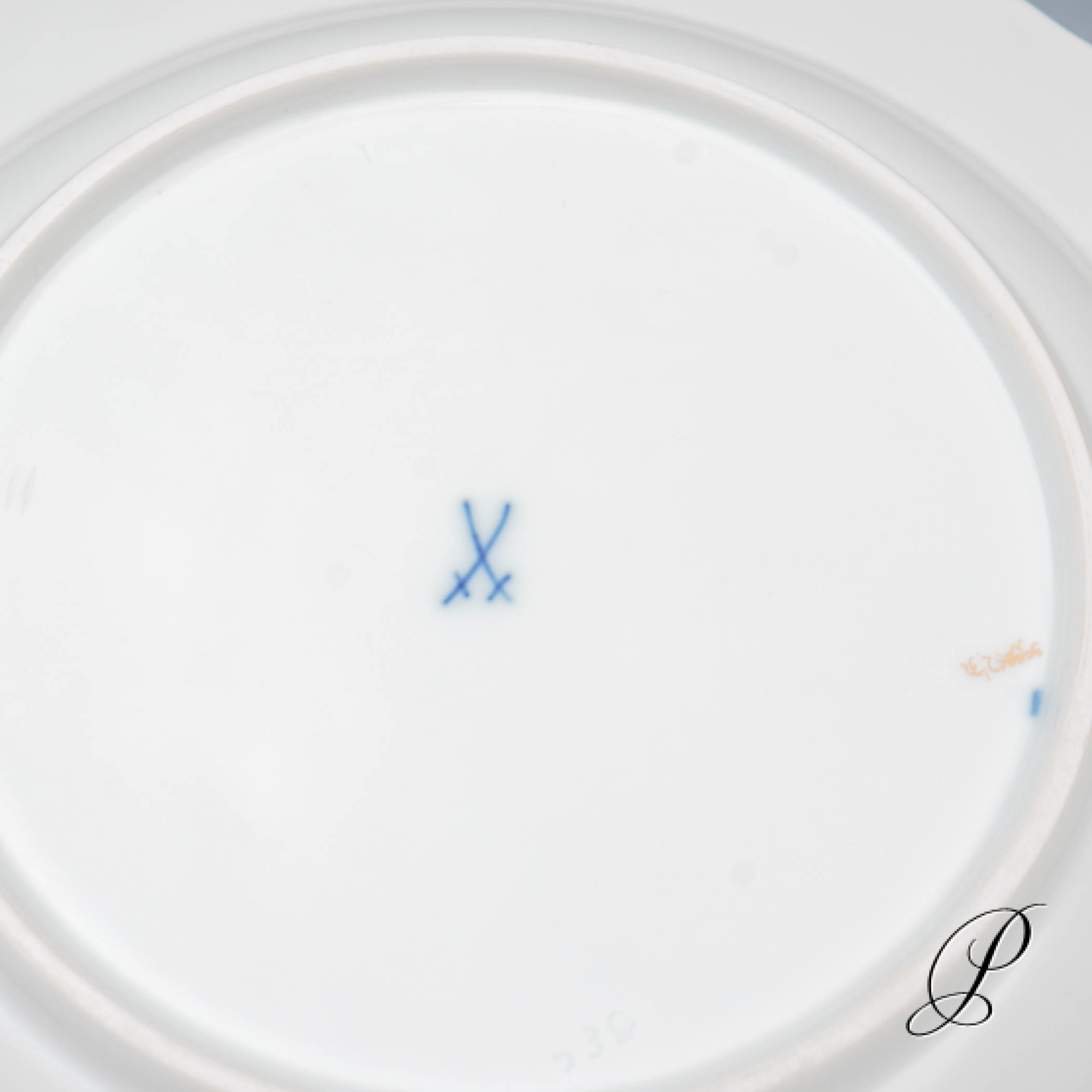 Unterglasurblaue Schwertmarke Meissen mit zwei Schleifstrichen.