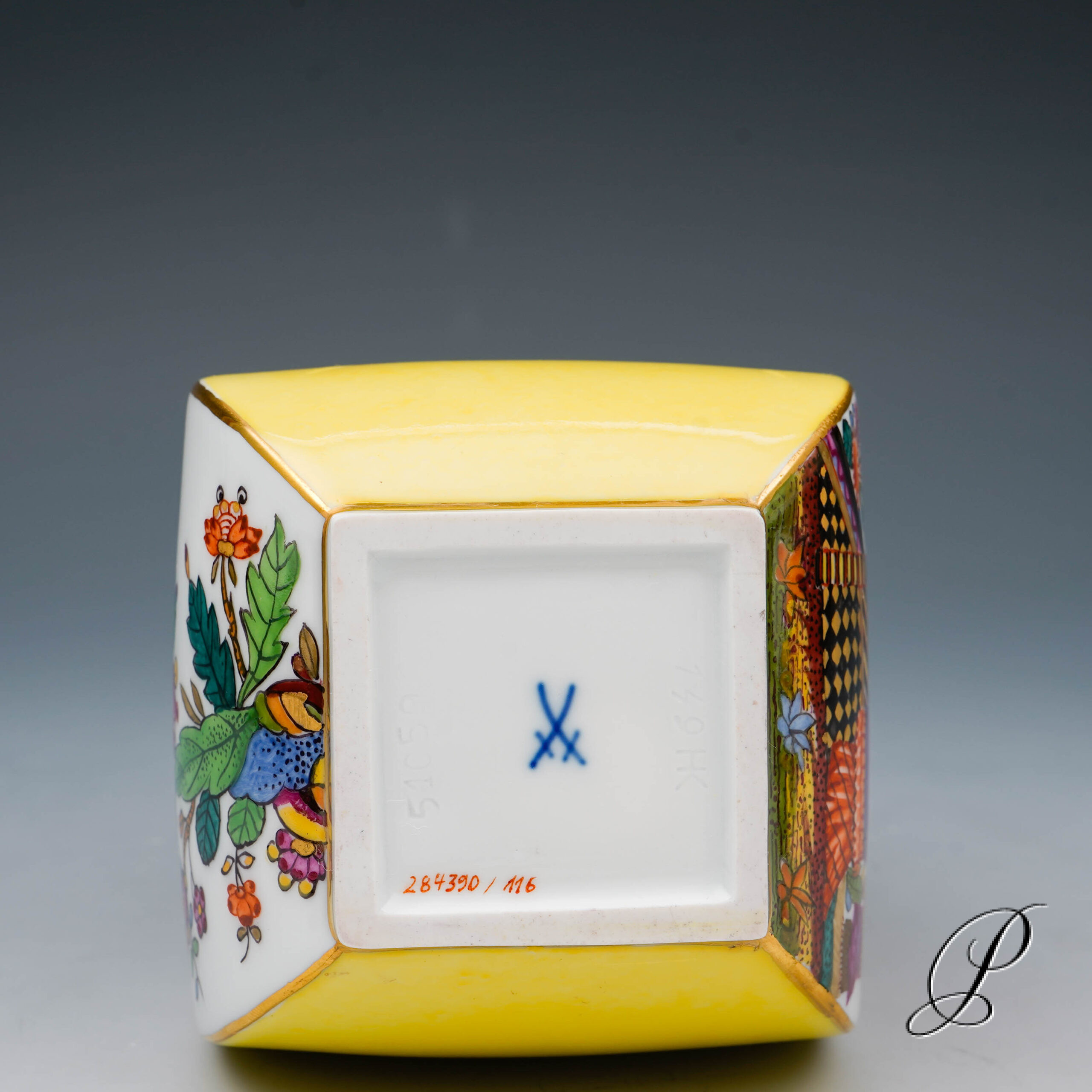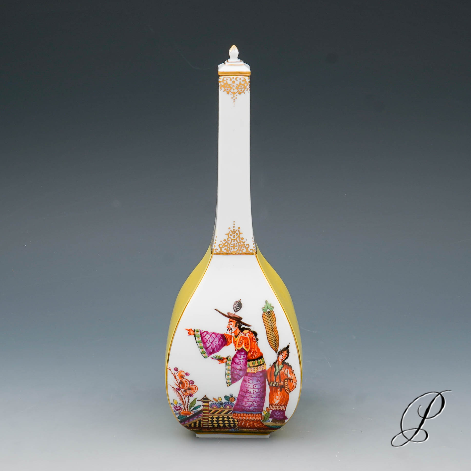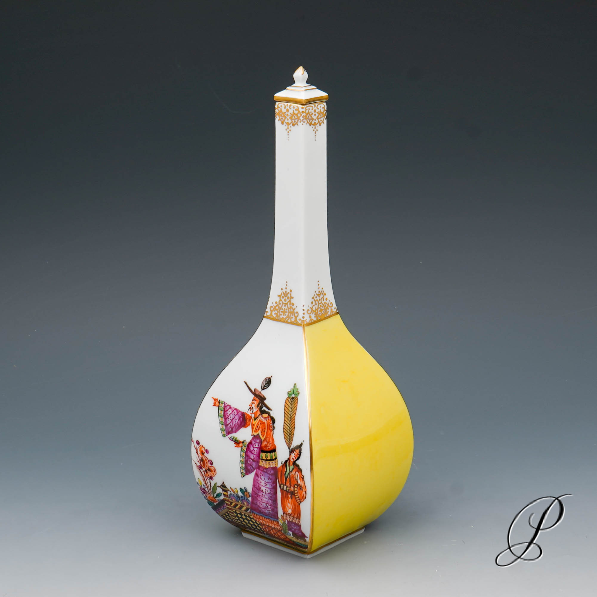 In dieser Staffage ein echter Leckerbissen!! Chinoiserien kombiniert mit Indischer Blumenmalerei sowie gelben Fond.