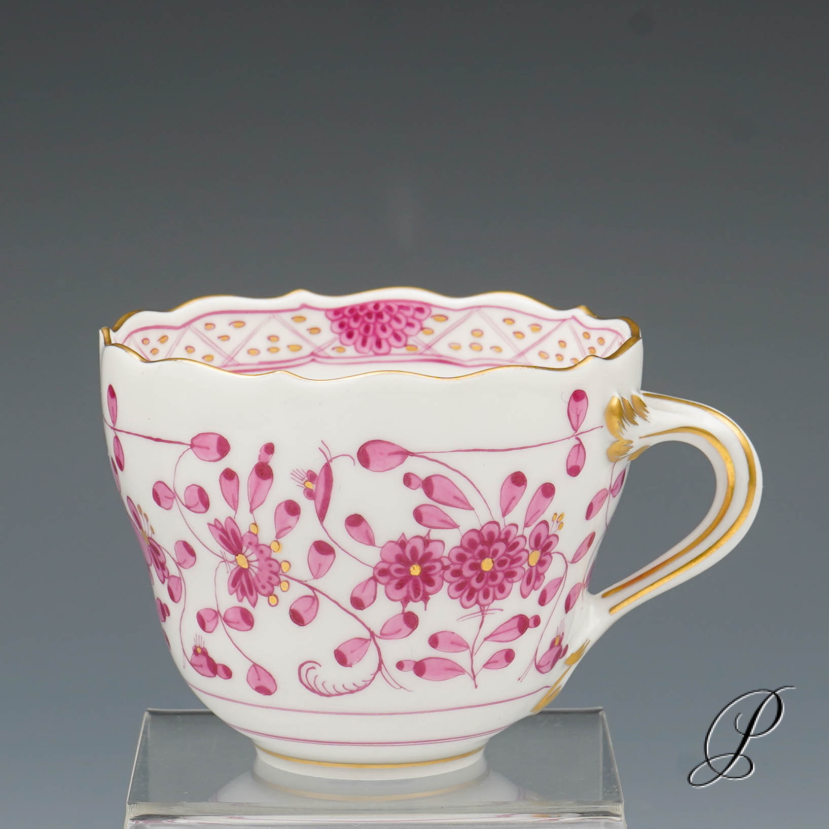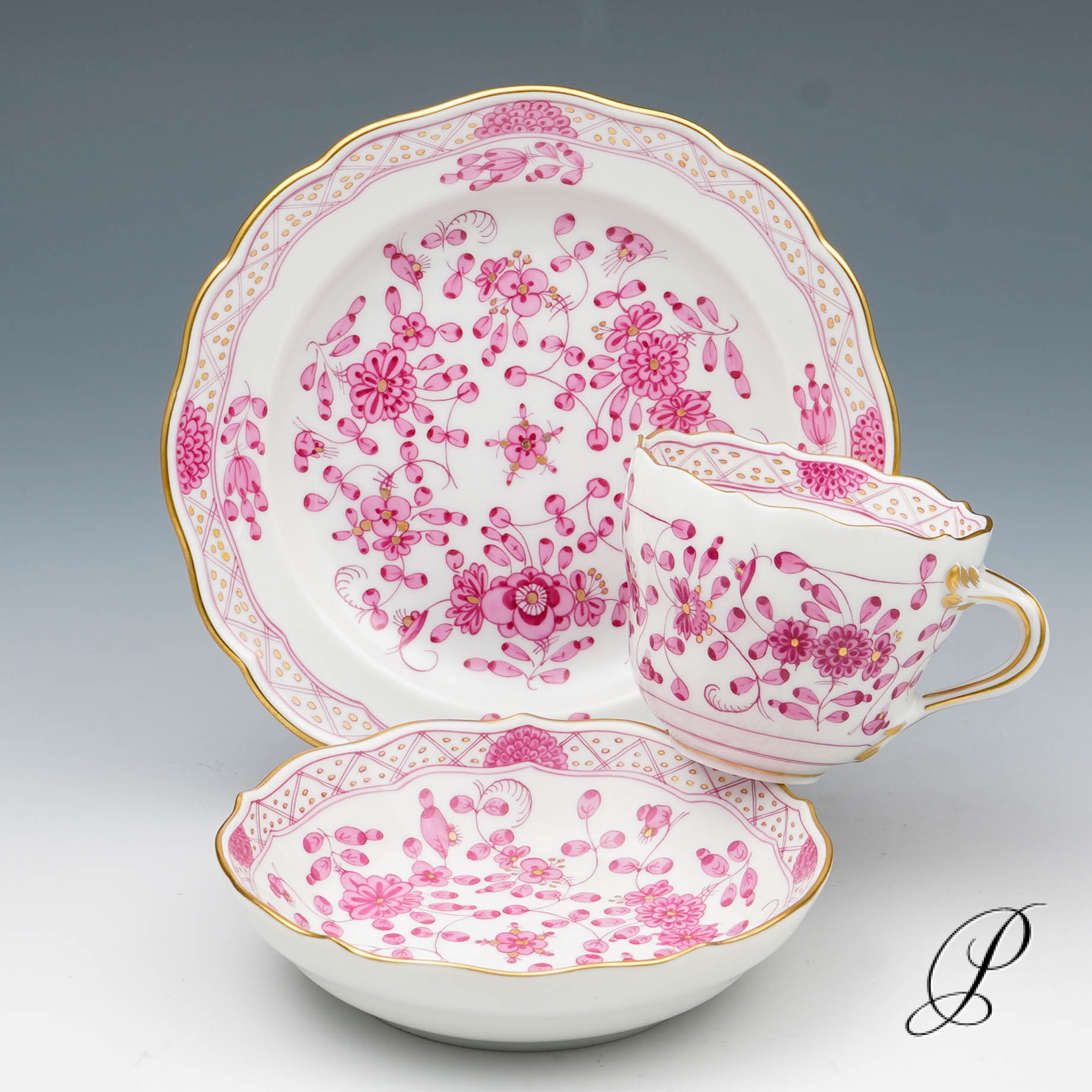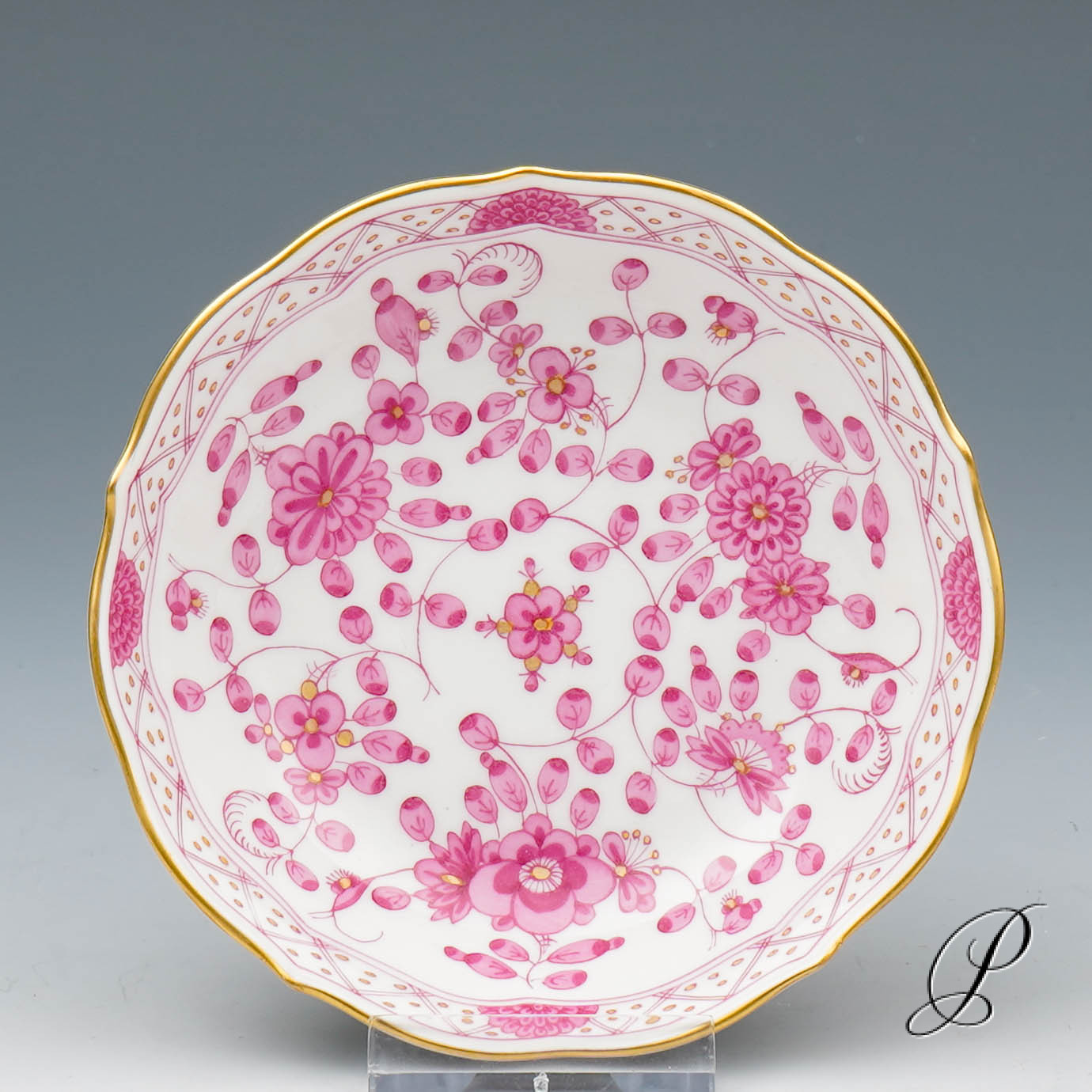 Dekor: Indische Malerei, purpur, Goldpunkte, Goldrand.