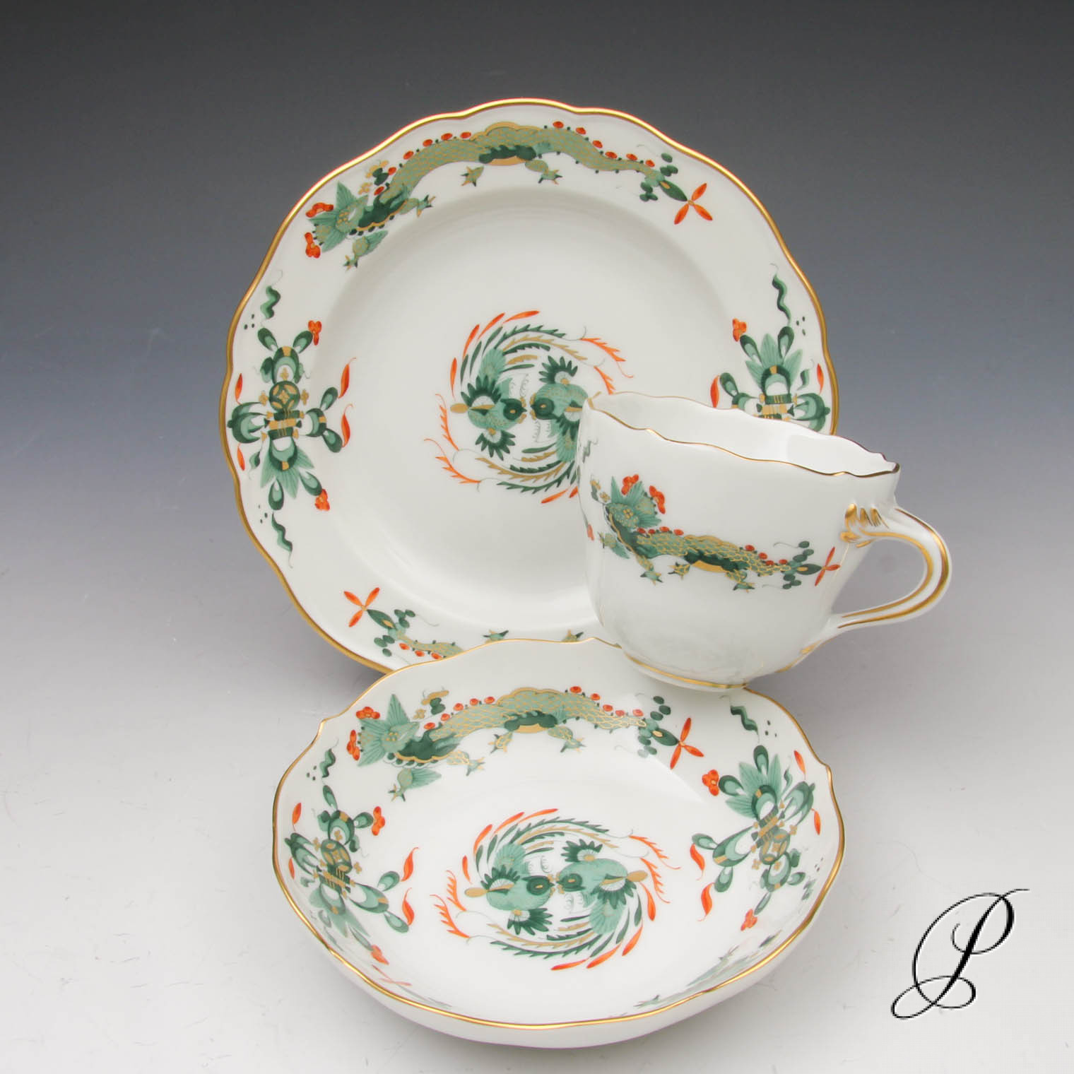 Mokkagedeck Meissen 1.Wahl reicher Drache grün, rot