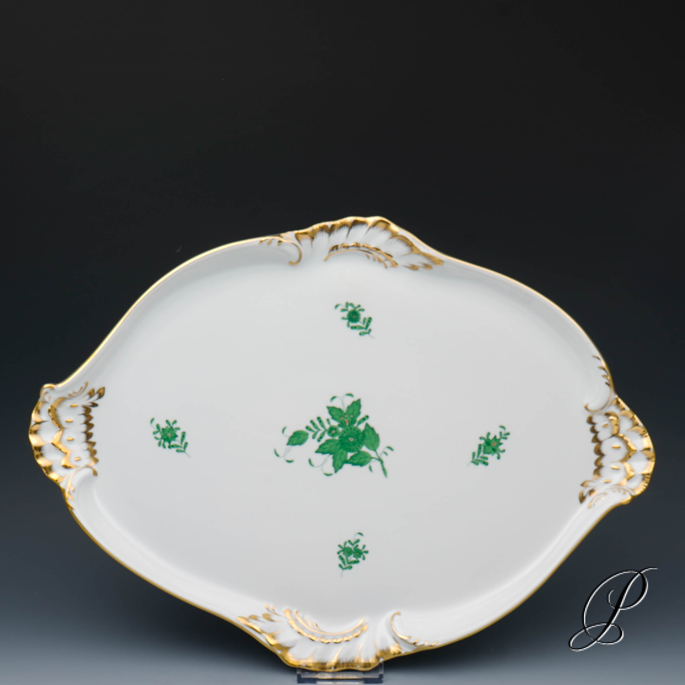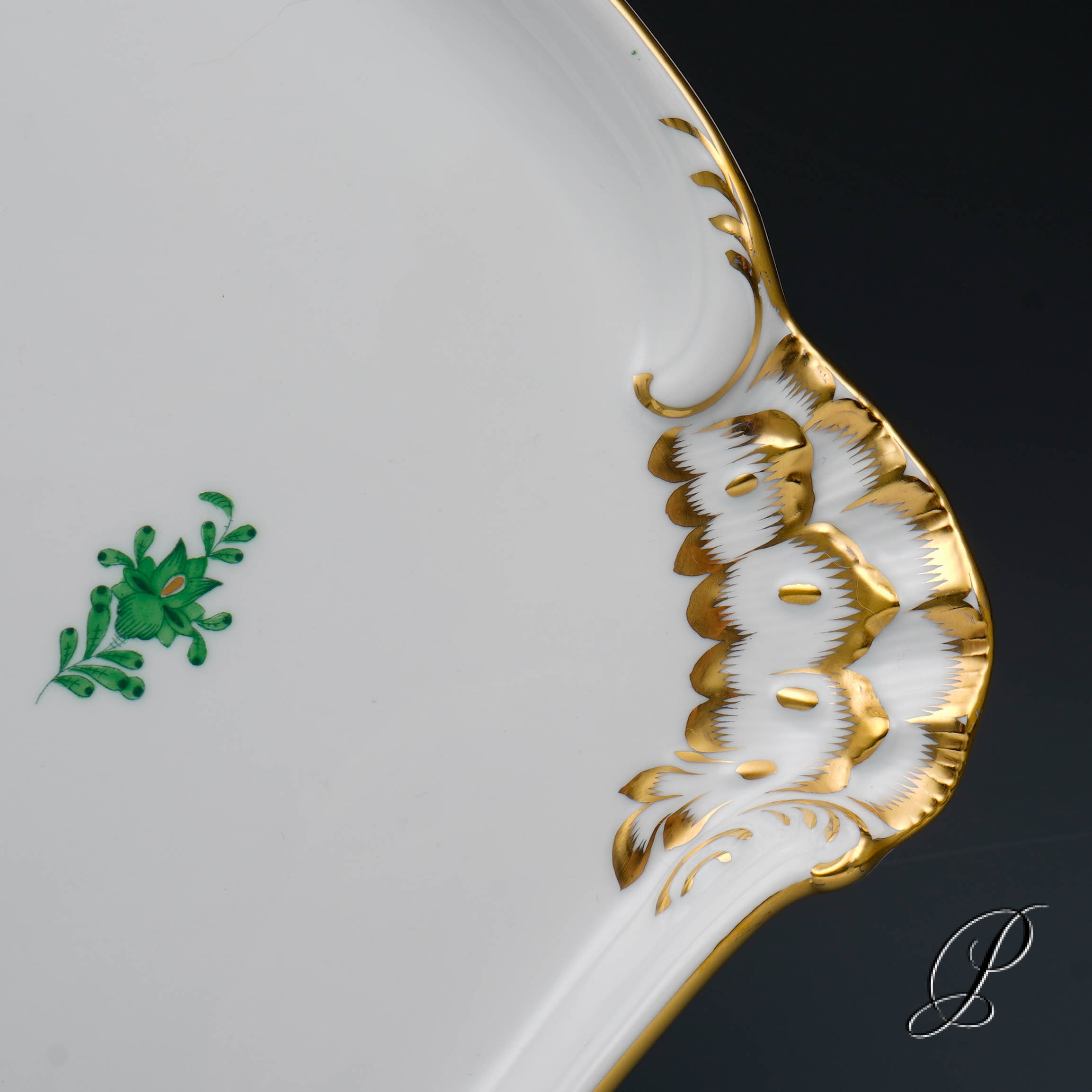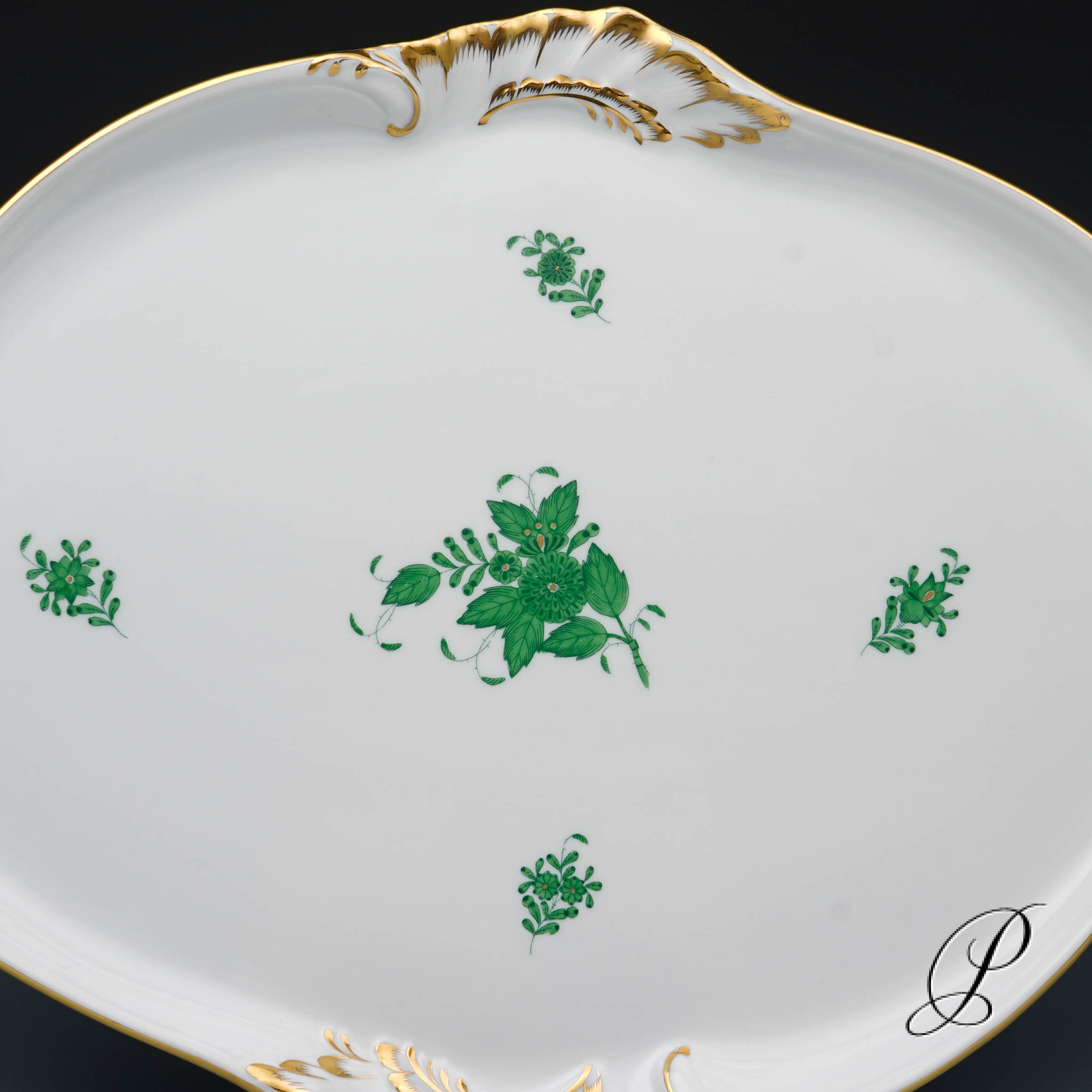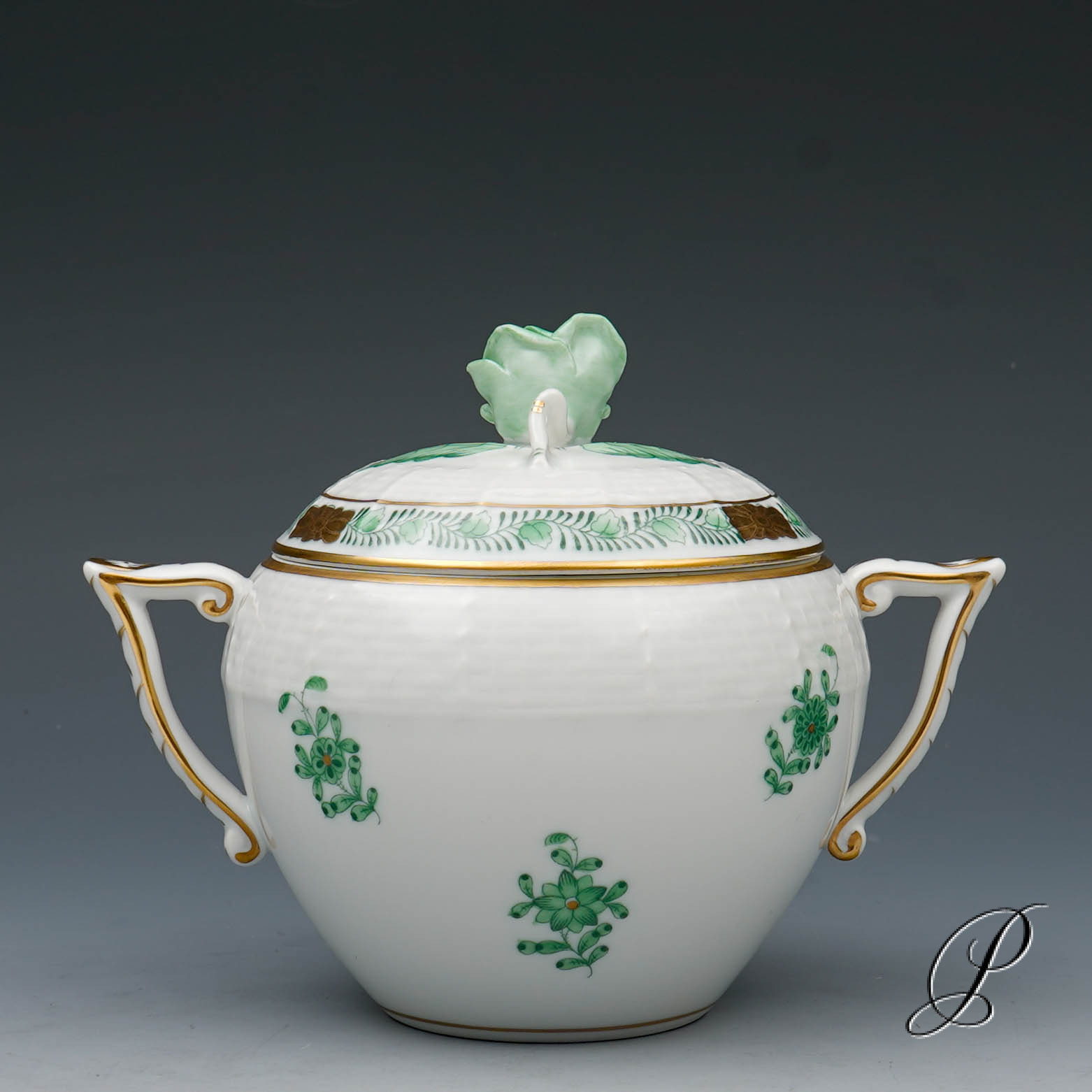 Das Dekor Apponyi gibt es in verschiedenen Farbvarianten. Der Name verbindet sich mit dem Grafen Albert Apponyi, der dieses Motiv in der Herend Manufaktur bestellte. Das Dekor wurde in Anlehnung an das fernöstliche Motiv „Indischer Blumenkorb“ entworfen. Eine stilisierte Pfingstrose in Konturmalerei welche von 6 Streumotiven und einer Girlande aus stilisierten Blättern umgeben ist.