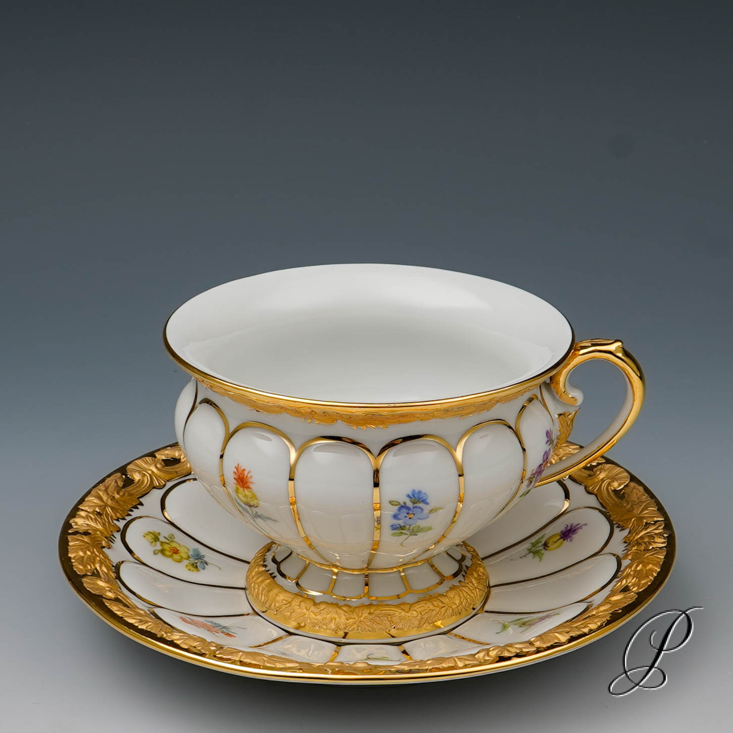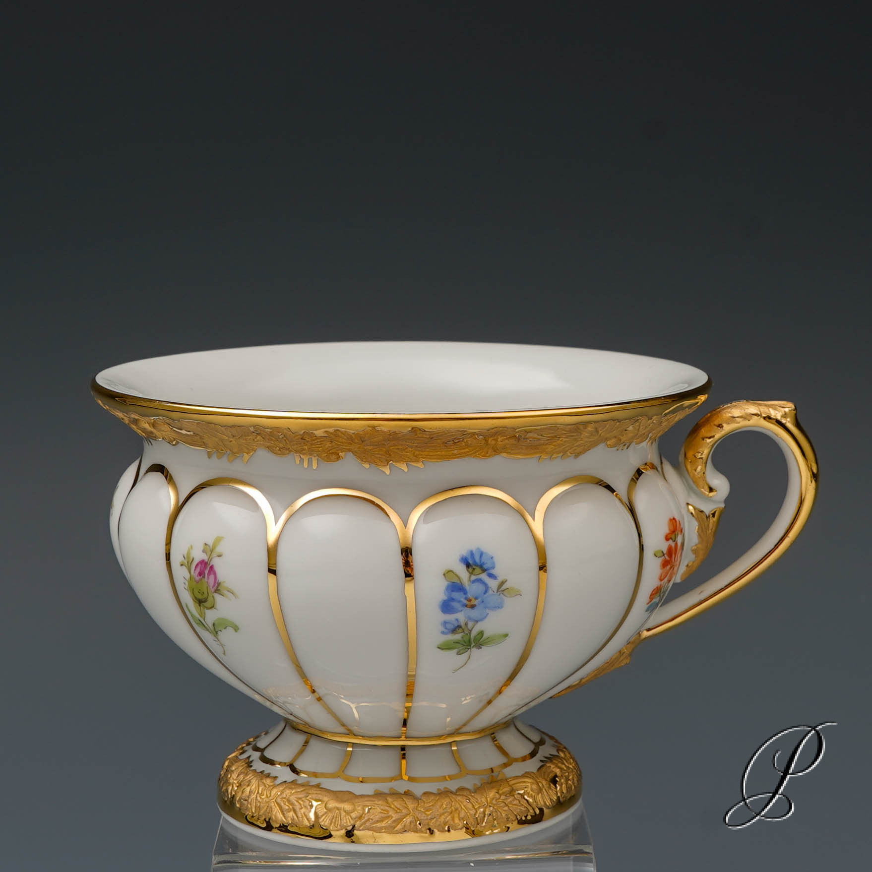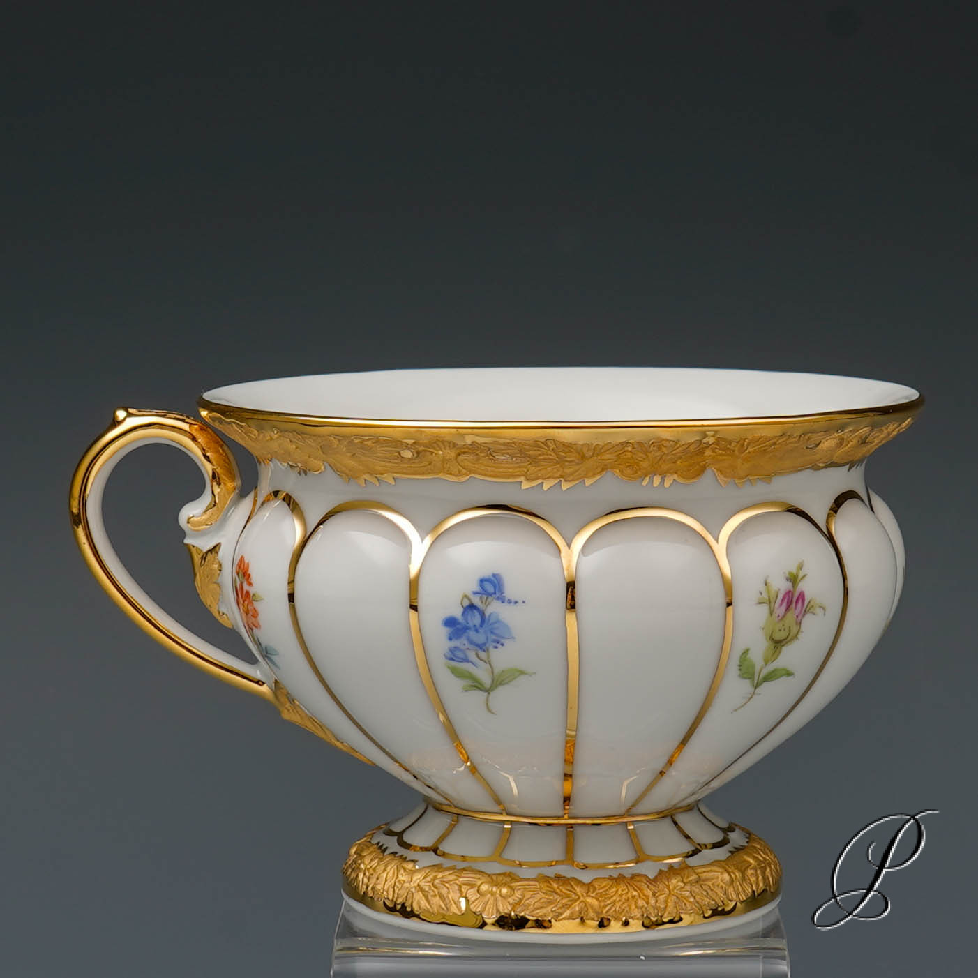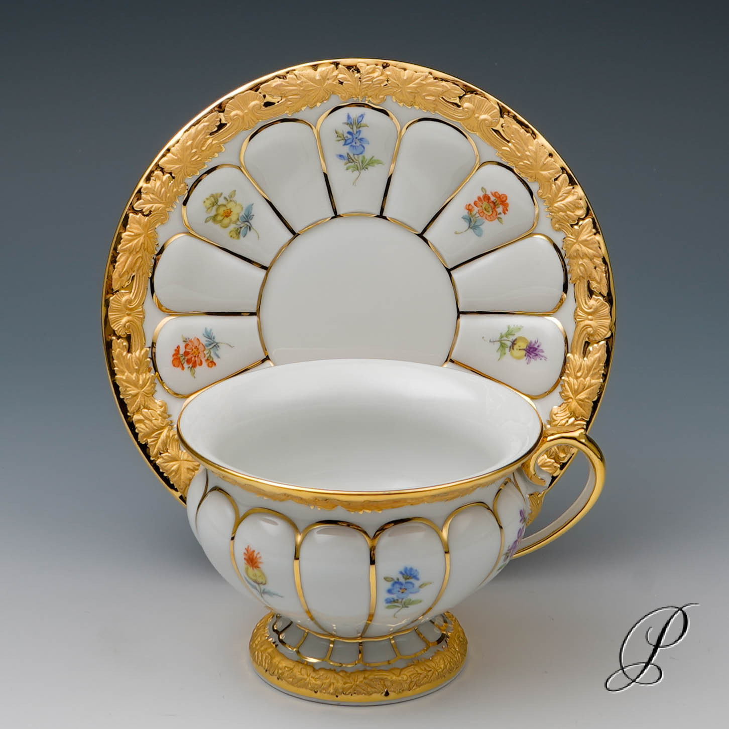 Prunkvolle Ausführung. Sehr edel. Sogenannte X-Form mit Prunkvergoldung und Streublümchen.