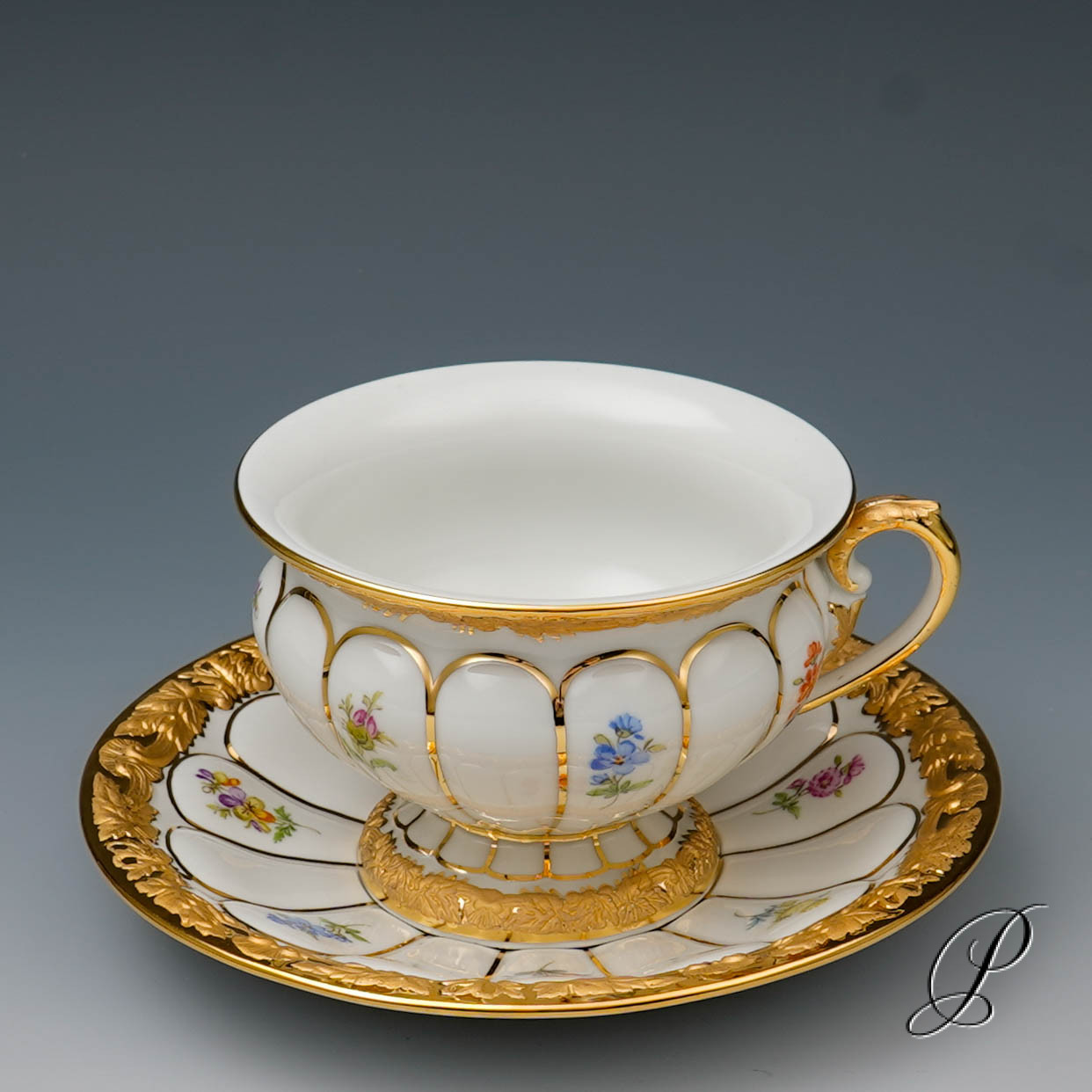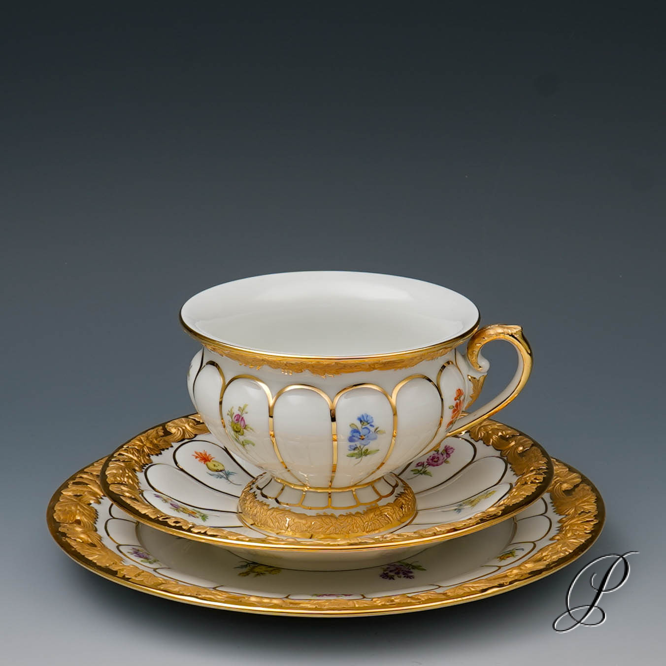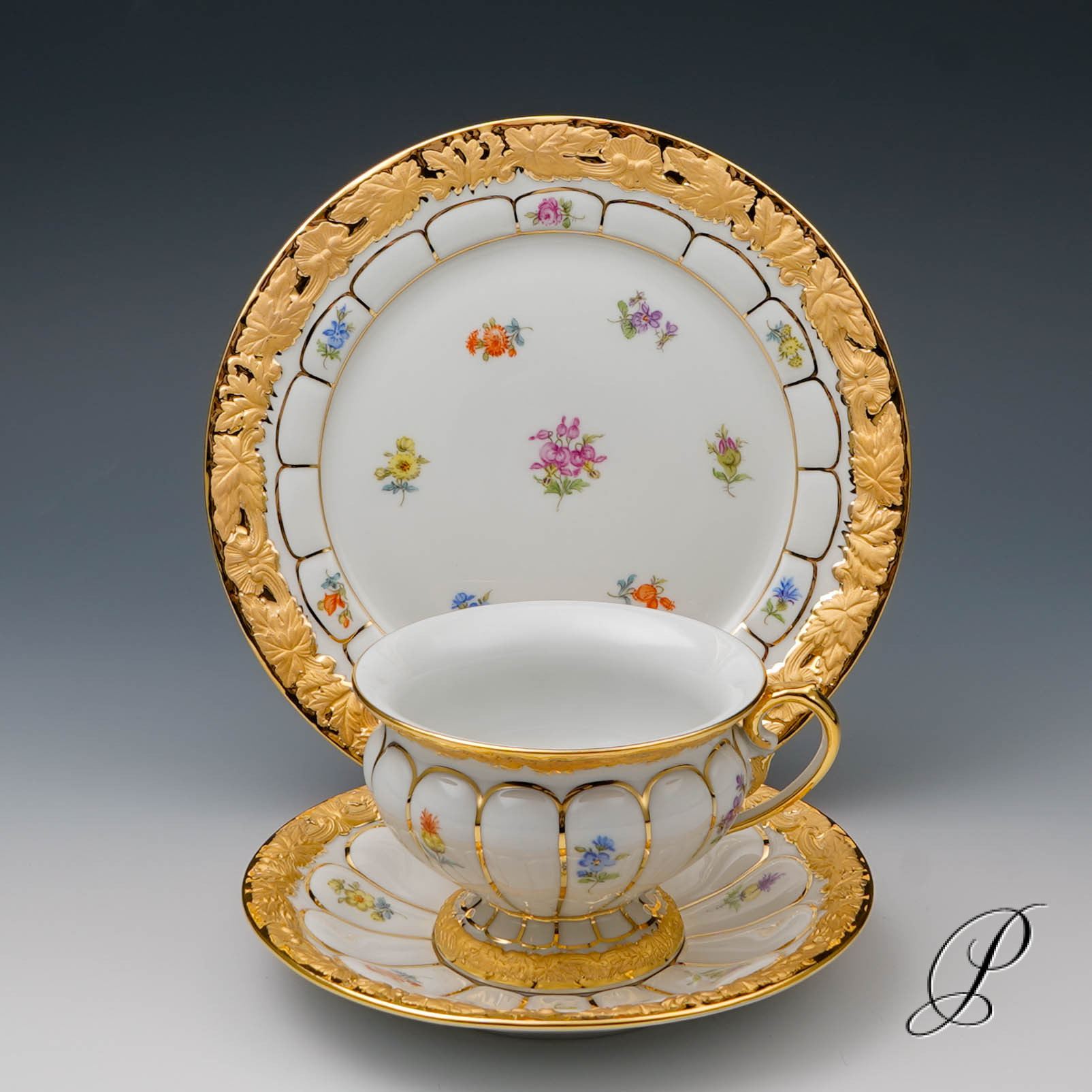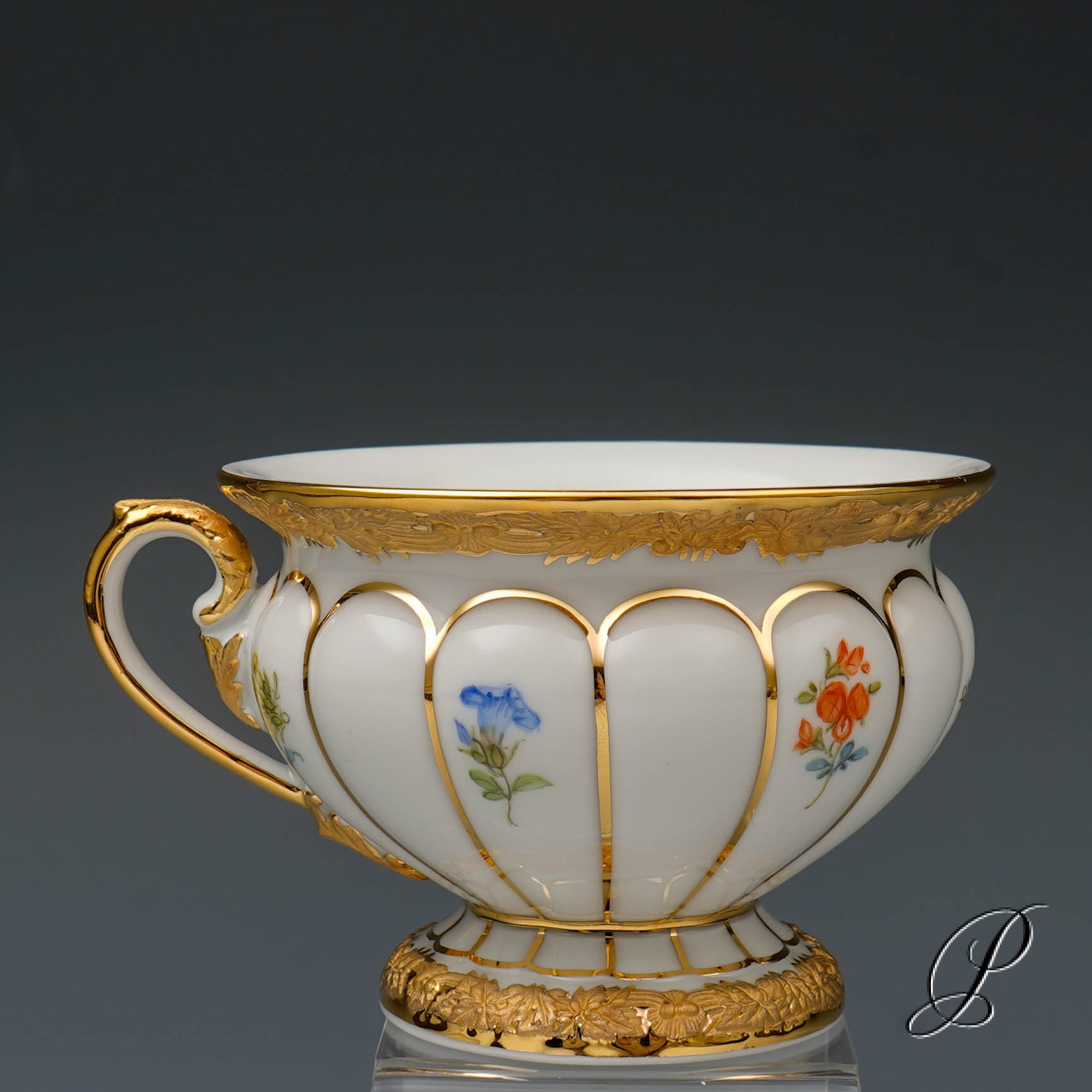 Prunkvolle Ausführung. Sehr edel. Sogenannte X-Form mit Prunkvergoldung und Streublümchen.