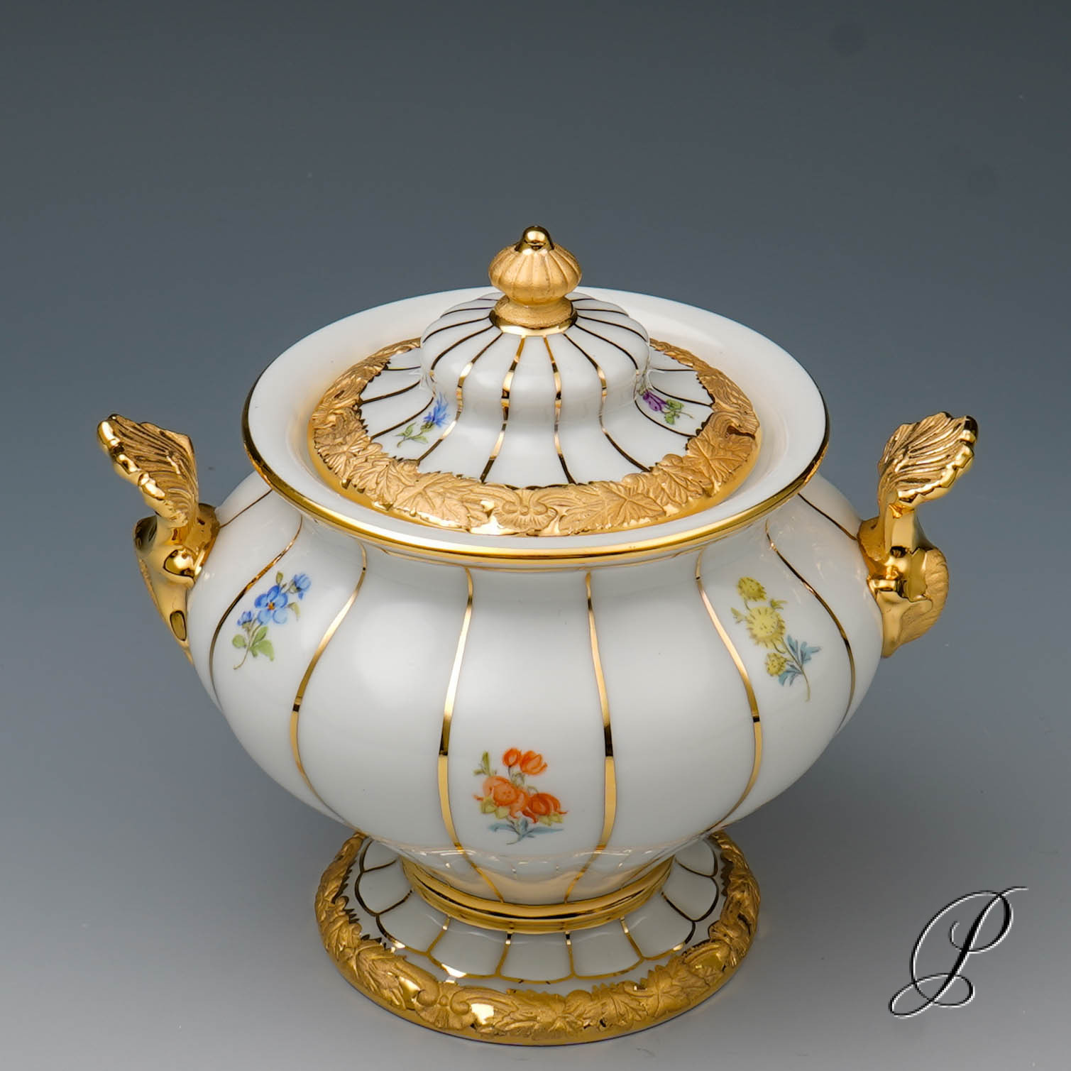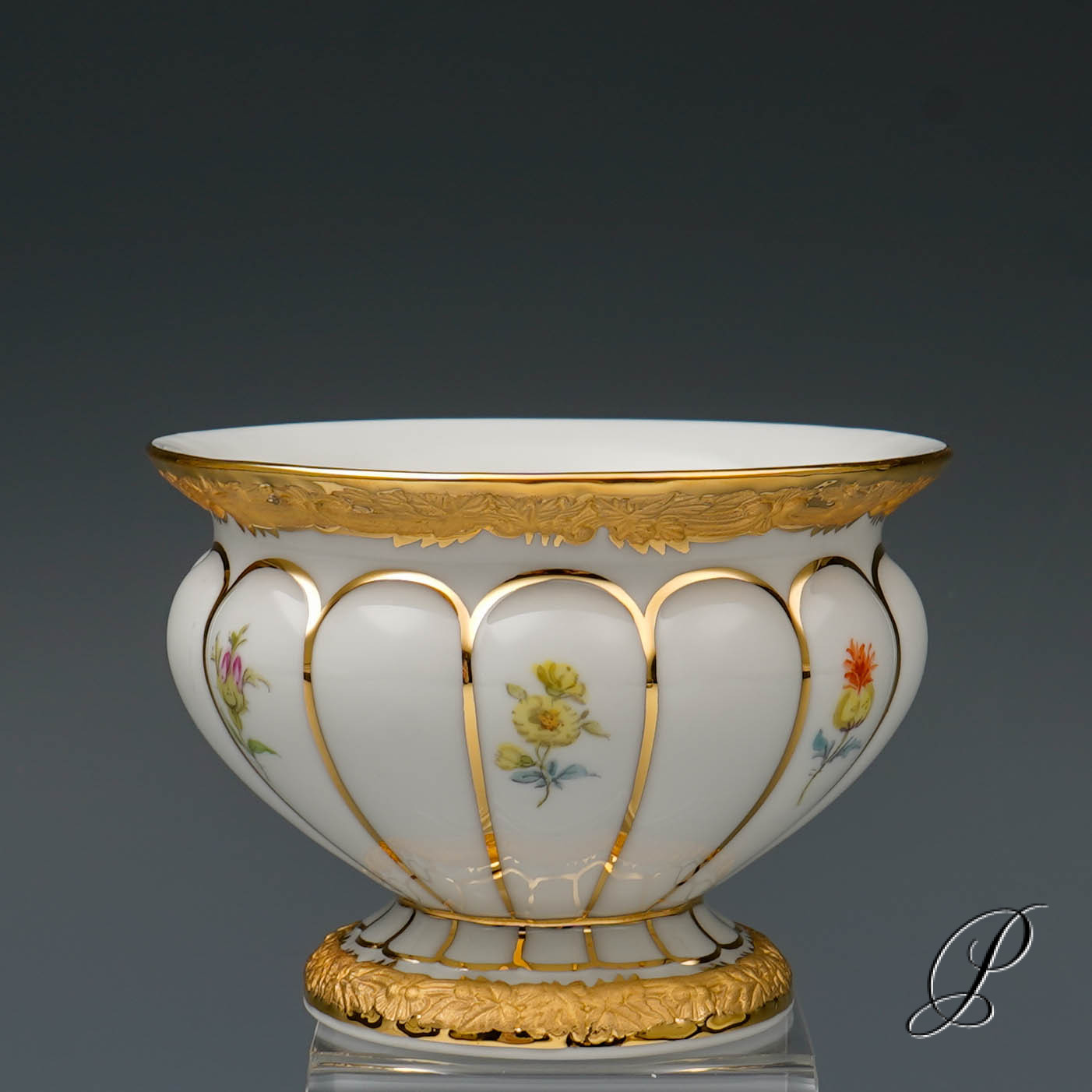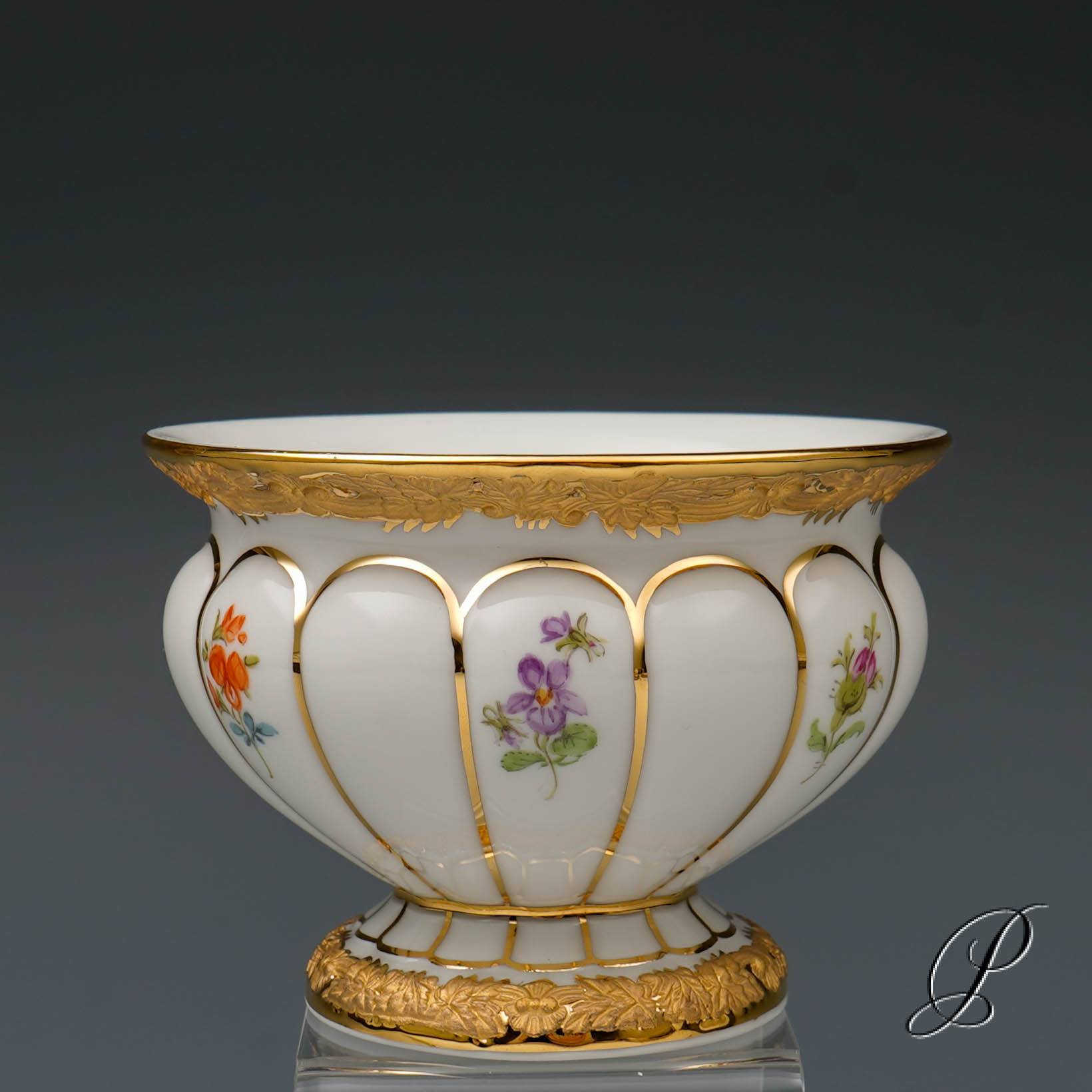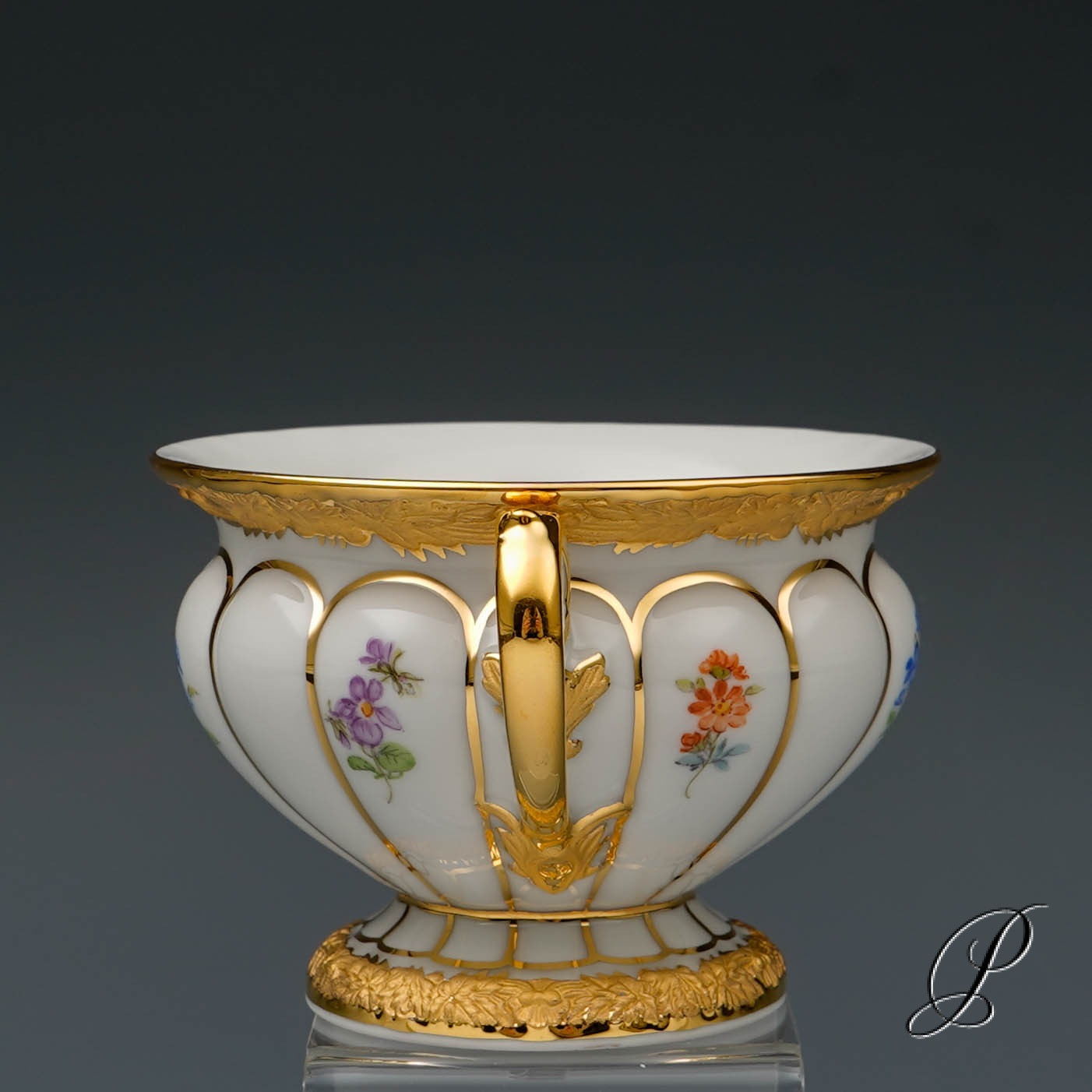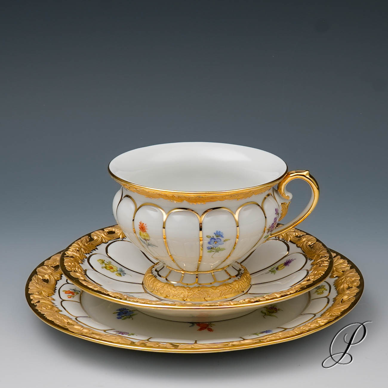 Prunkvolle Ausführung. Sehr edel. Sogenannte X-Form mit Prunkvergoldung und Streublümchen.
