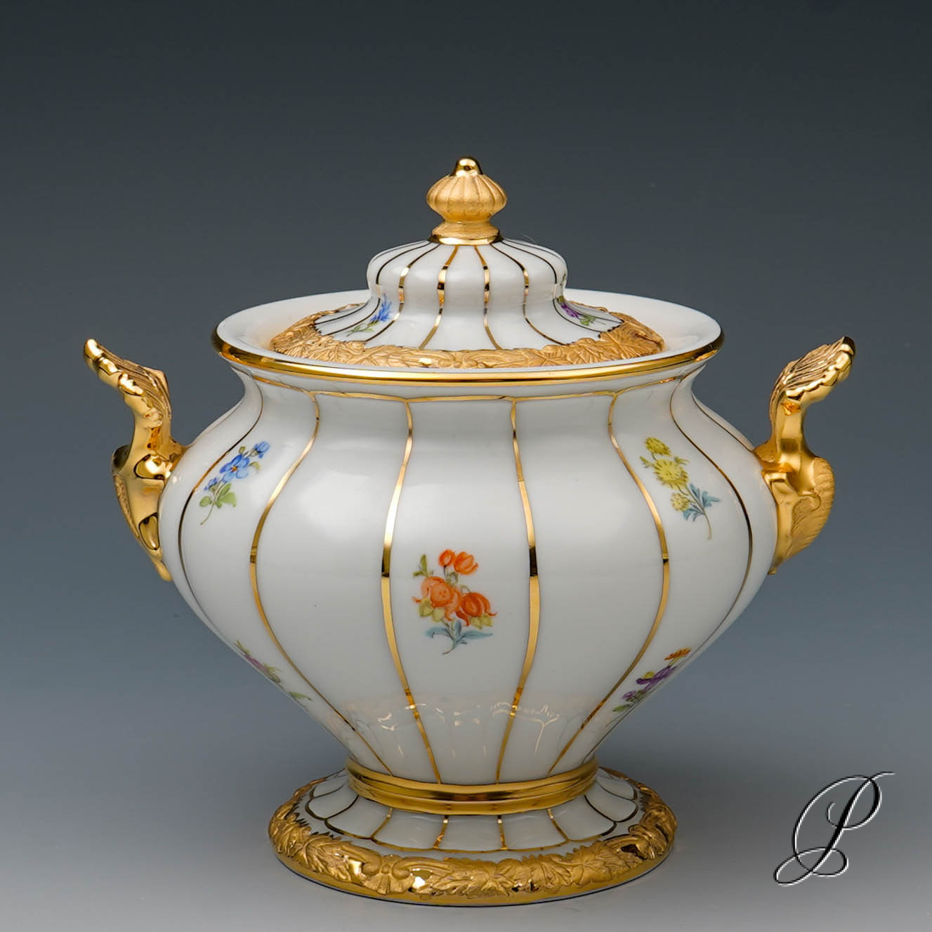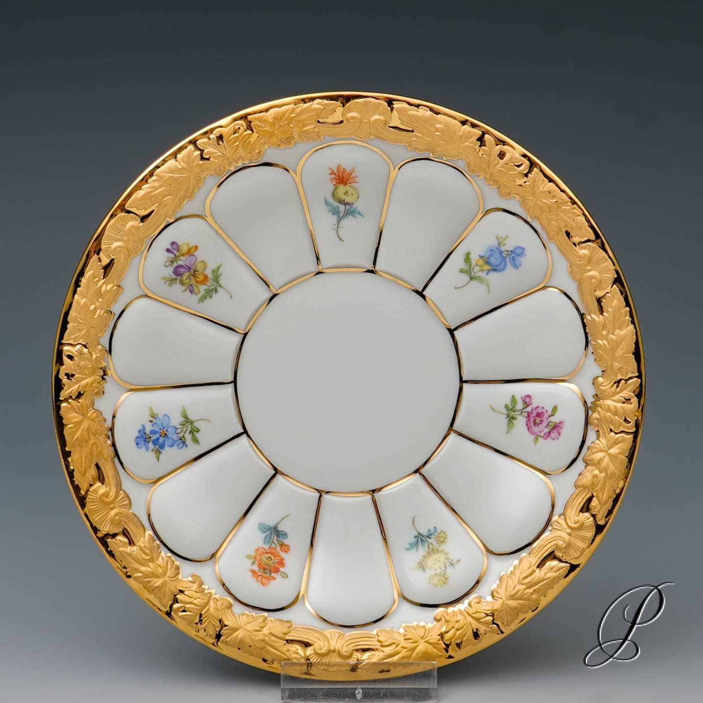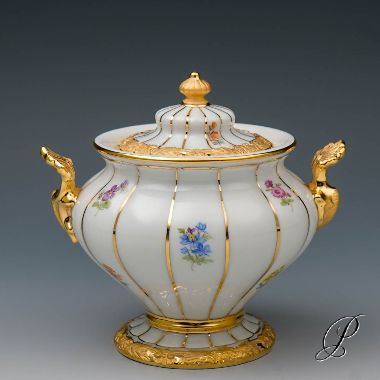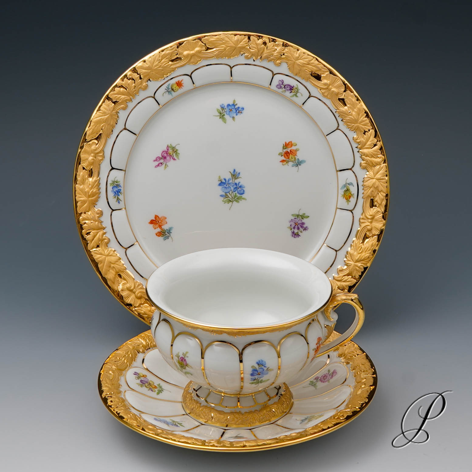 Prunkvolle Ausführung. Sehr edel. Sogenannte X-Form mit Prunkvergoldung und Streublümchen.