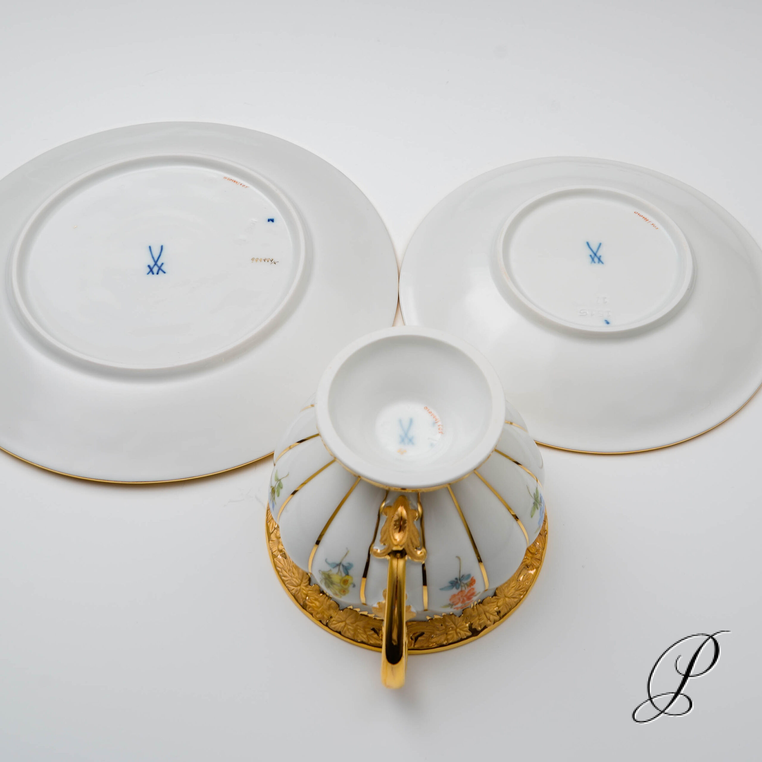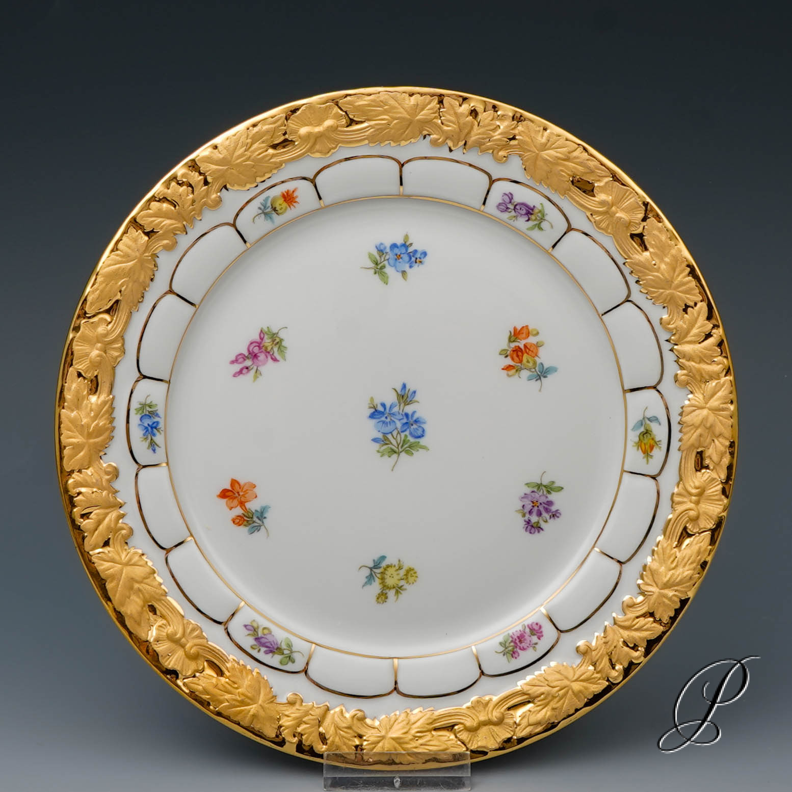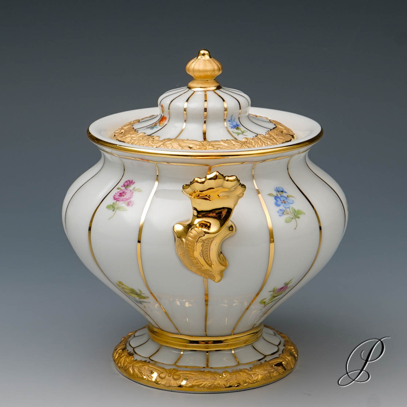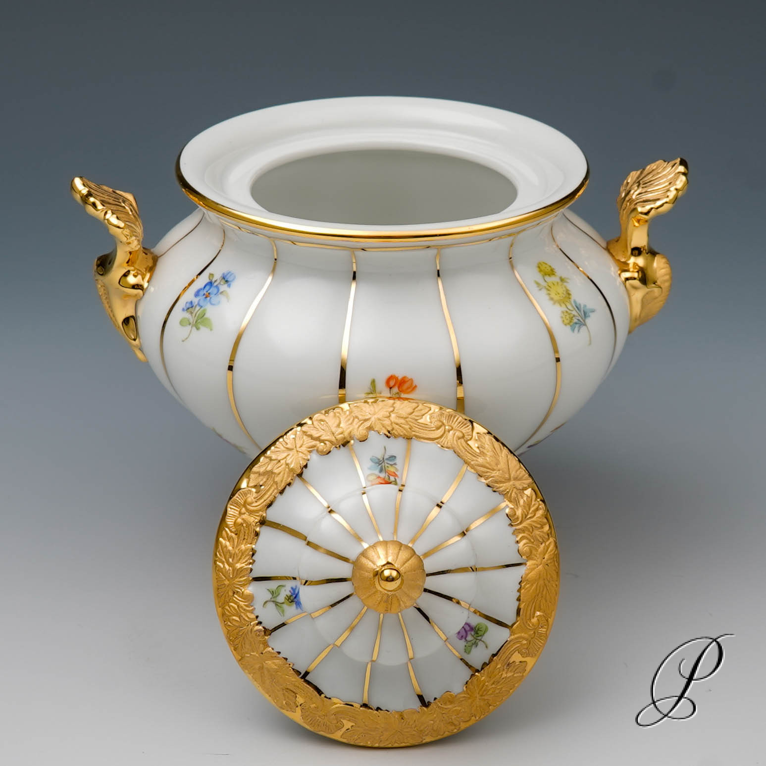 Prunkvolle Ausführung. Sehr edel. Sogenannte X-Form mit Prunkvergoldung und Streublümchen.