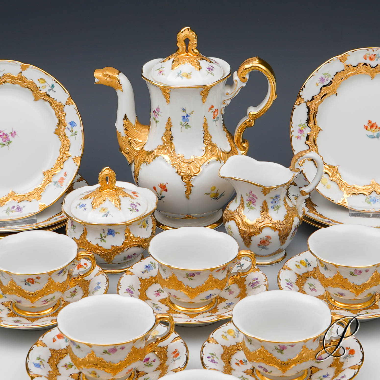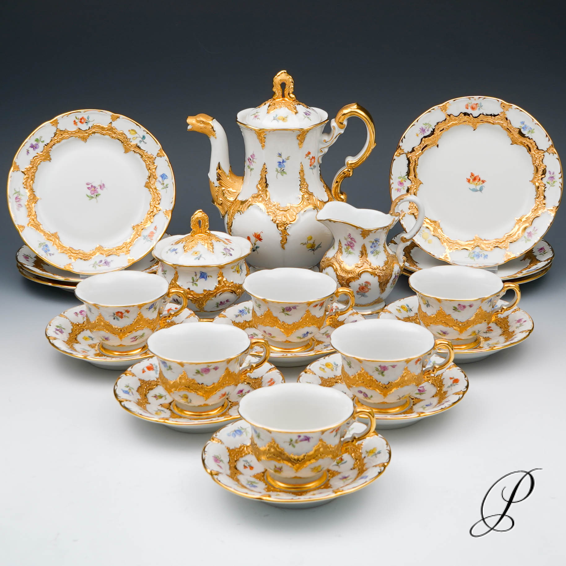 Hier biete ich Ihnen ein Prunk – Mokkaservice aus Meissner Porzellan an.