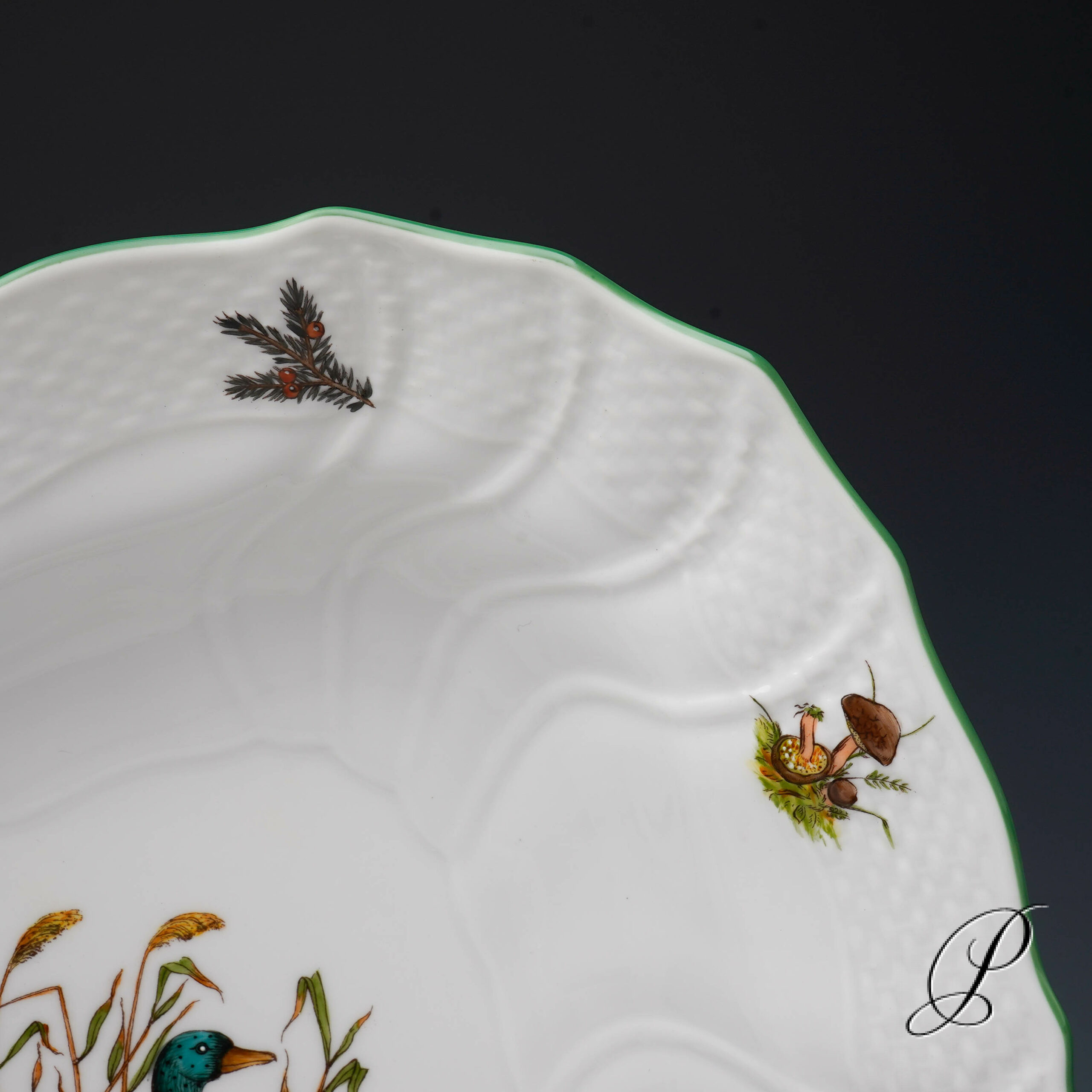 Dekor: „CHTM Hunter Trophies“ – Jagdservice mit Wildmalerei. Wandungen mit grünen Rändern, bunt gemalten Wildenten, Fasanen, Rebhühner u. a. sowie Wacholderzweige, Pilze, Kapernzweige und weitere.