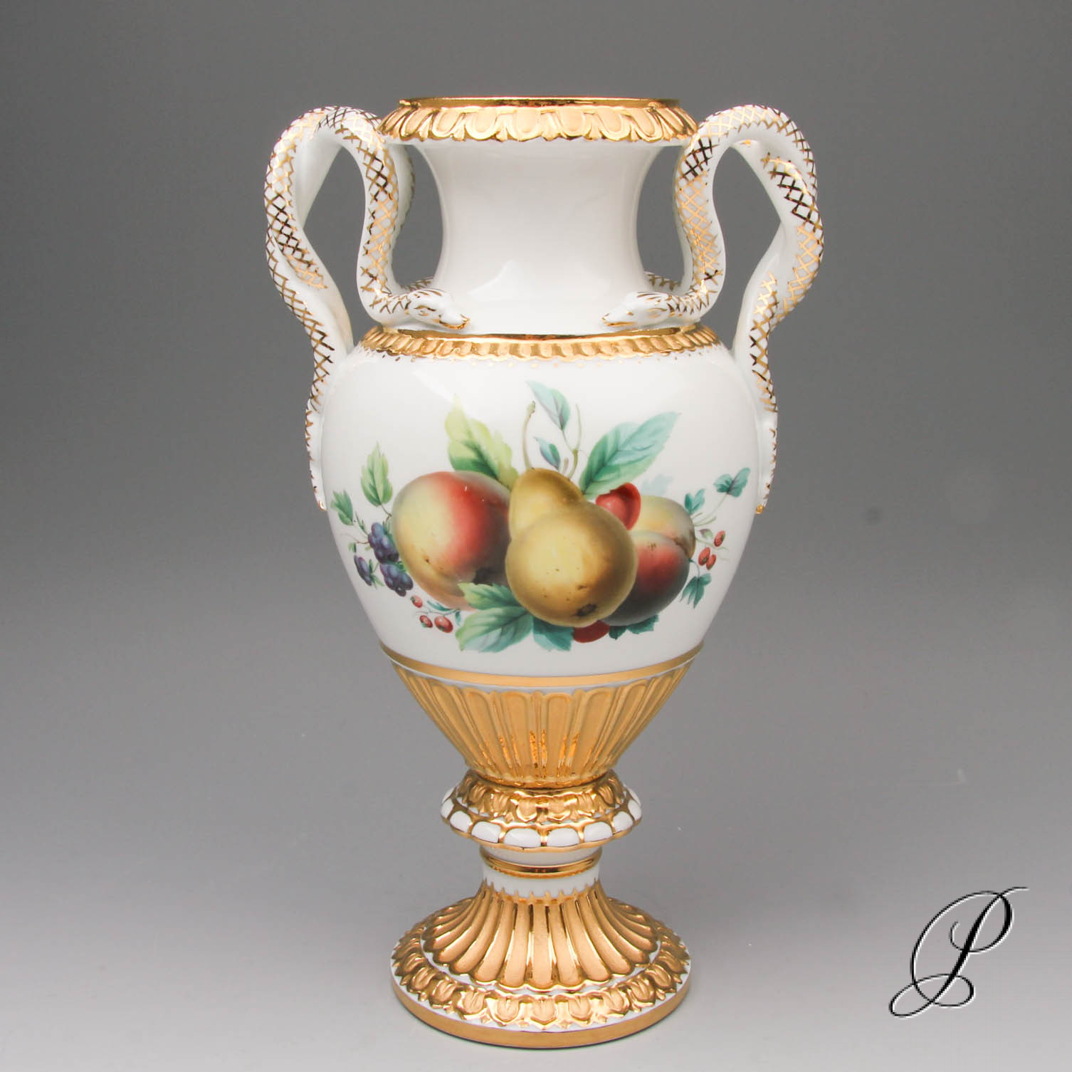 Vase Meissen,Schlangenhenkelvase Meissen,Obstmalerei Meissen,
