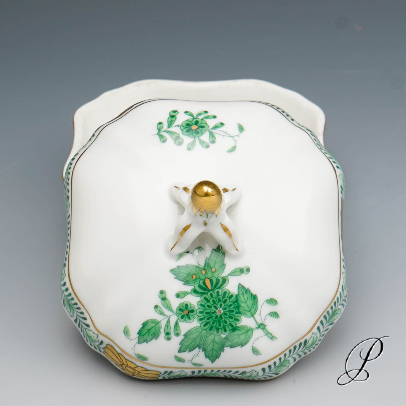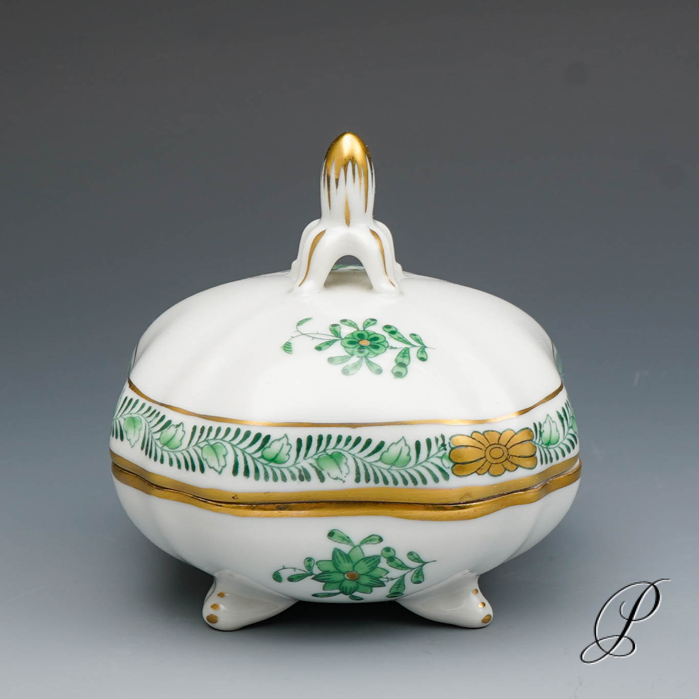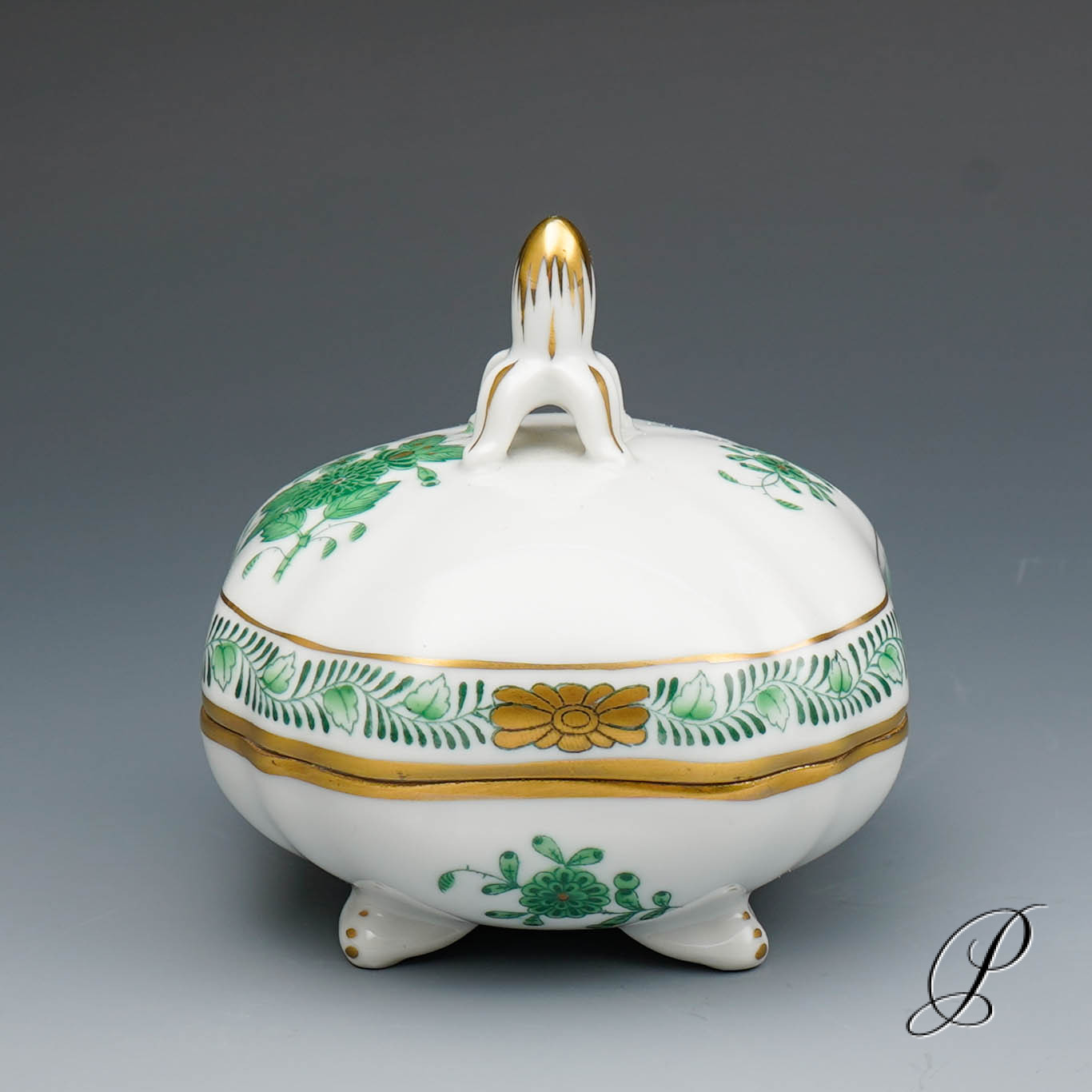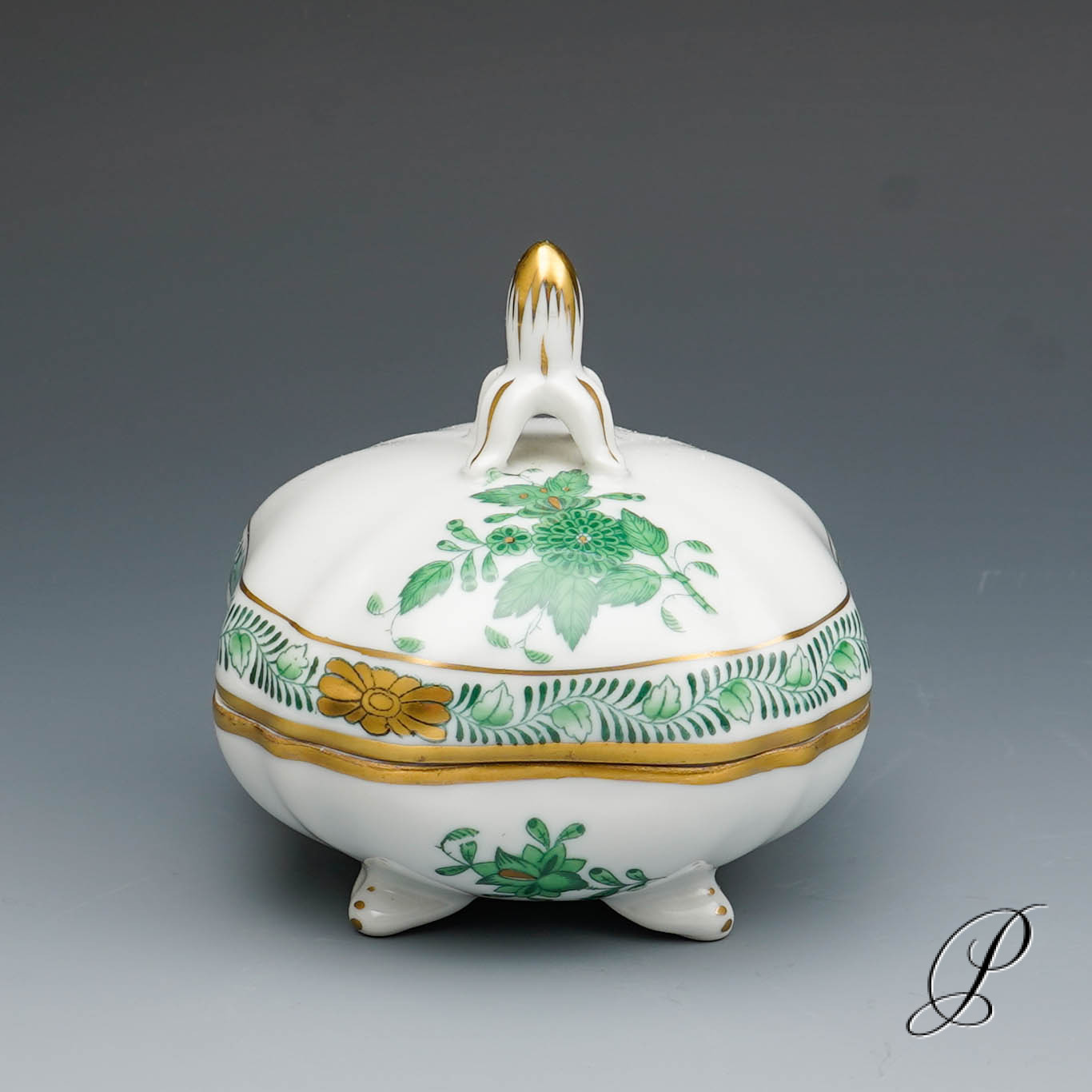 seltene Dose Herend im Dekor Apponyi grün