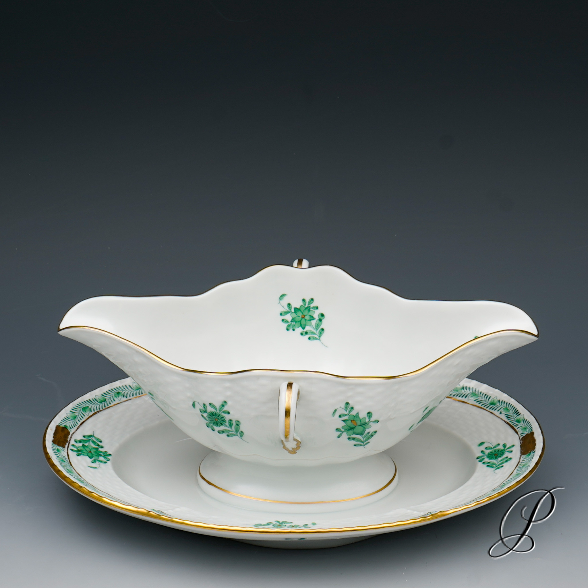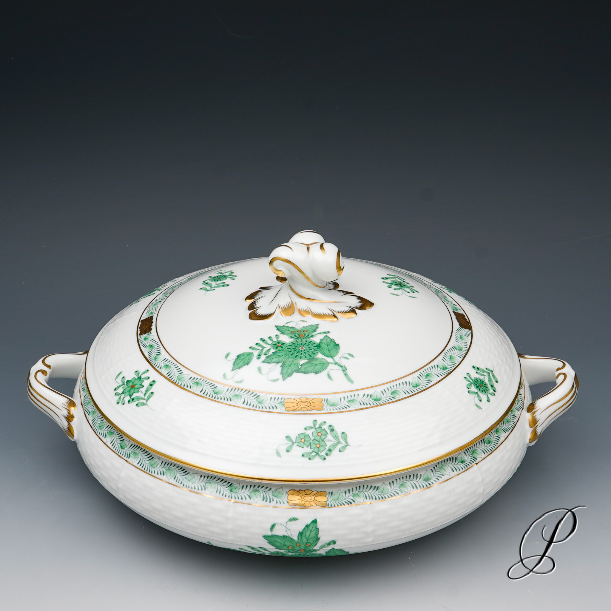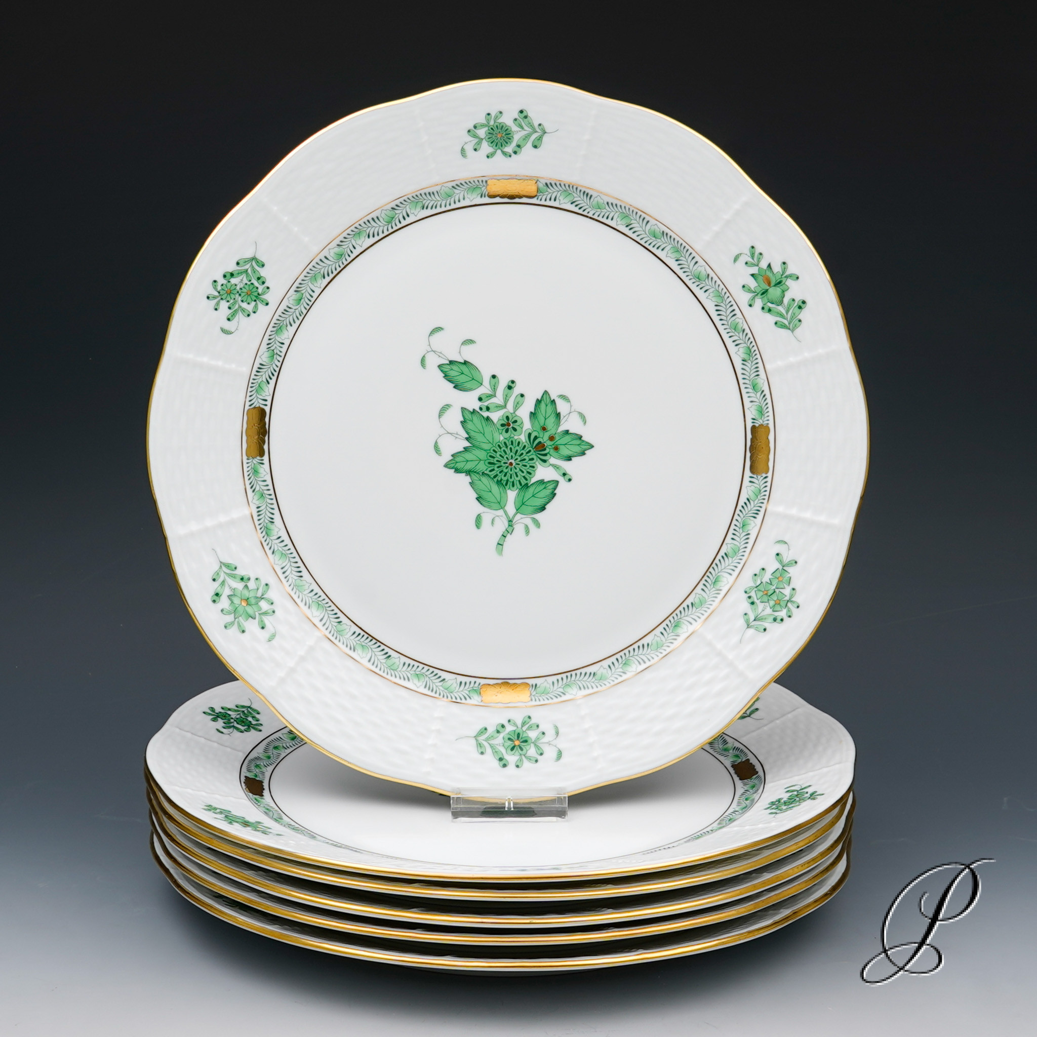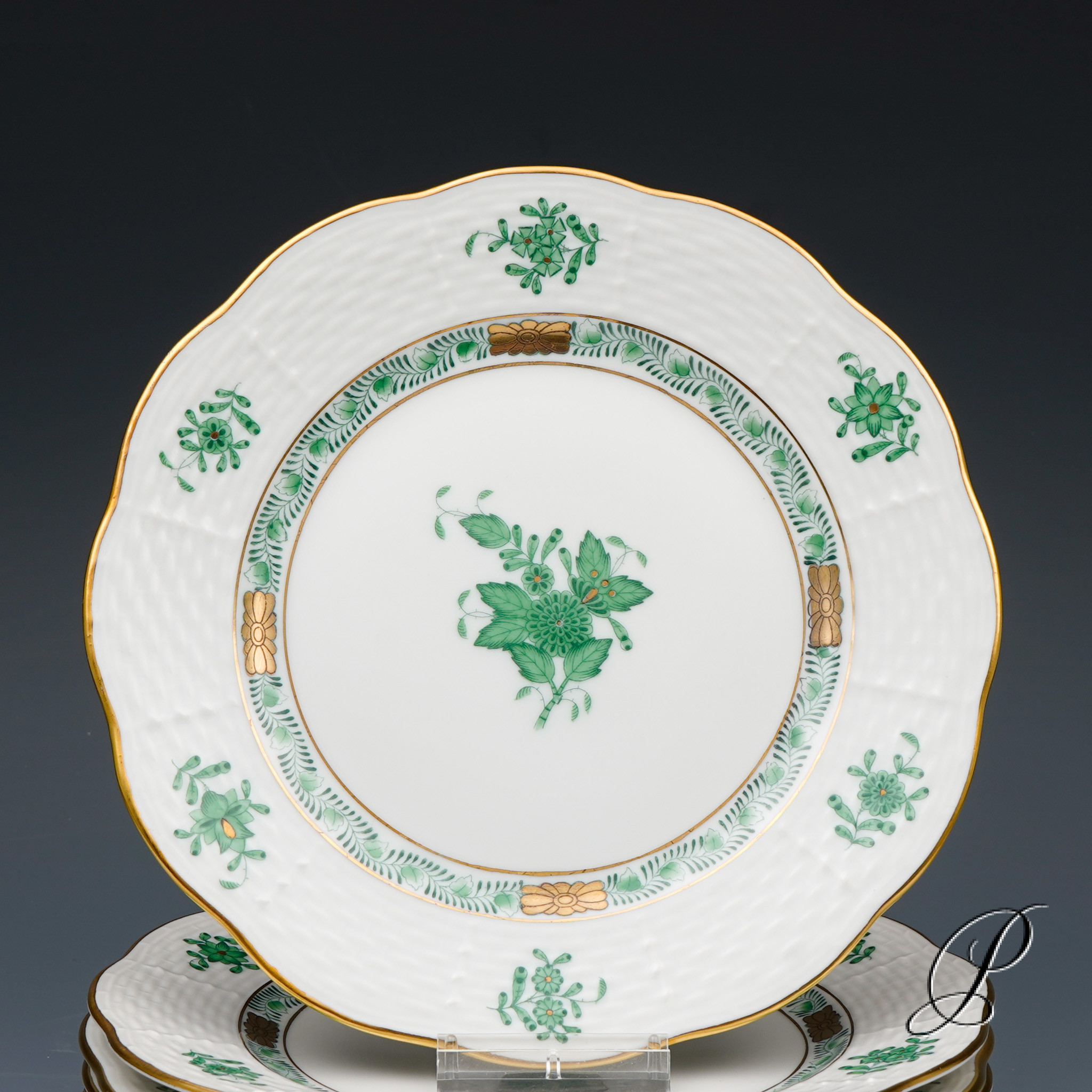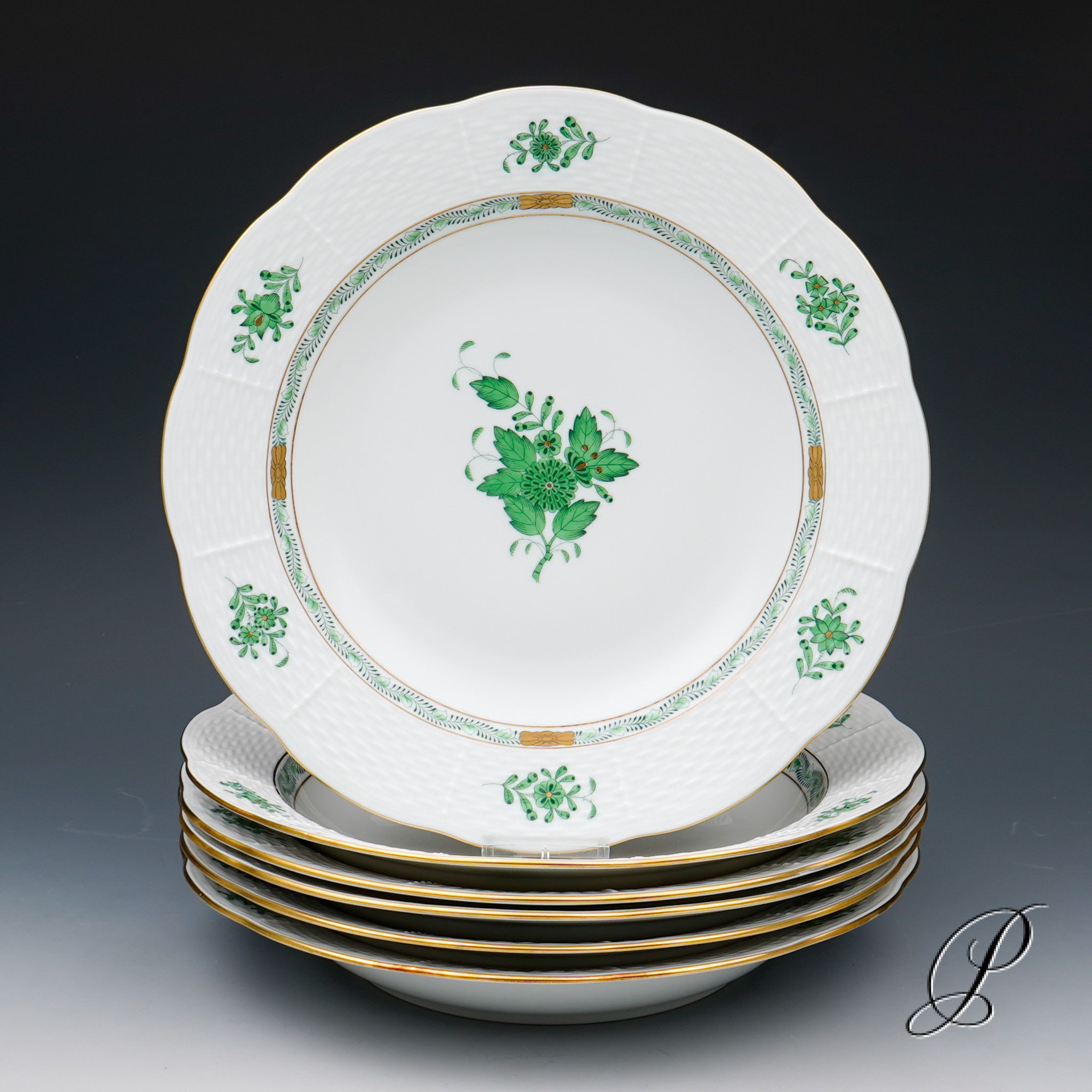 Das Dekor Apponyi gibt es in verschiedenen Farbvarianten. Der Name verbindet sich mit dem Grafen Albert Apponyi, der dieses Motiv in der Herend Manufaktur bestellte. Das Dekor wurde in Anlehnung an das fernöstliche Motiv „Indischer Blumenkorb“ entworfen. Eine stilisierte Pfingstrose in Konturmalerei welche von 6 Streumotiven und einer Girlande aus stilisierten Blättern umgeben ist.