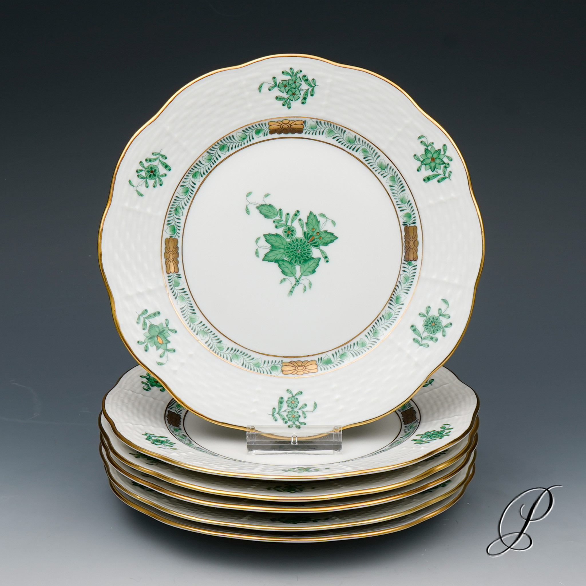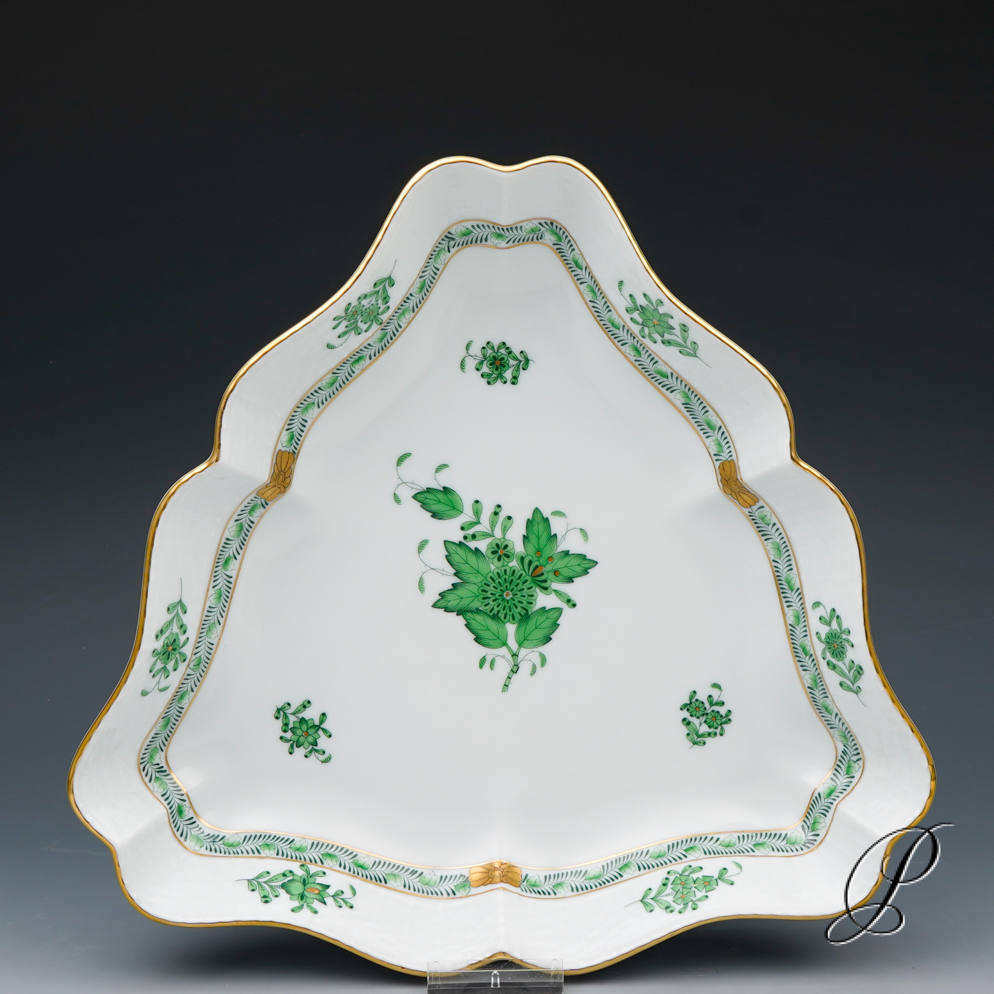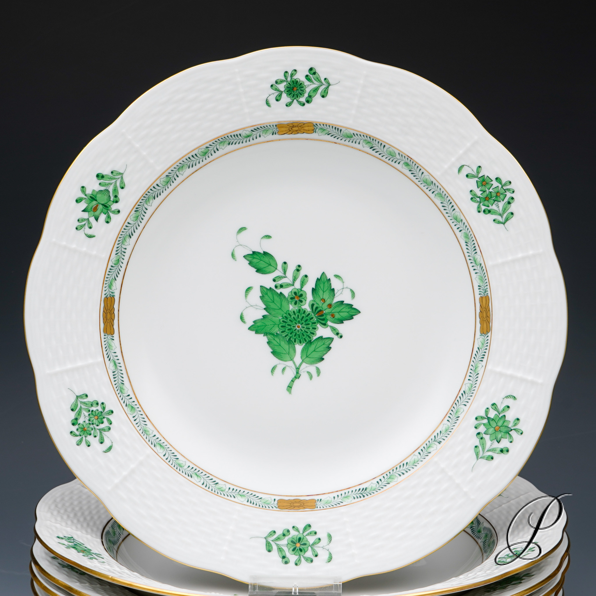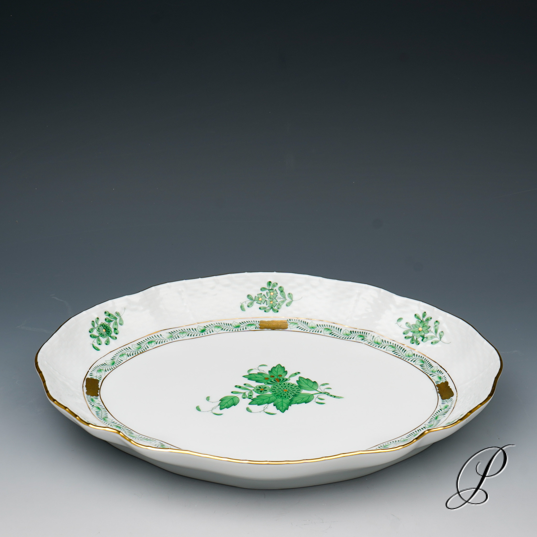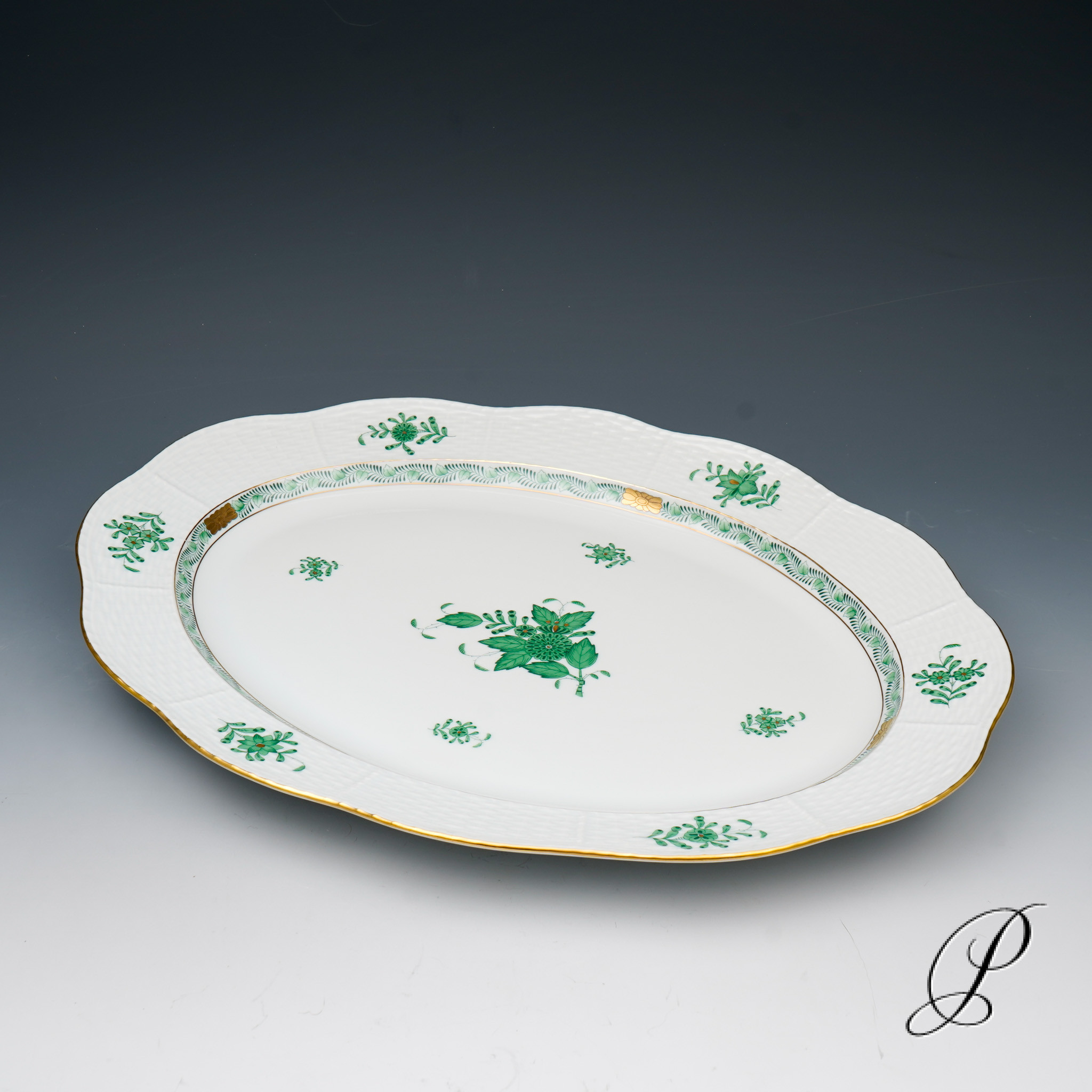 Das Dekor Apponyi gibt es in verschiedenen Farbvarianten. Der Name verbindet sich mit dem Grafen Albert Apponyi, der dieses Motiv in der Herend Manufaktur bestellte. Das Dekor wurde in Anlehnung an das fernöstliche Motiv „Indischer Blumenkorb“ entworfen. Eine stilisierte Pfingstrose in Konturmalerei welche von 6 Streumotiven und einer Girlande aus stilisierten Blättern umgeben ist.