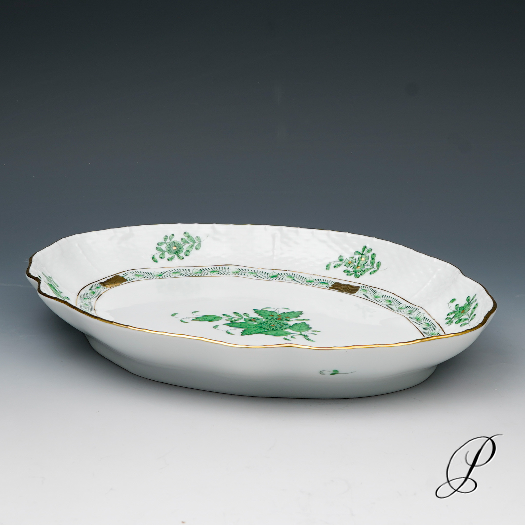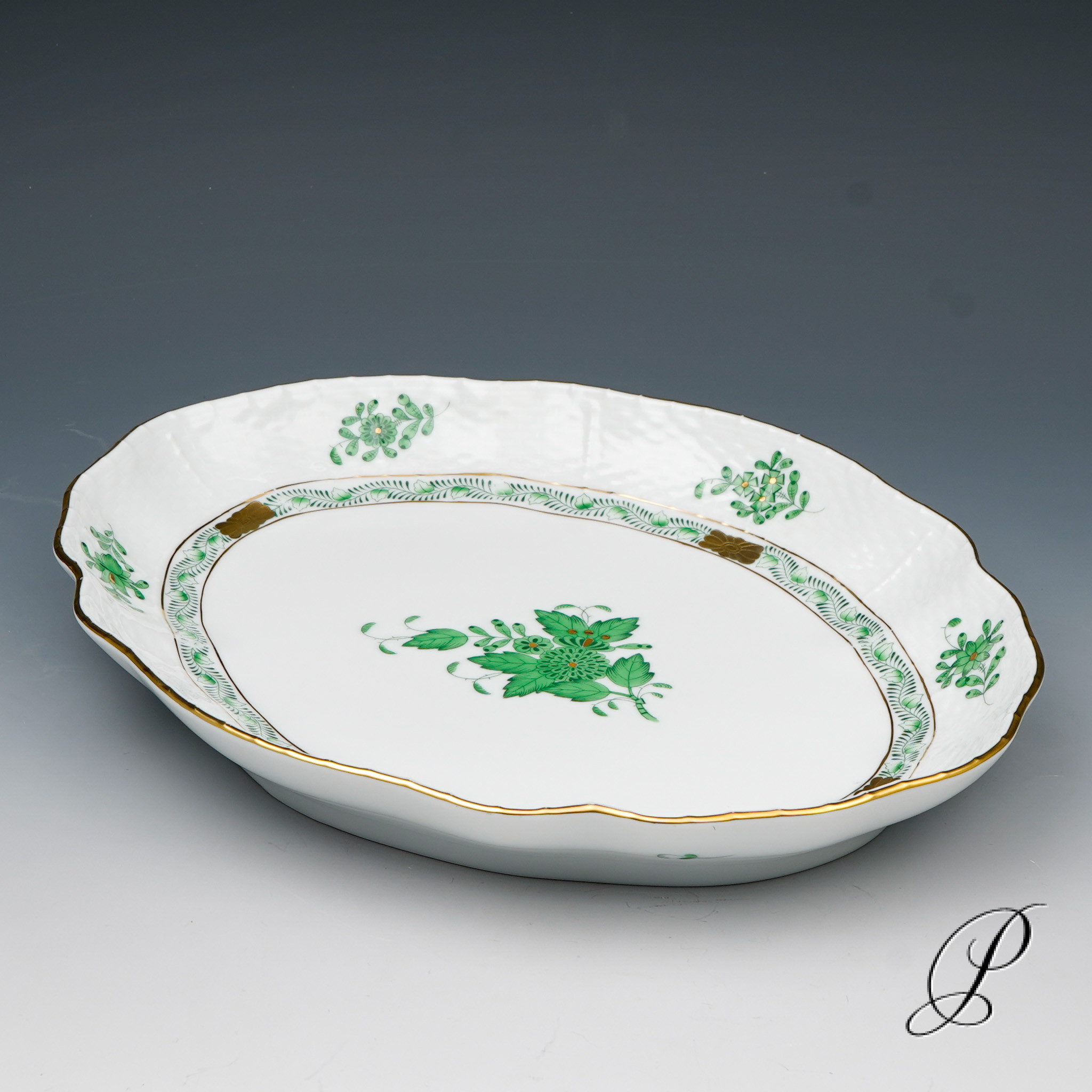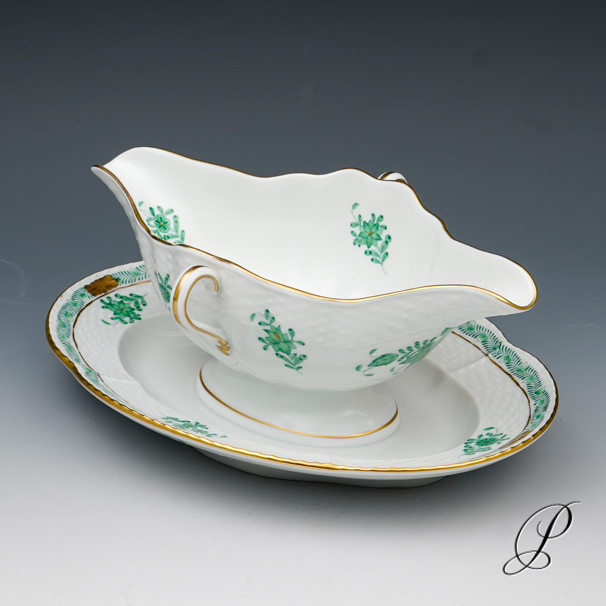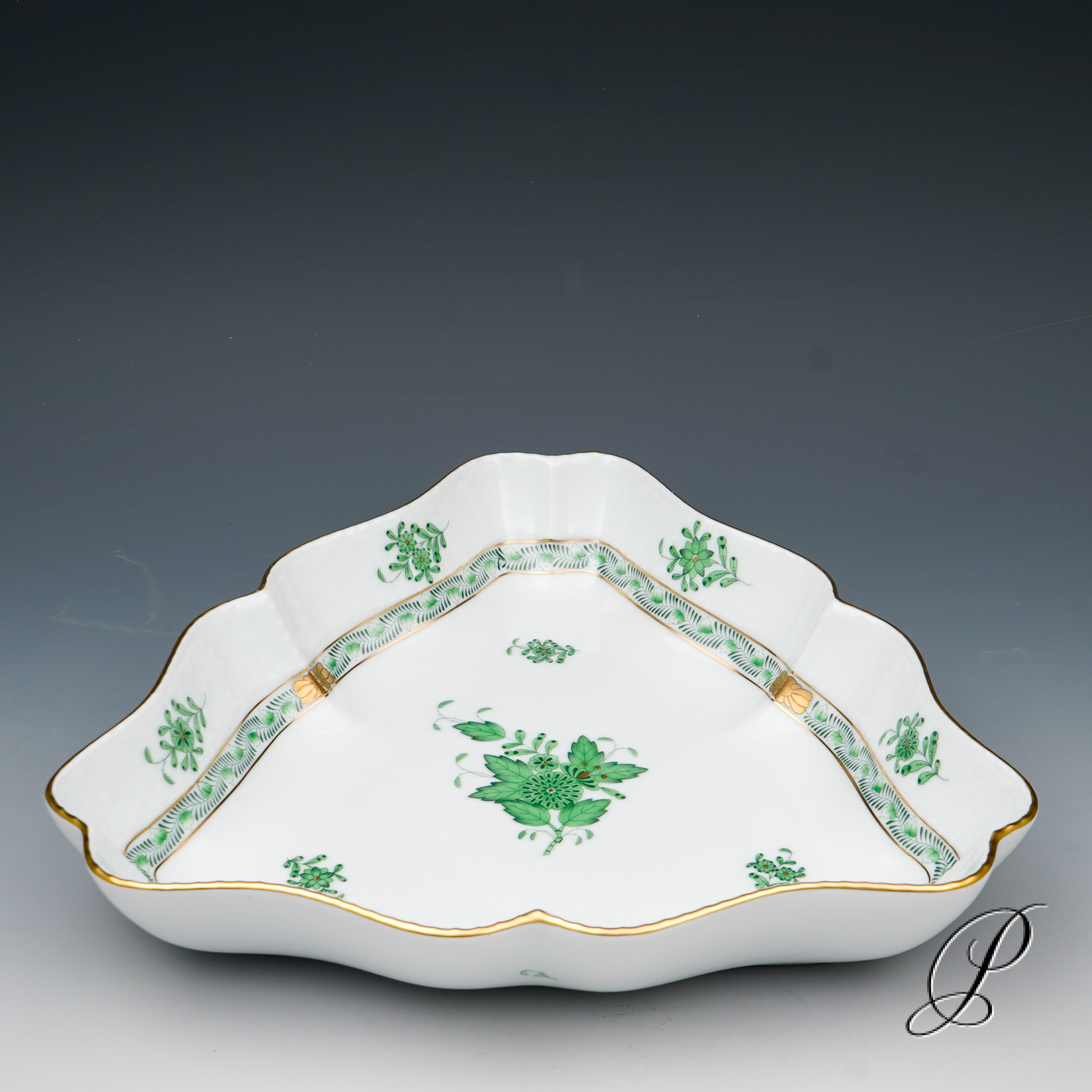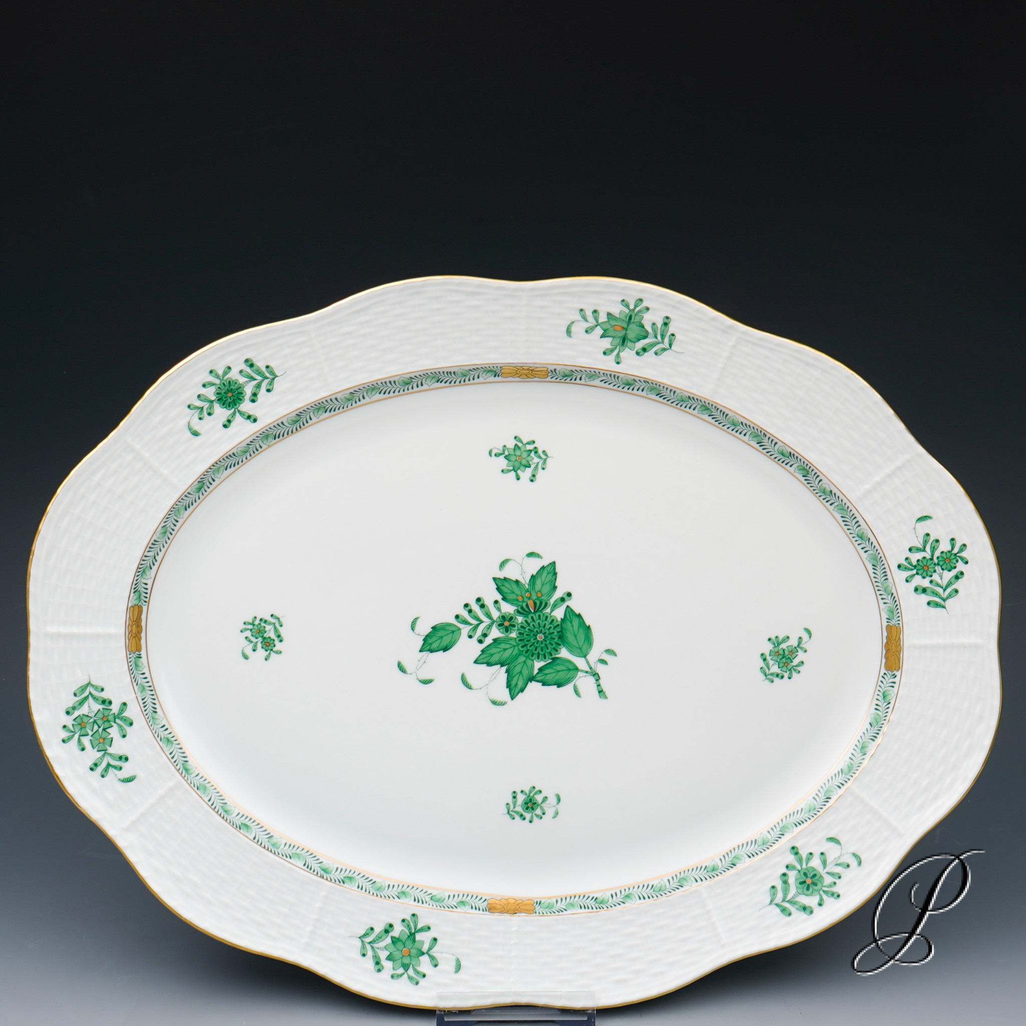 Das Dekor Apponyi gibt es in verschiedenen Farbvarianten. Der Name verbindet sich mit dem Grafen Albert Apponyi, der dieses Motiv in der Herend Manufaktur bestellte. Das Dekor wurde in Anlehnung an das fernöstliche Motiv „Indischer Blumenkorb“ entworfen. Eine stilisierte Pfingstrose in Konturmalerei welche von 6 Streumotiven und einer Girlande aus stilisierten Blättern umgeben ist.