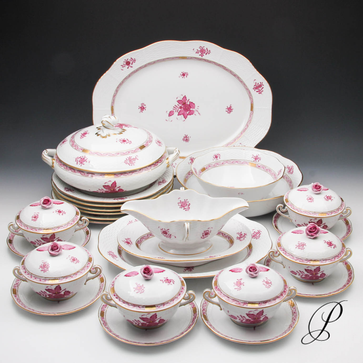Angeboten wird ein Speiseservice aus Herend Porzellan für 6 Personen.