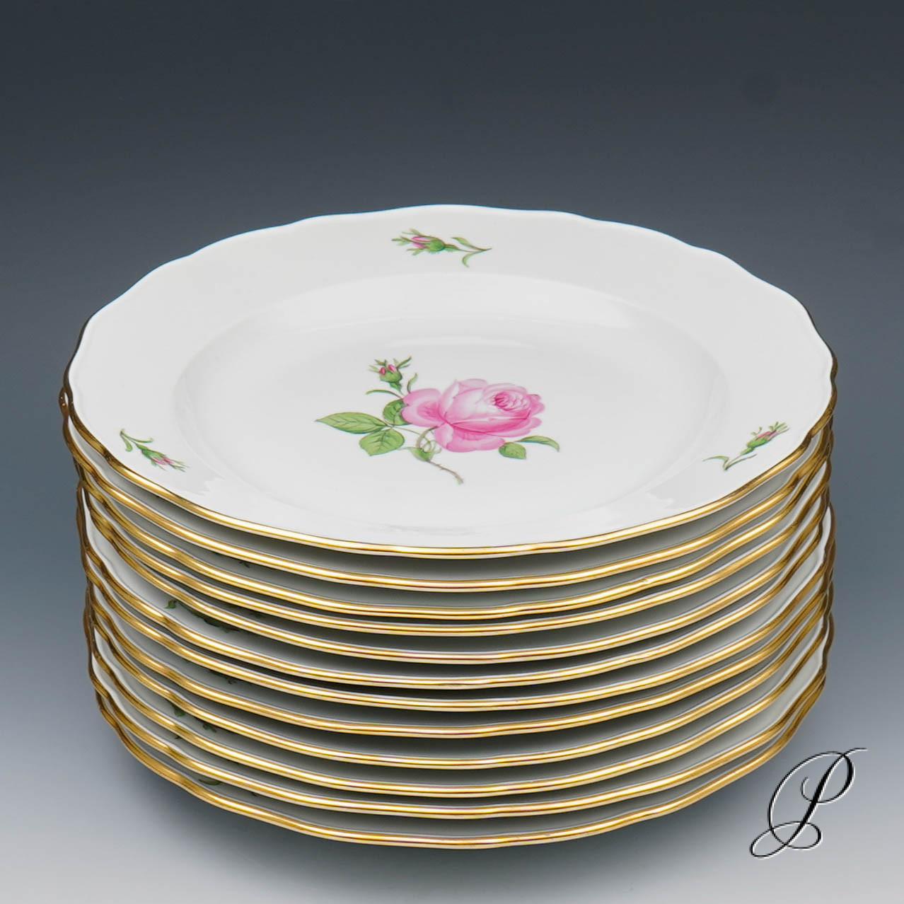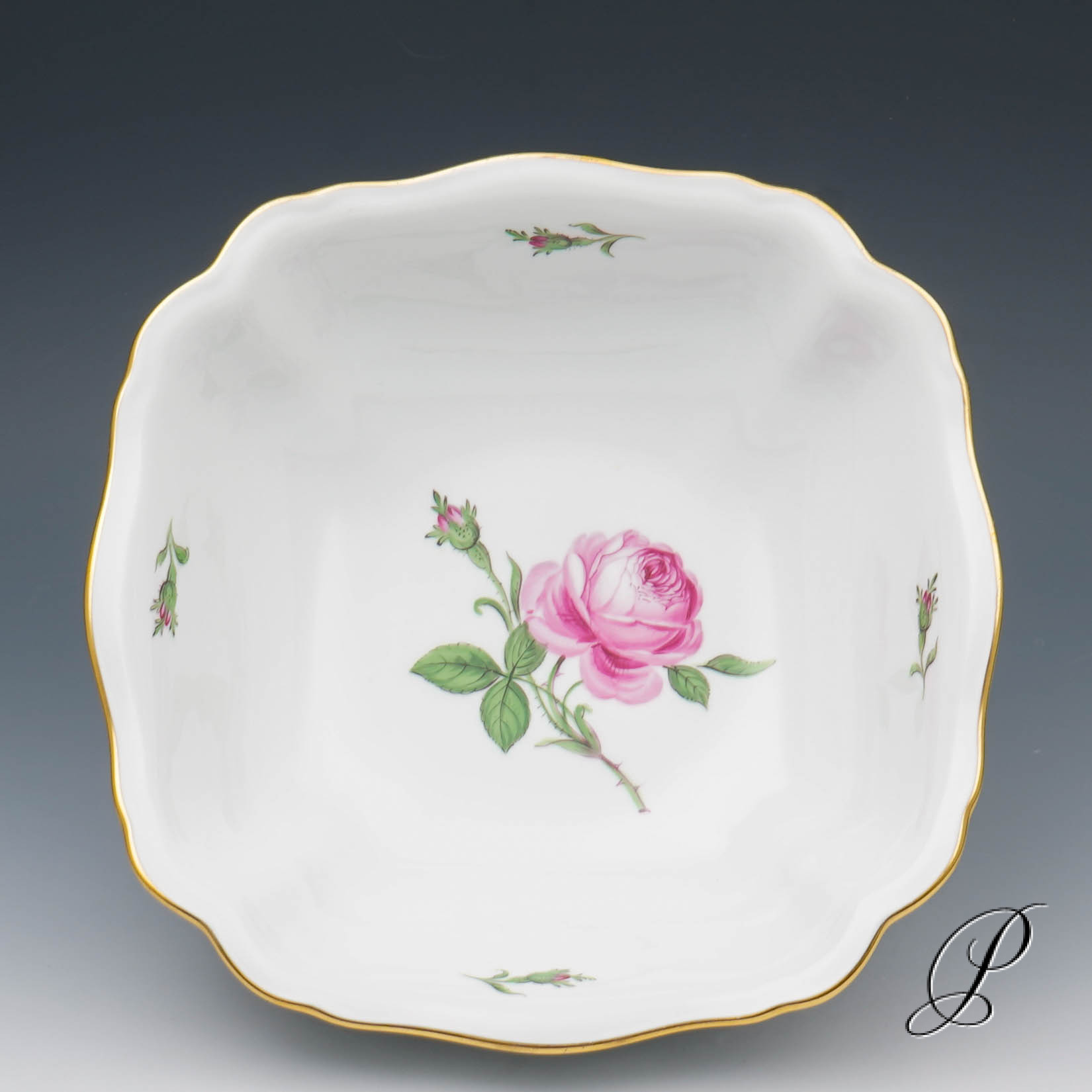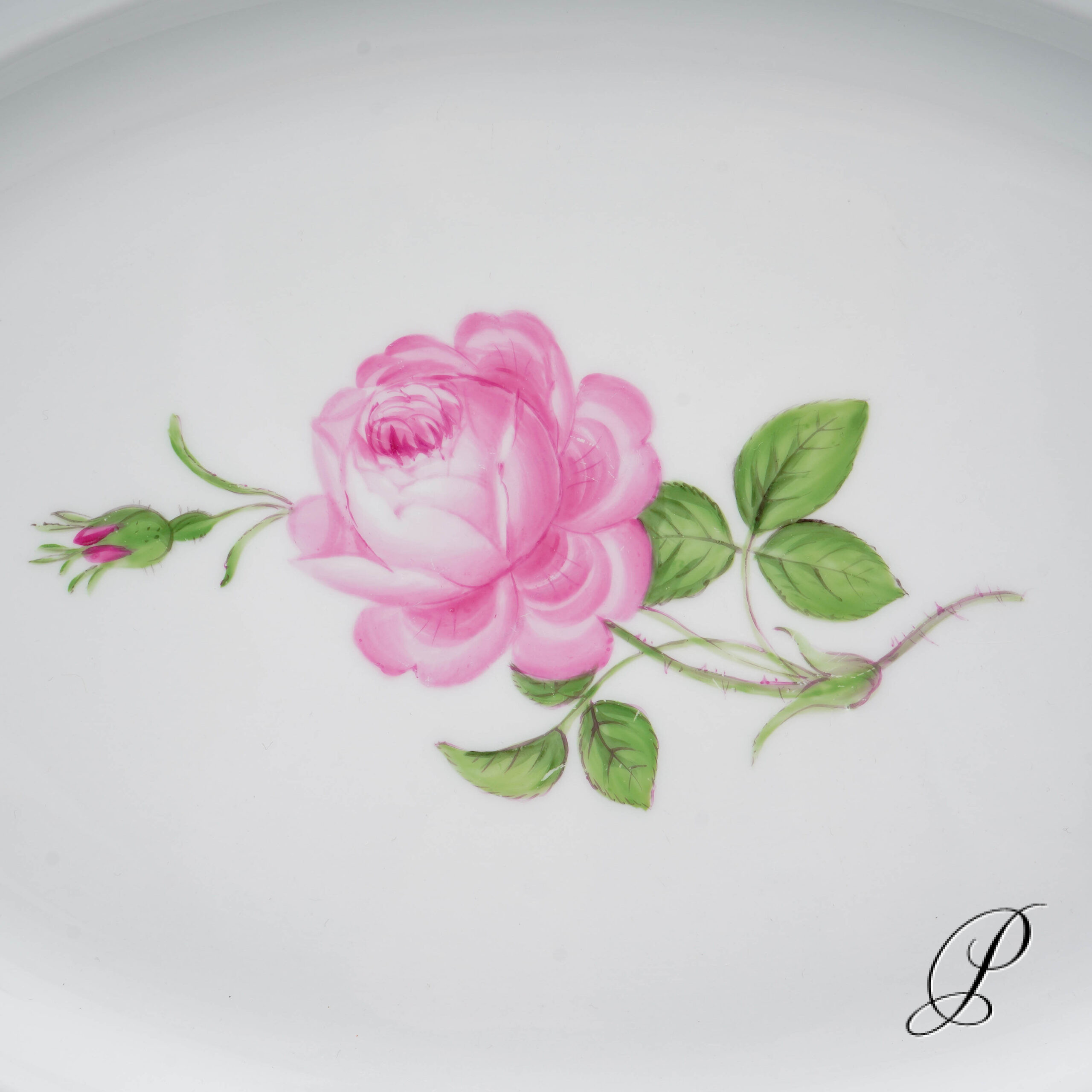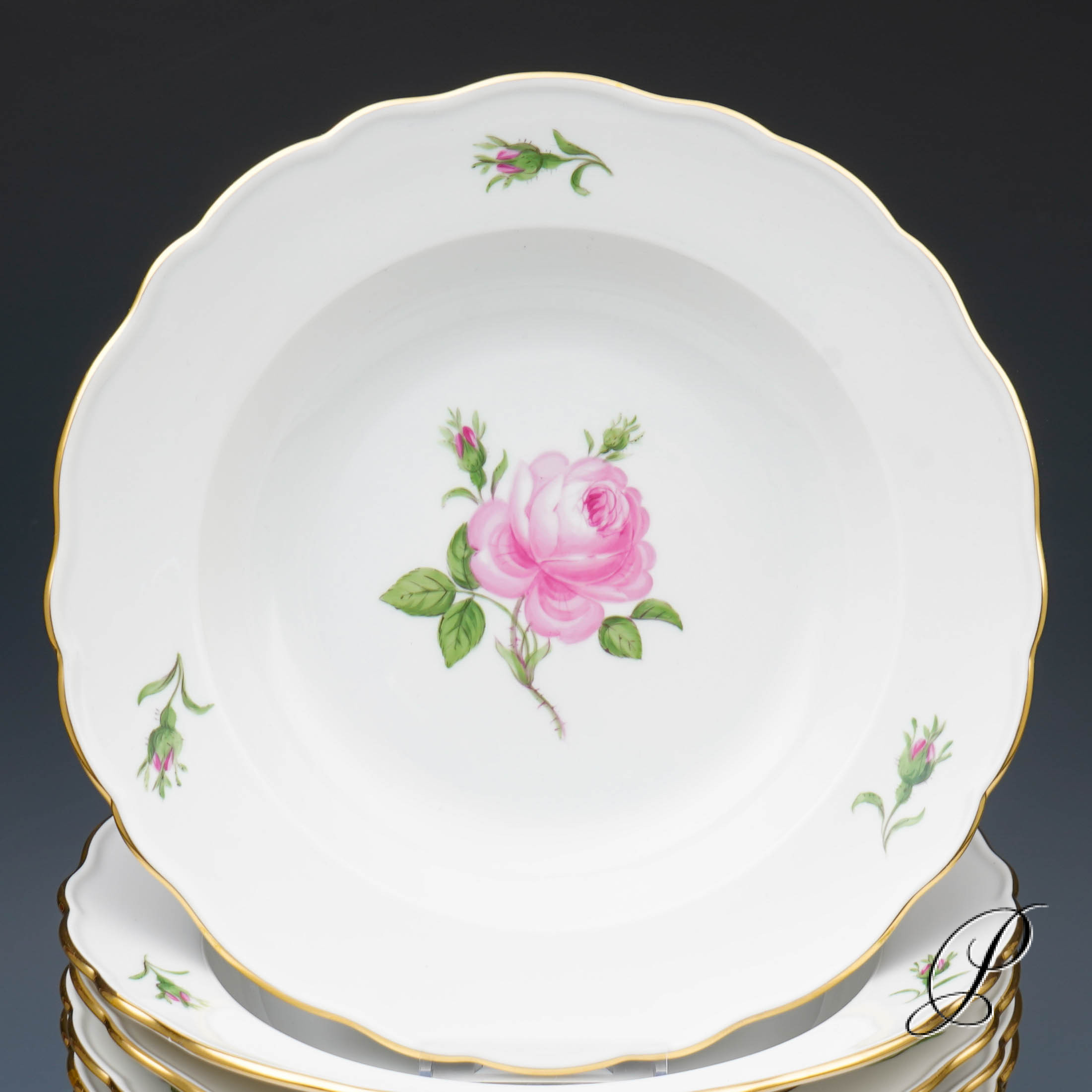 Dekor: Rote Rose mit Randvergoldung.