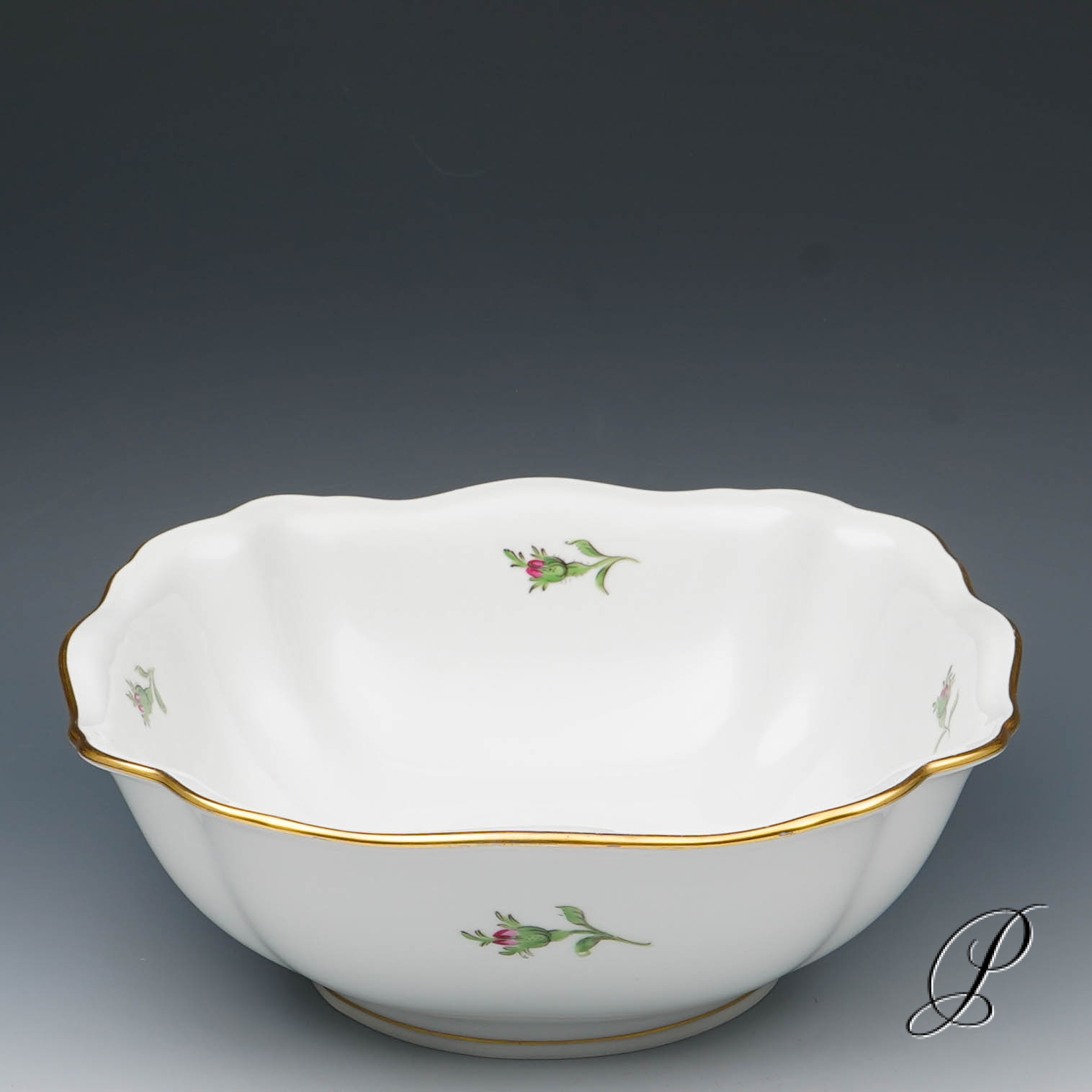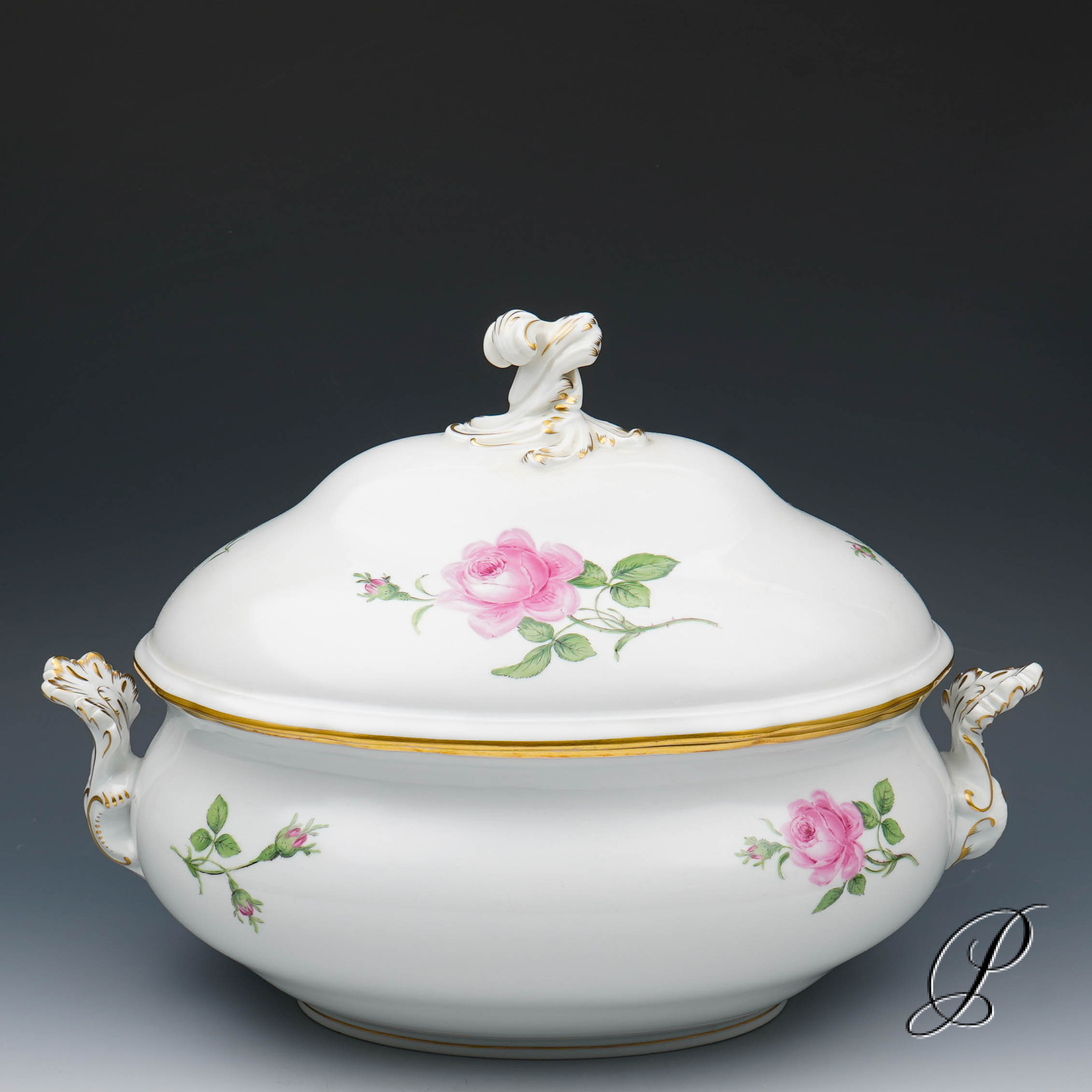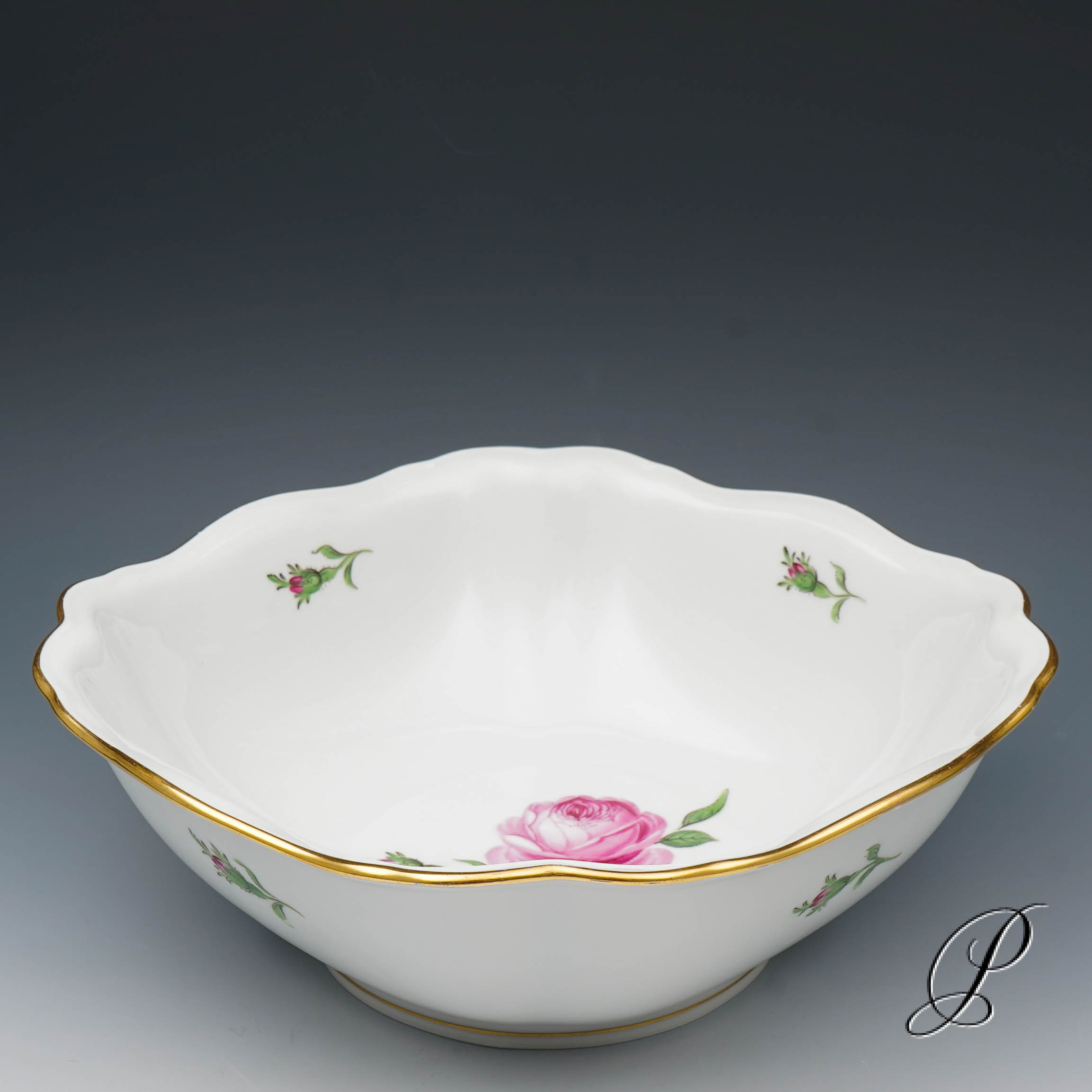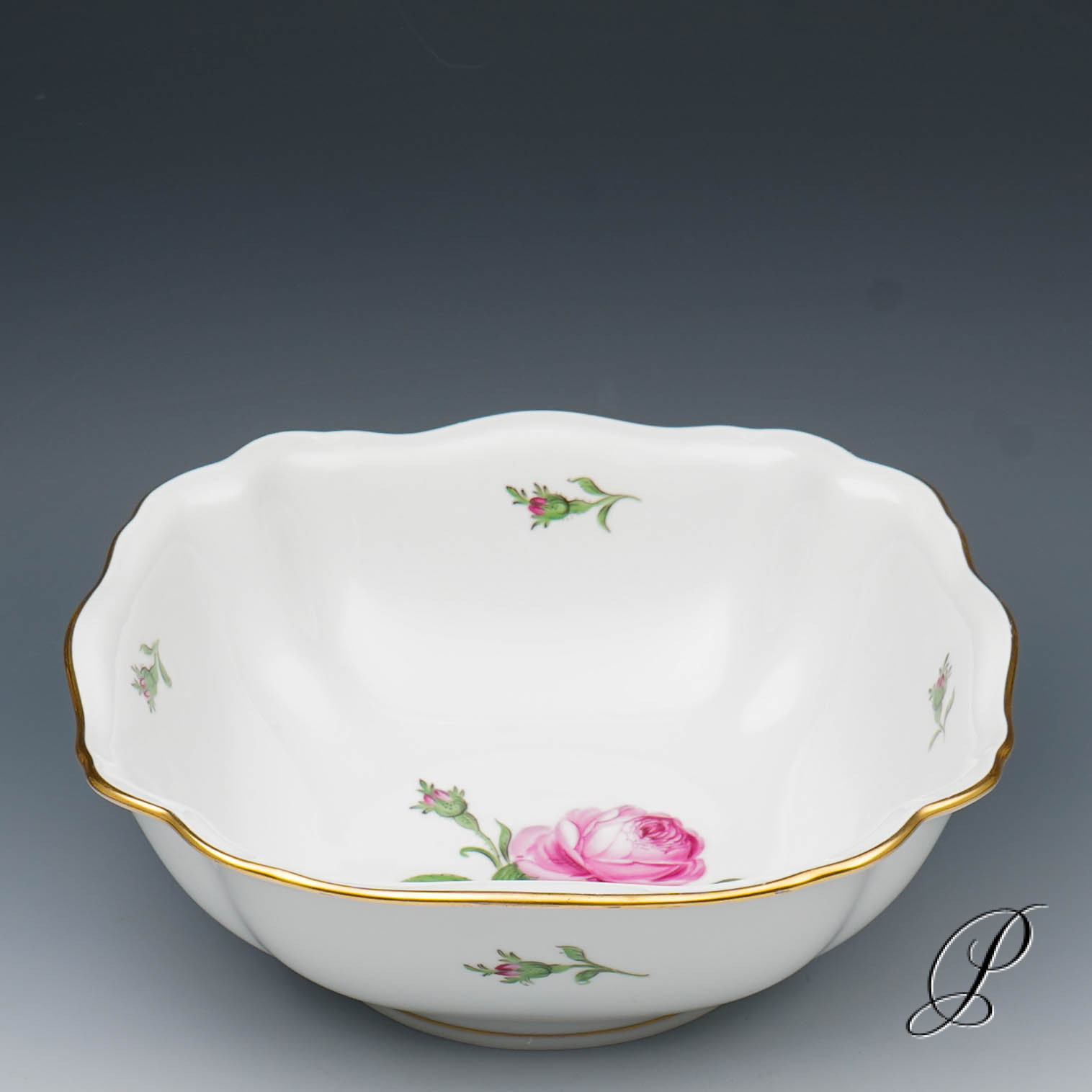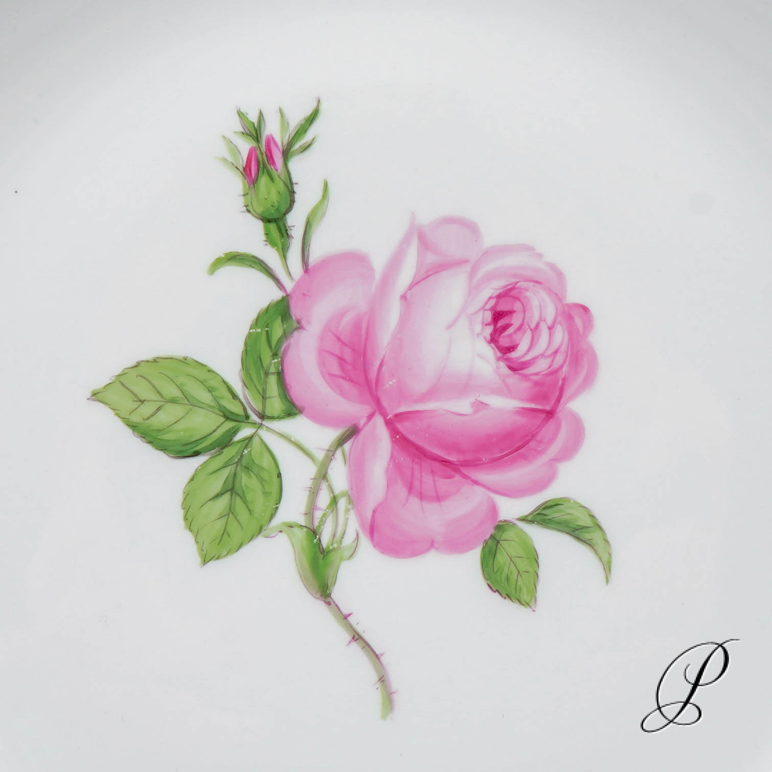 Dekor: Rote Rose mit Randvergoldung.