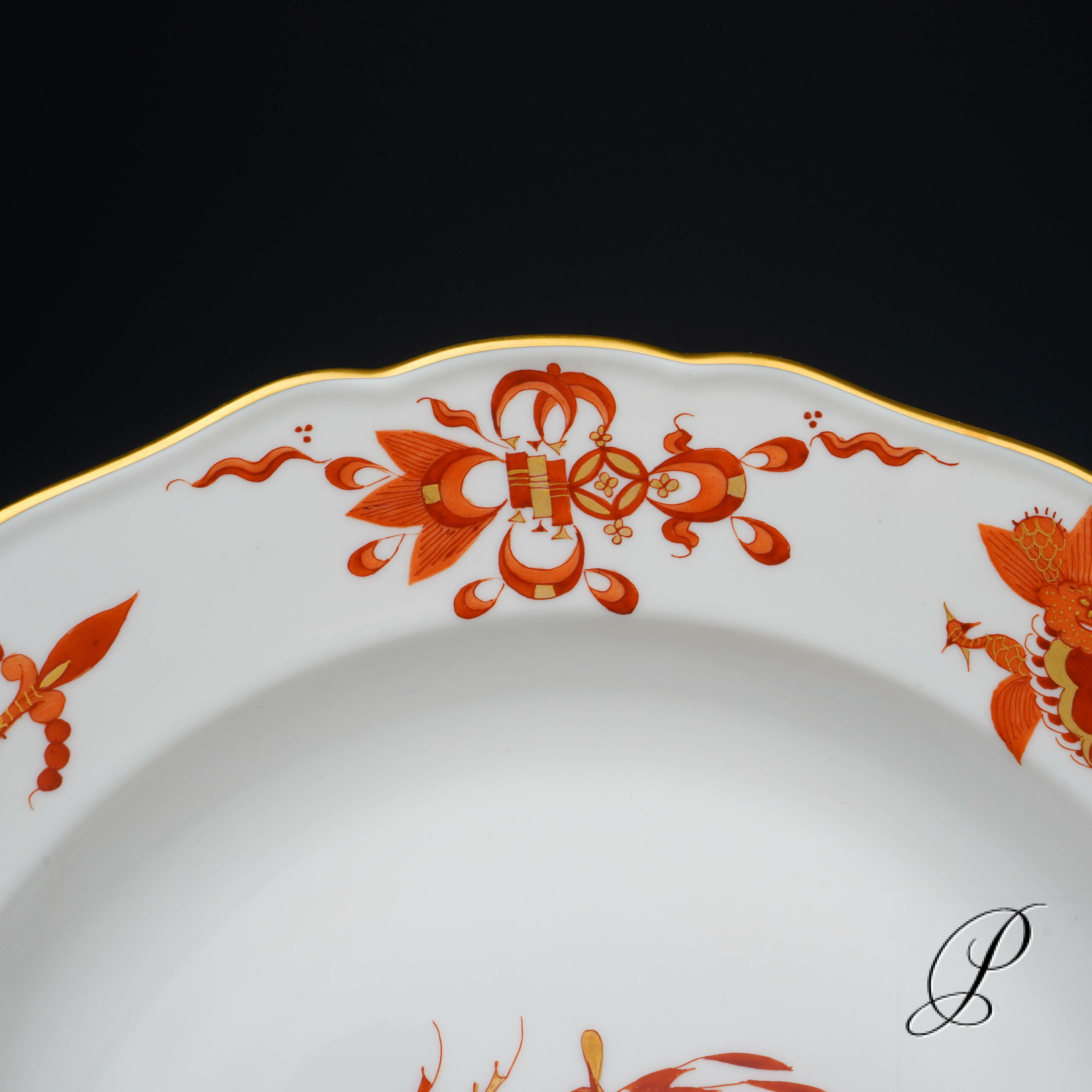 Dekor: Reicher Drache rot, goldschattiert mit Goldrand.