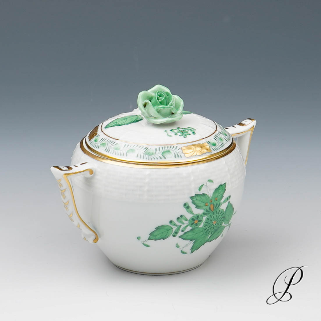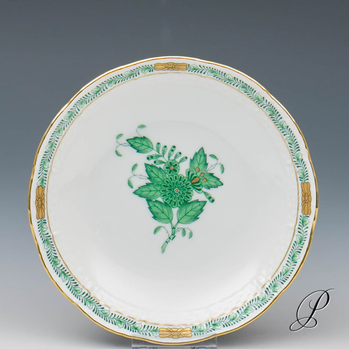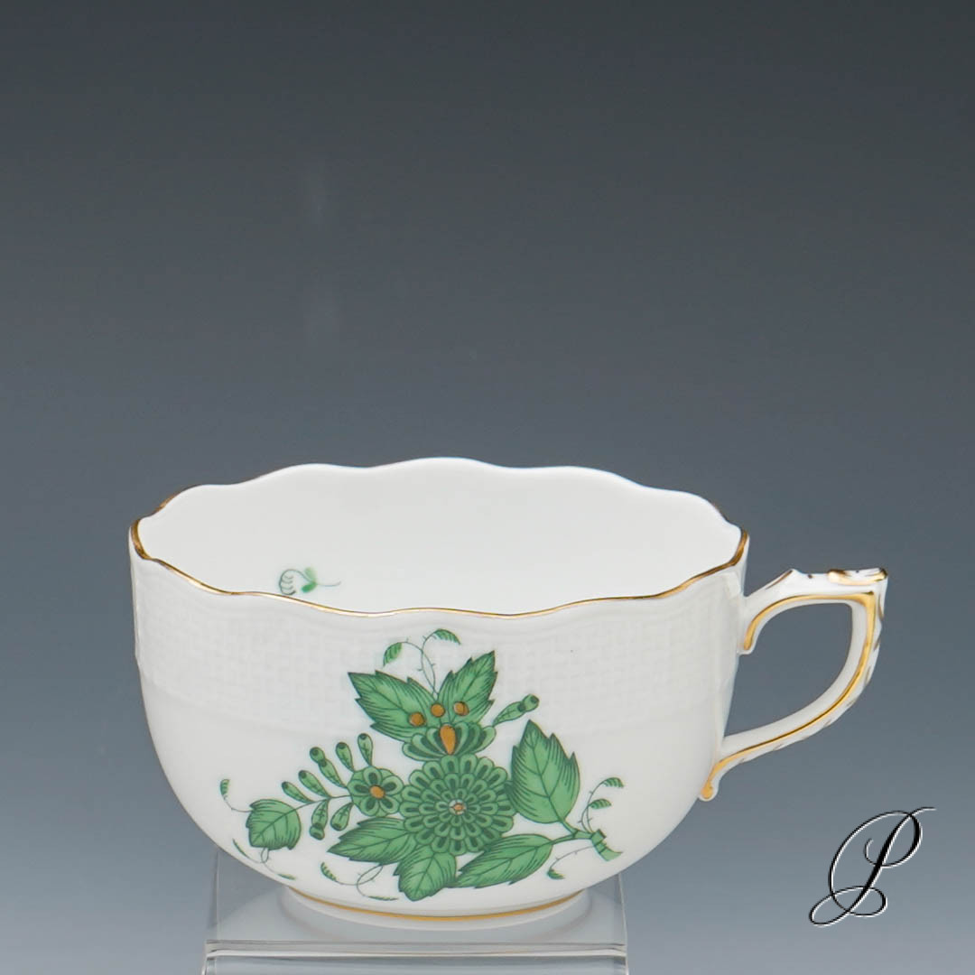 Das Dekor Apponyi gibt es in verschiedenen Farbvarianten. Der Name verbindet sich mit dem Grafen Albert Apponyi, der dieses Motiv in der Herend Manufaktur bestellte. Das Dekor wurde in Anlehnung an das fernöstliche Motiv „Indischer Blumenkorb“ entworfen. Eine stilisierte Pfingstrose in Konturmalerei welche von 6 Streumotiven und einer Girlande aus stilisierten Blättern umgeben ist.