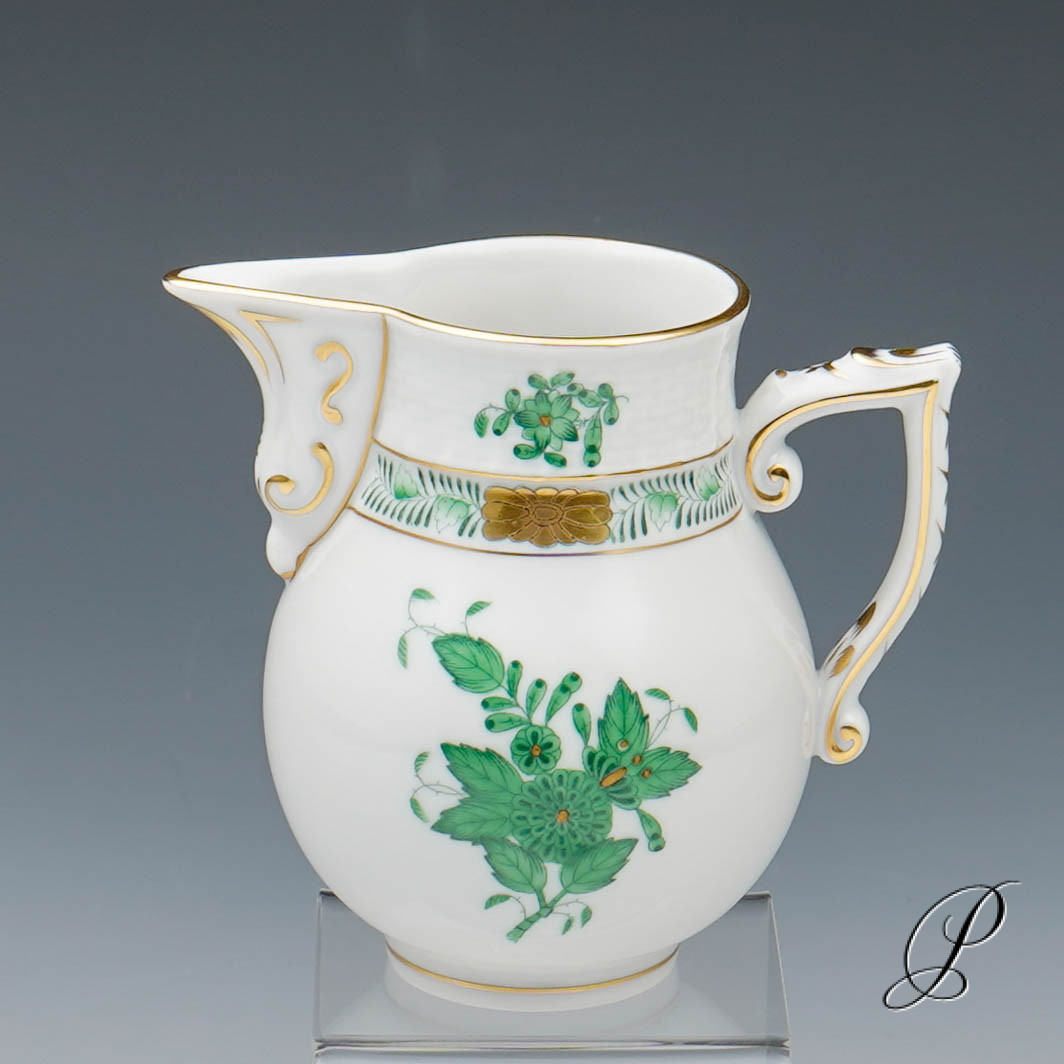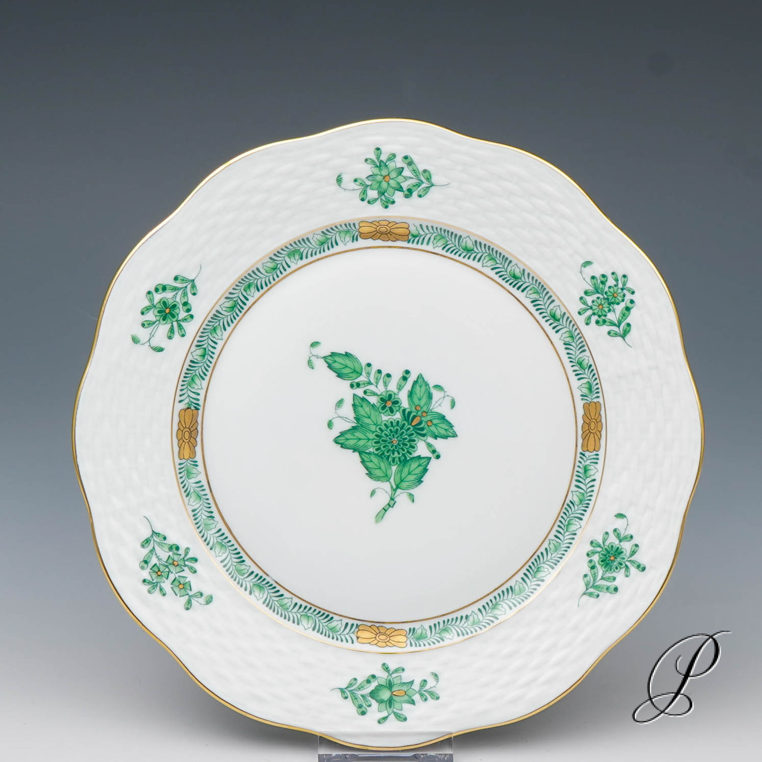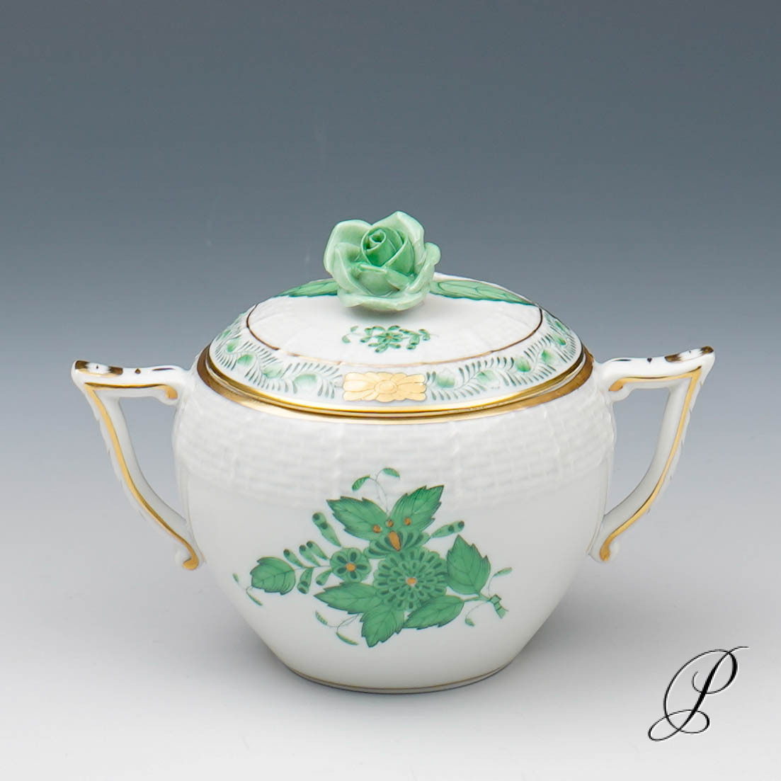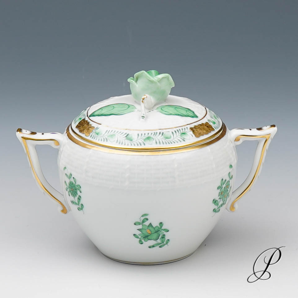 Das Dekor Apponyi gibt es in verschiedenen Farbvarianten. Der Name verbindet sich mit dem Grafen Albert Apponyi, der dieses Motiv in der Herend Manufaktur bestellte. Das Dekor wurde in Anlehnung an das fernöstliche Motiv „Indischer Blumenkorb“ entworfen. Eine stilisierte Pfingstrose in Konturmalerei welche von 6 Streumotiven und einer Girlande aus stilisierten Blättern umgeben ist.