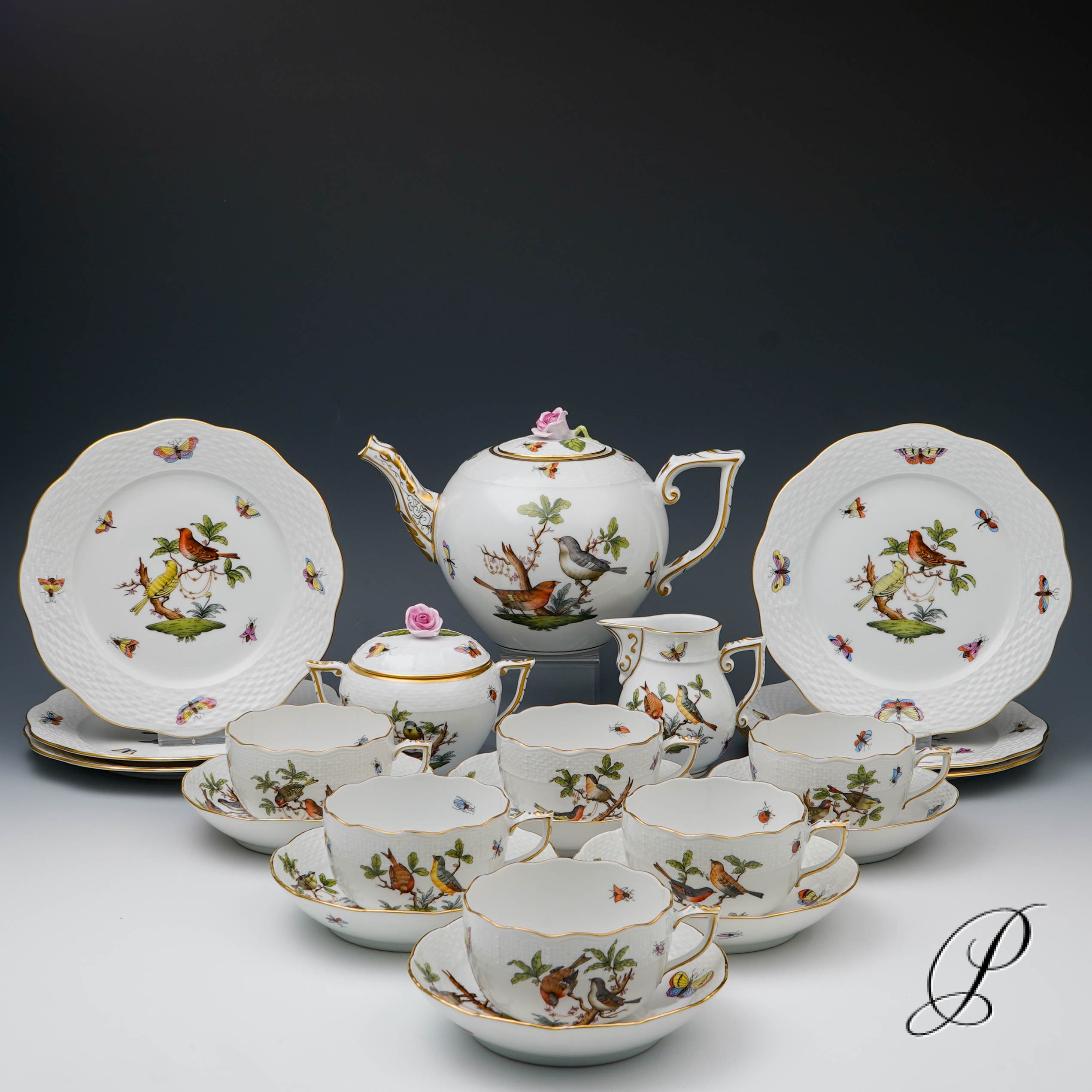 Teeservice Herend im Dekor Rothschild für 6 Personen