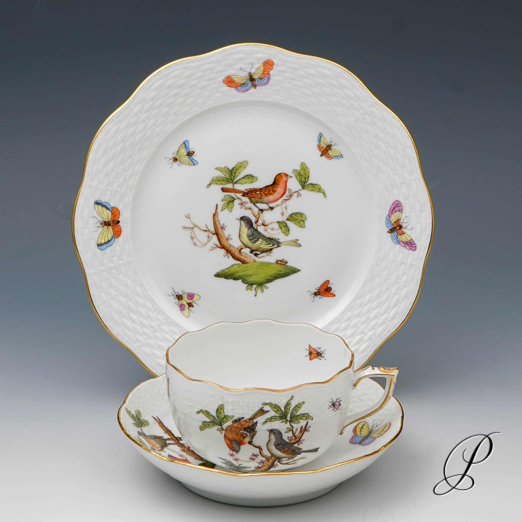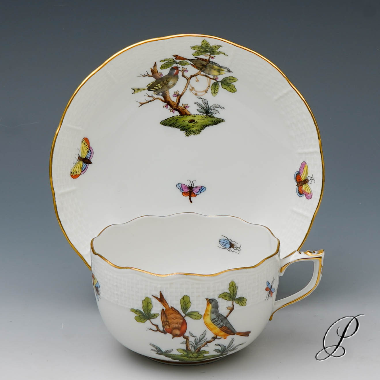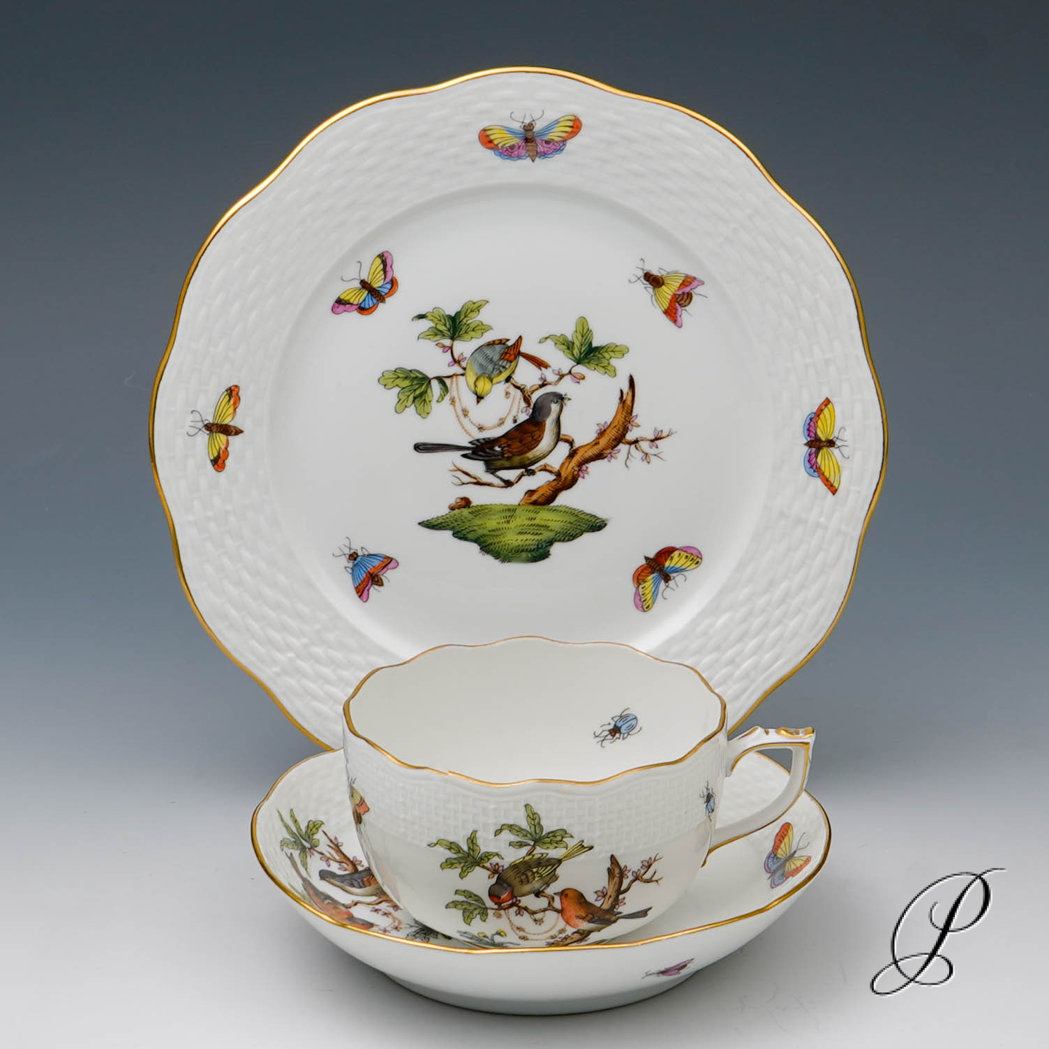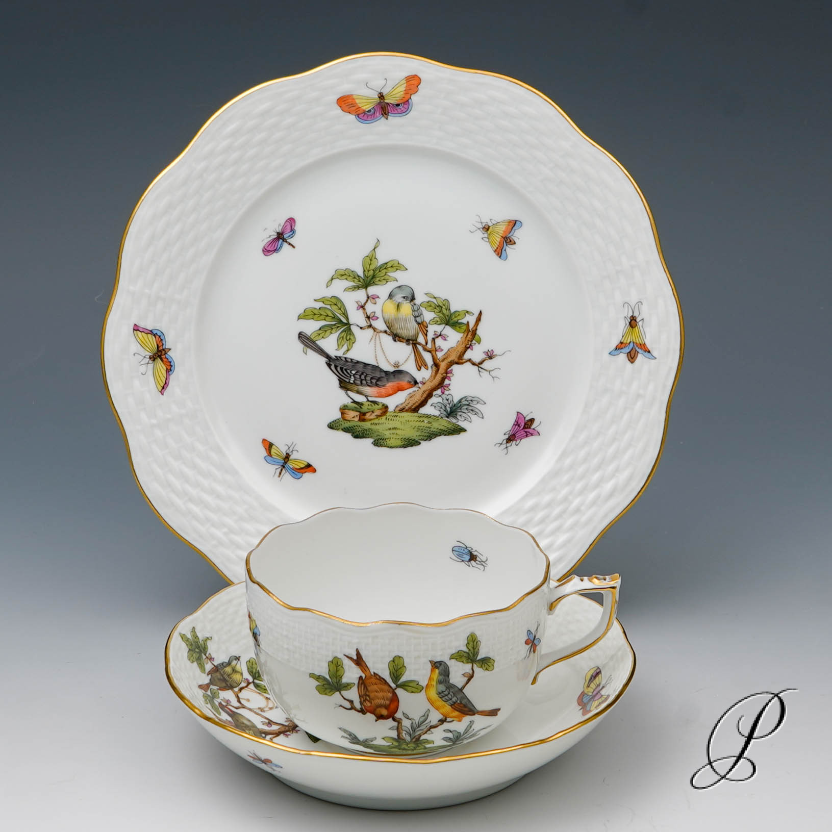Das Dekor Rothschild strahlt Glück und Harmonie aus. Es beschwört die Stimmung des Frühlingserwachens der Natur herauf. Das Dekor ist mit naturalistisch und farbenprächtig gefiederten Vogelpaaren und Schmetterlingen verziert.