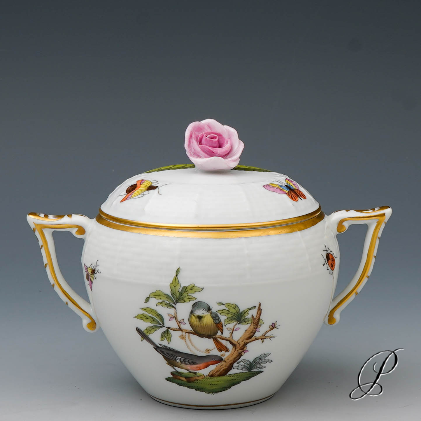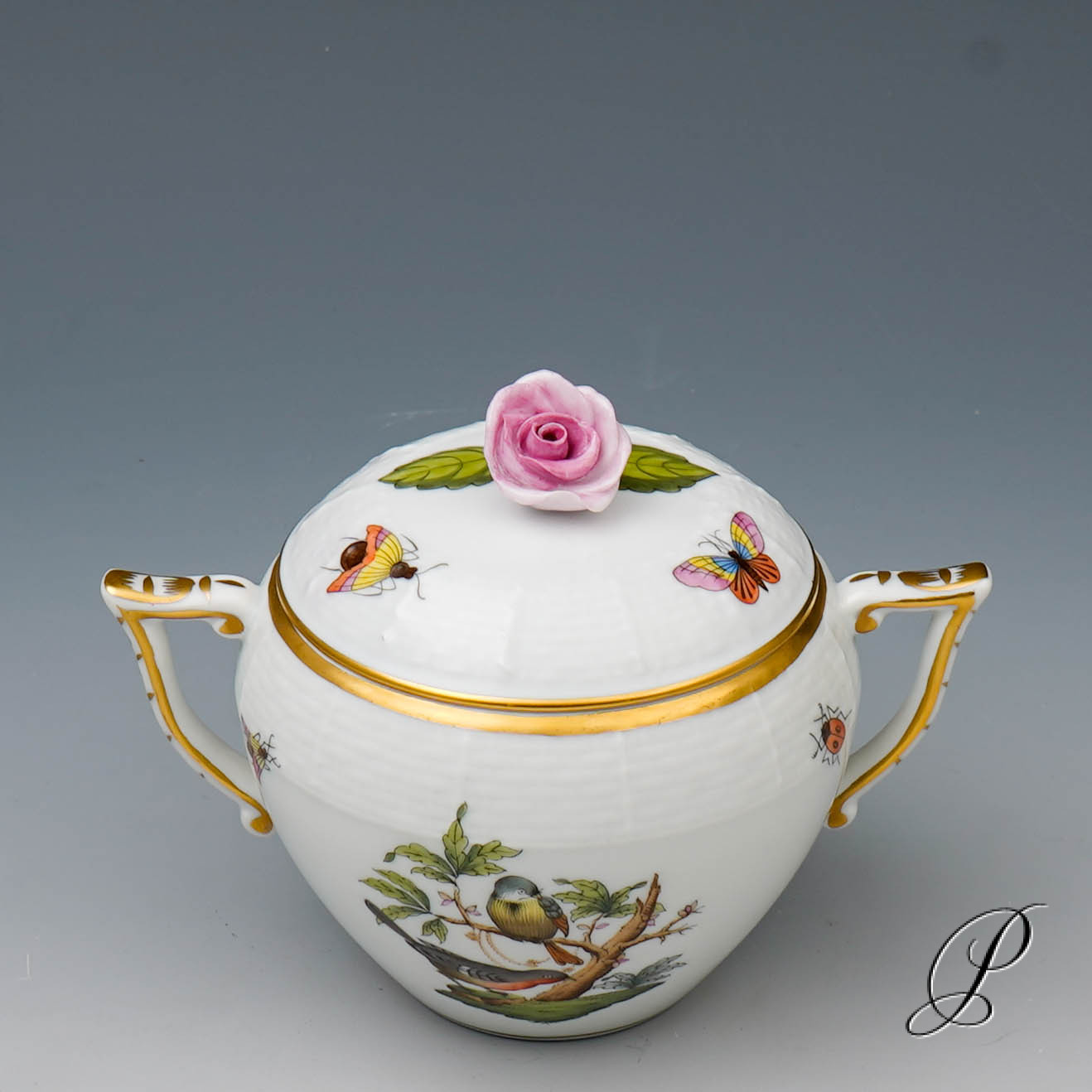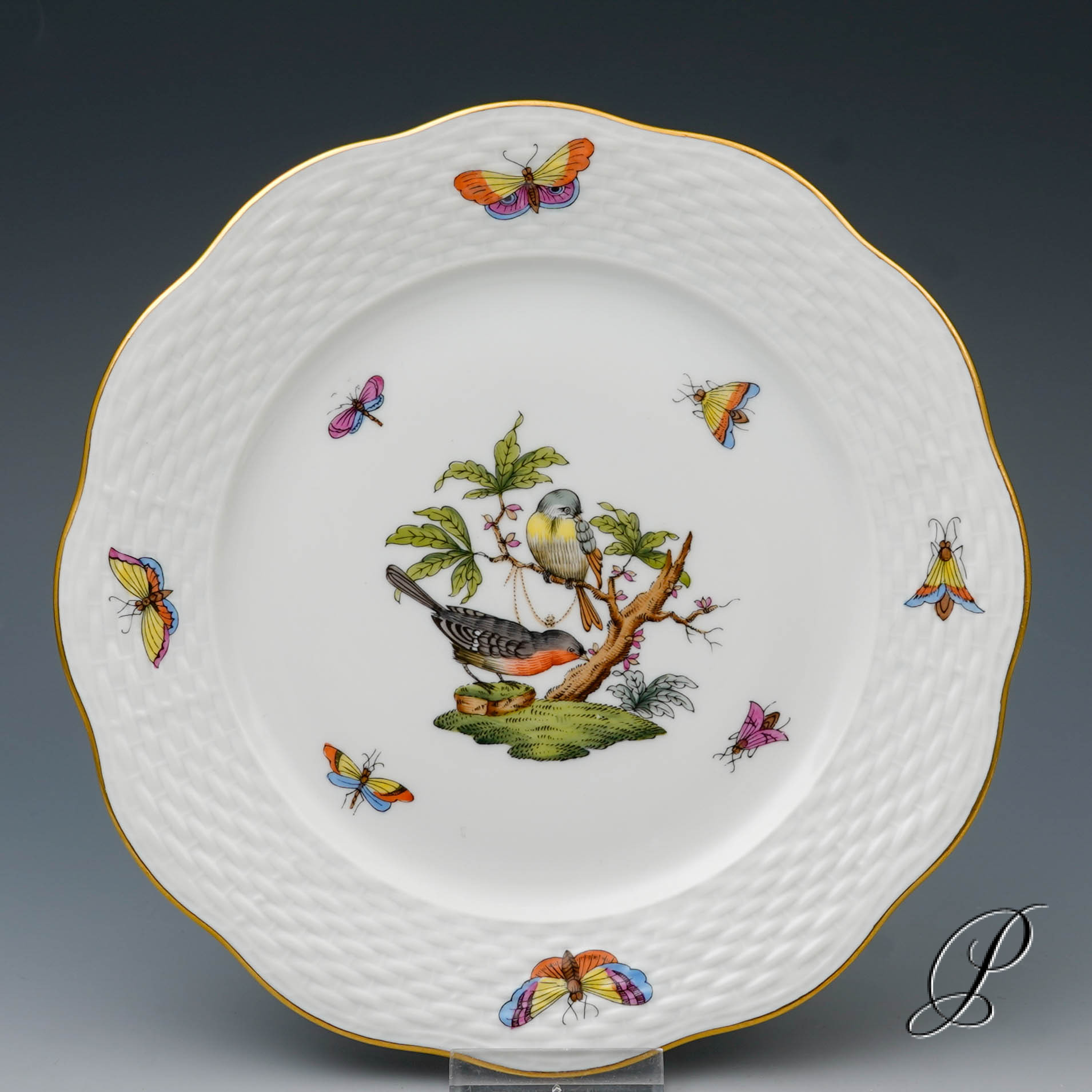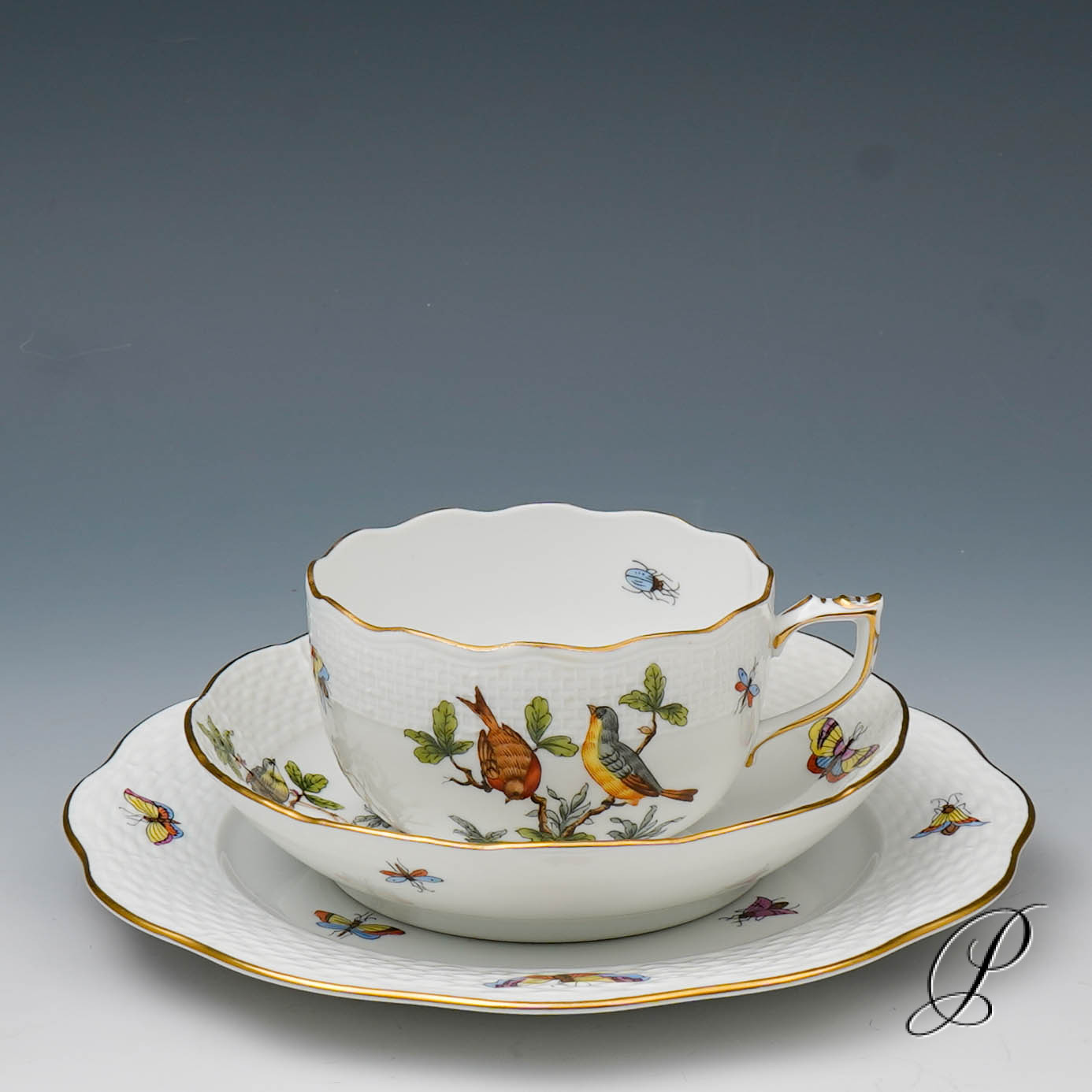 Das Dekor Rothschild strahlt Glück und Harmonie aus. Es beschwört die Stimmung des Frühlingserwachens der Natur herauf. Das Dekor ist mit naturalistisch und farbenprächtig gefiederten Vogelpaaren und Schmetterlingen verziert.